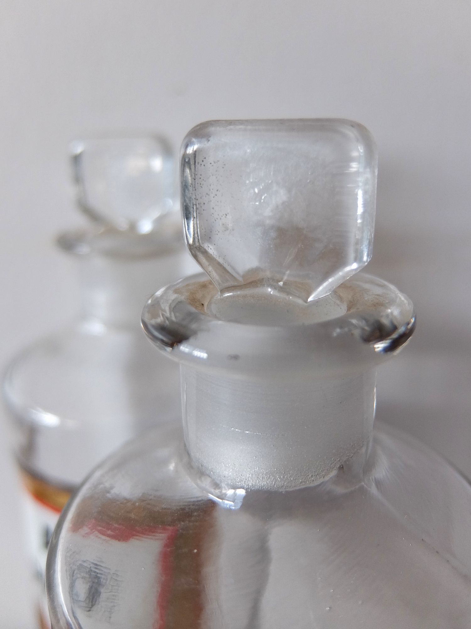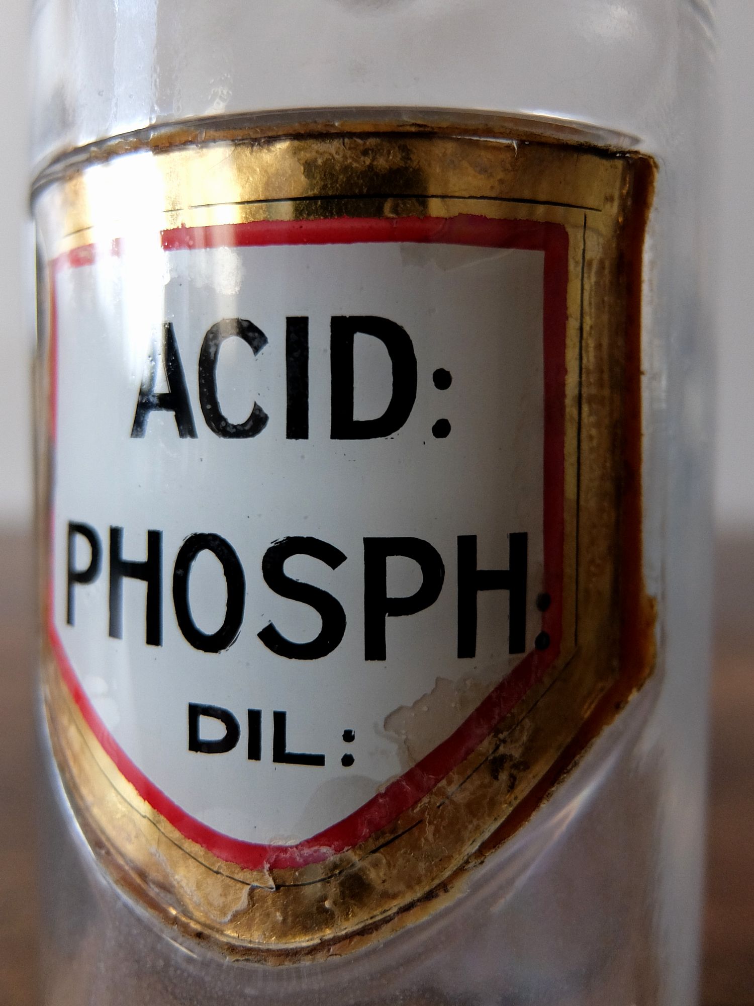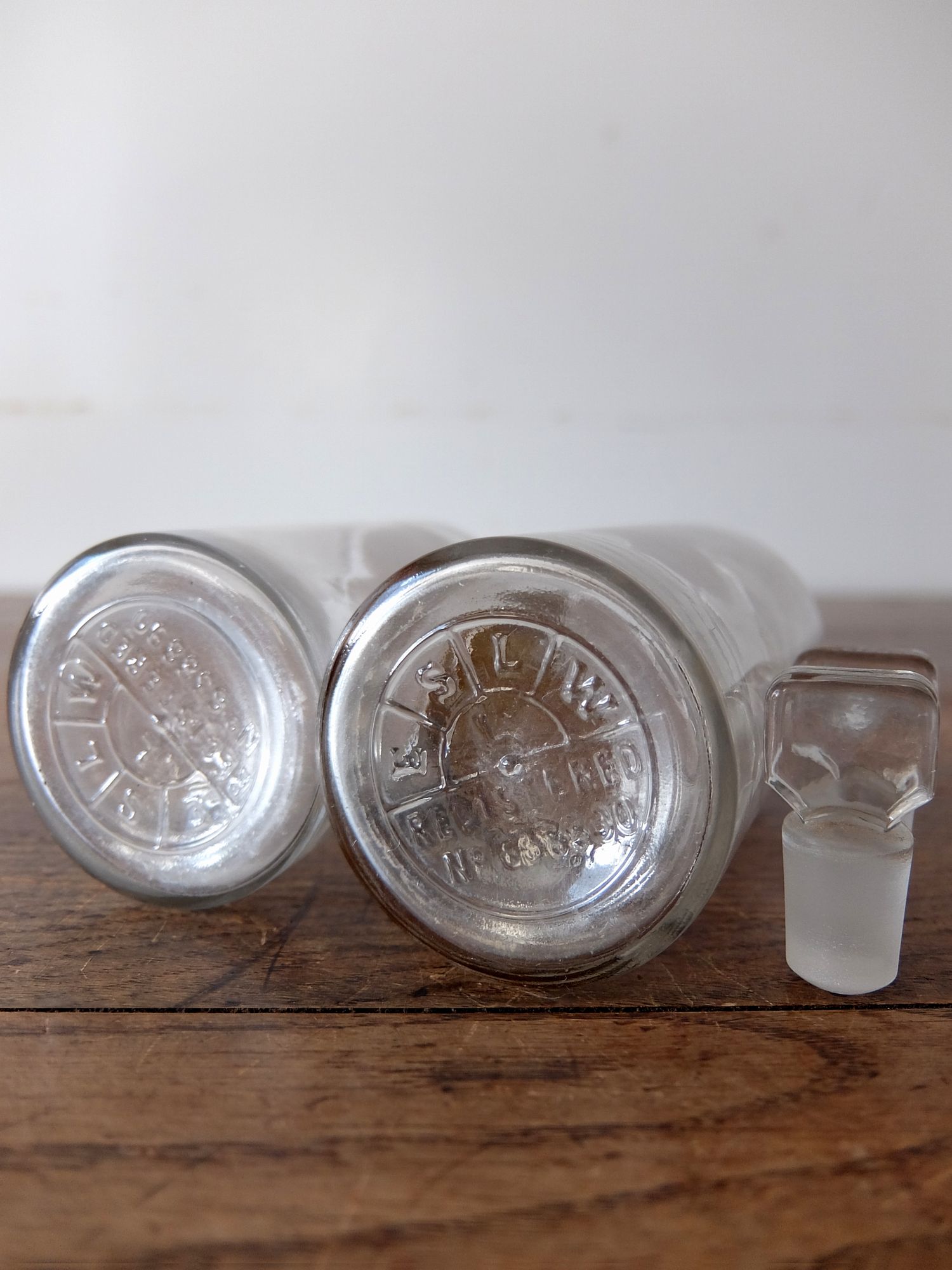 ガラスのプレートが付けられた古い薬瓶