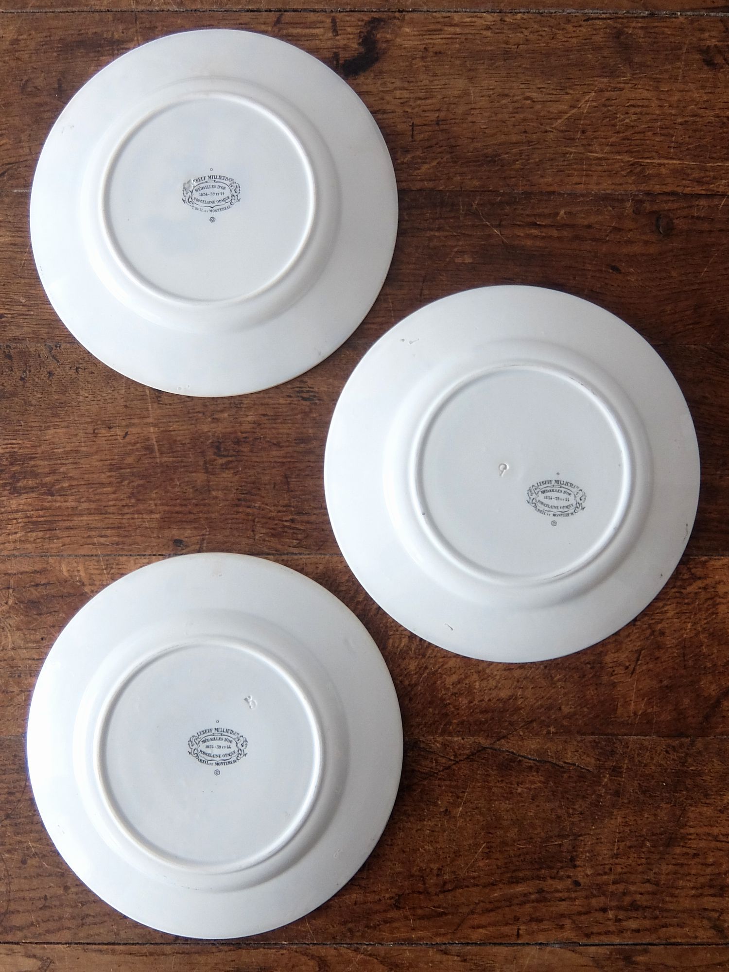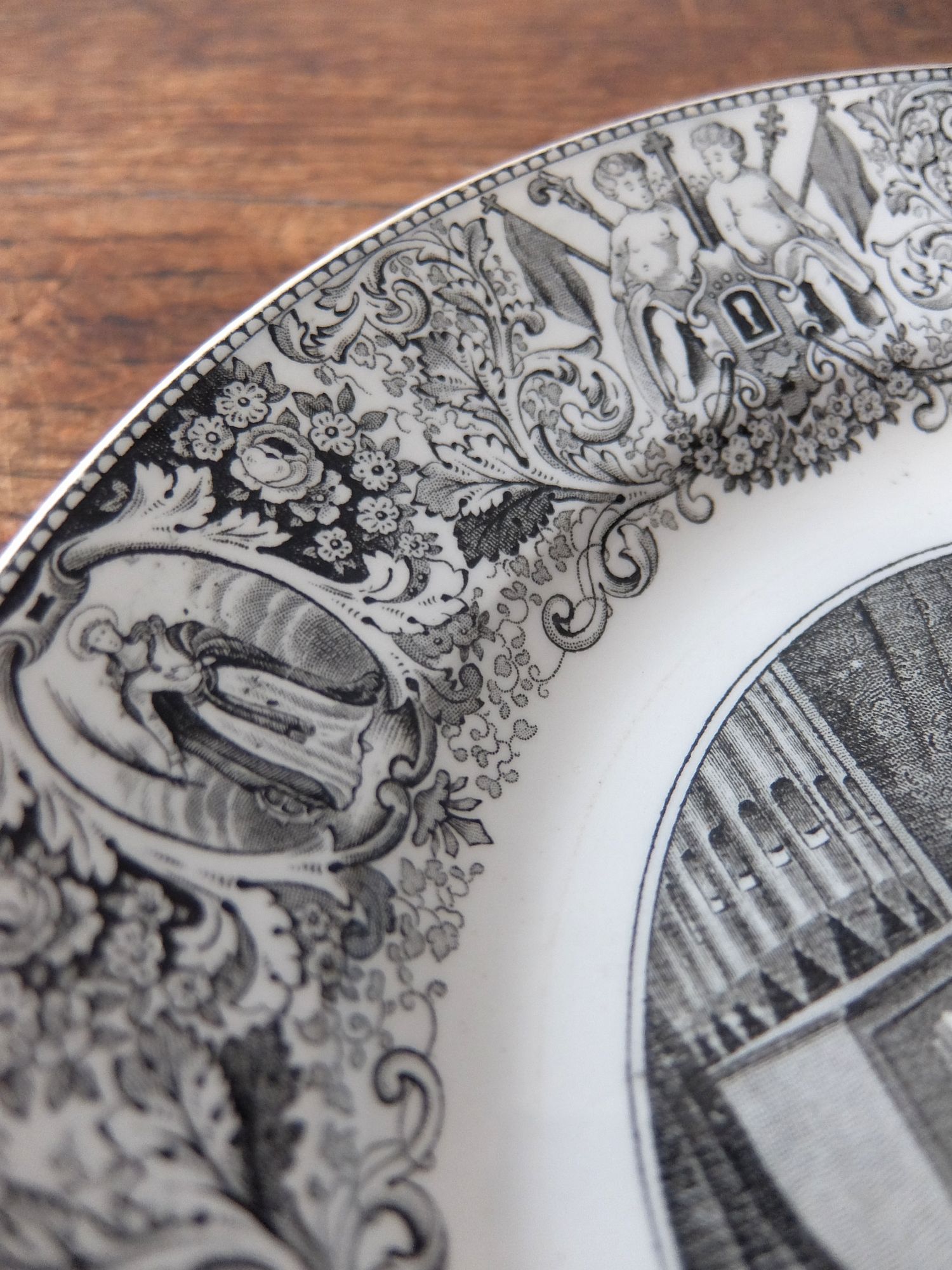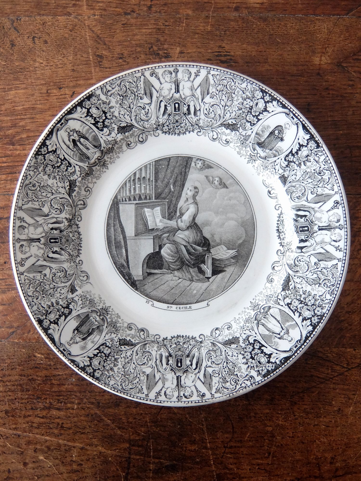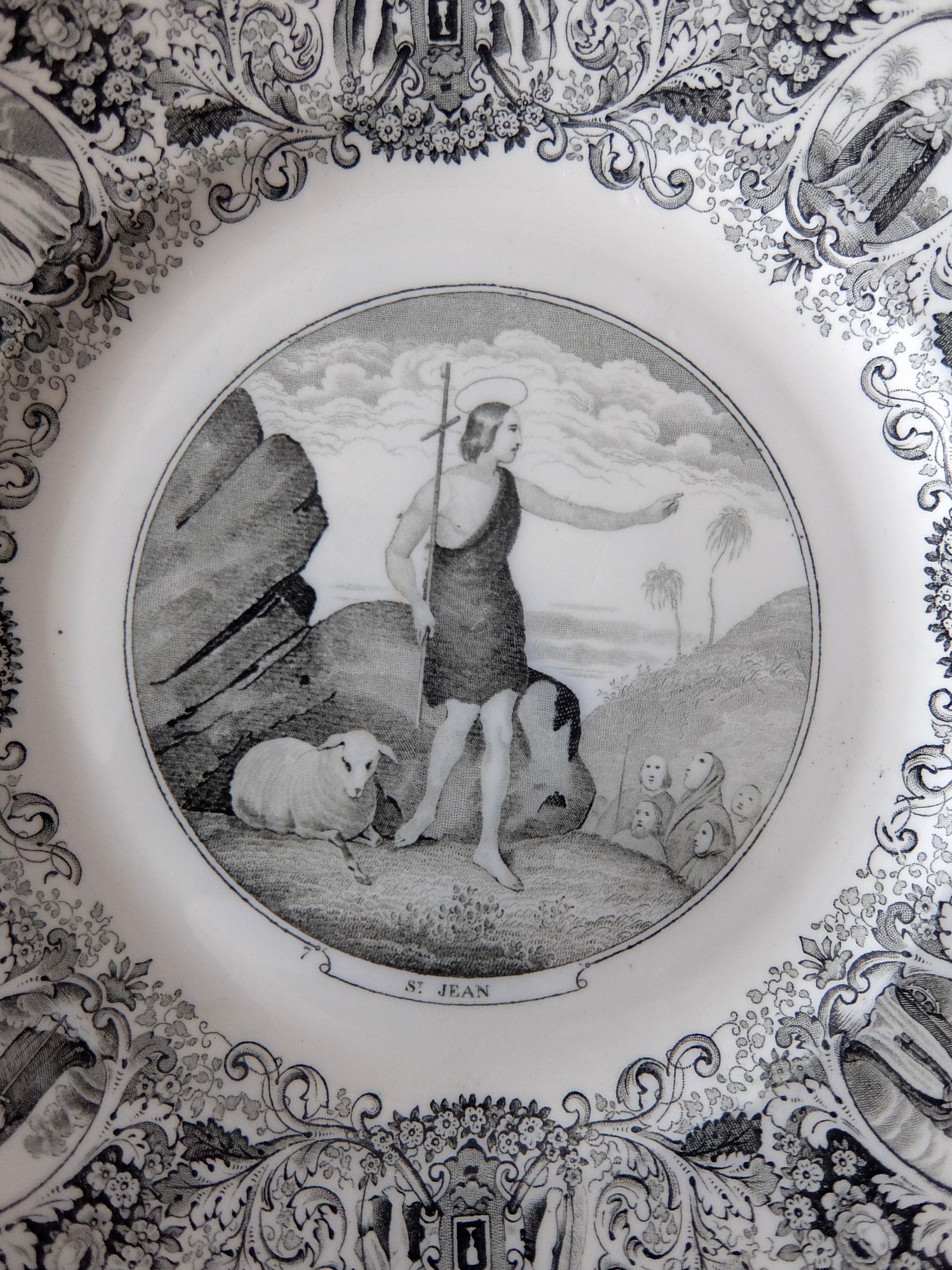 19世紀中期に作られた聖人が描かれたクレイユ・エ・モントローのGrisailleの平皿【No.4:聖マタイ、No.7:聖ジャン、No.12:聖セシリア】