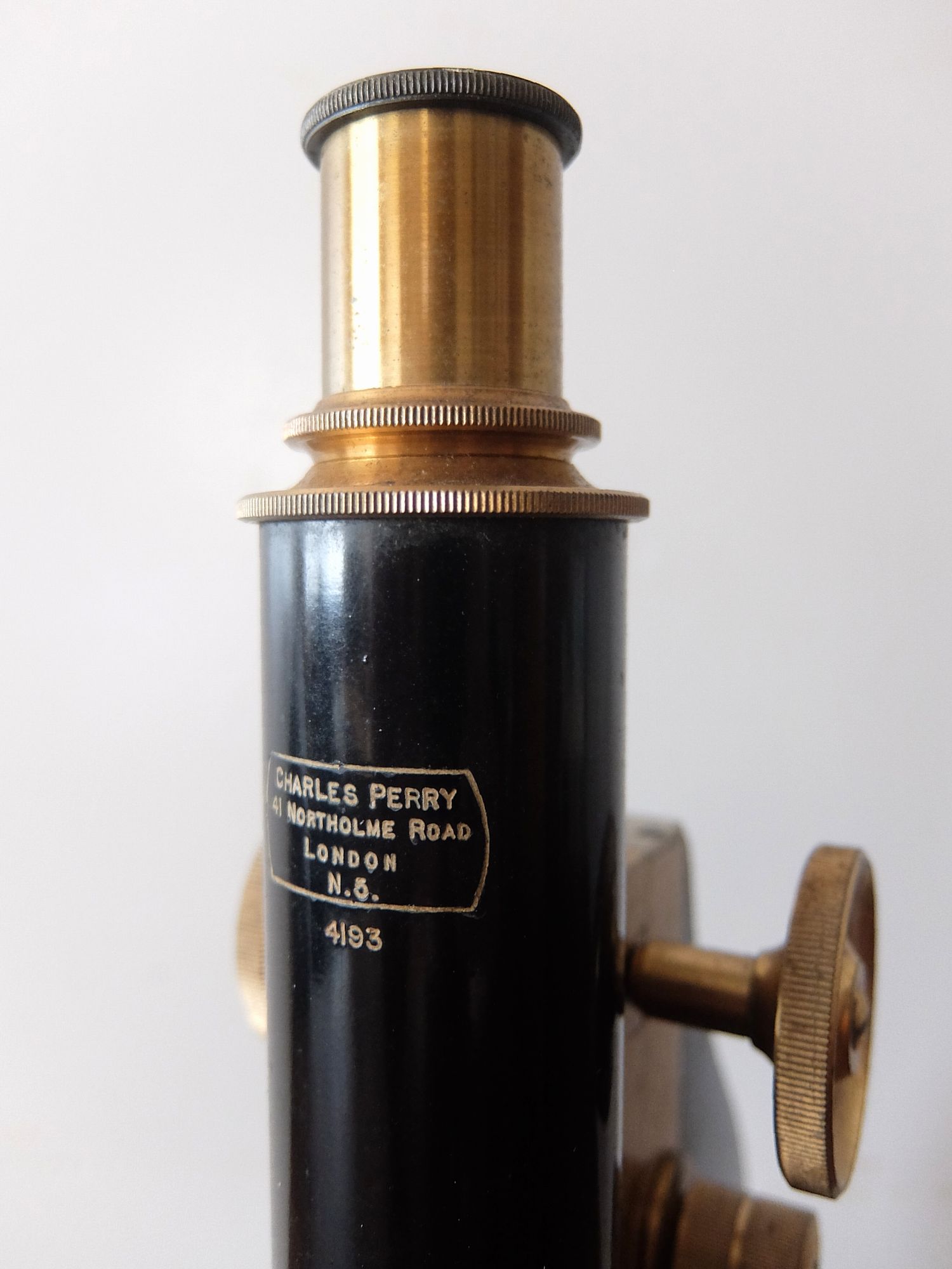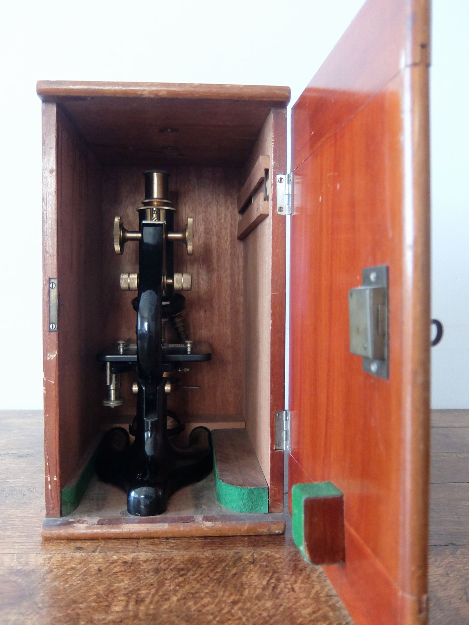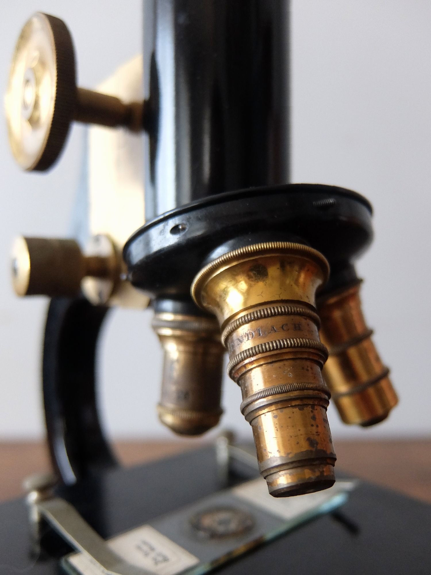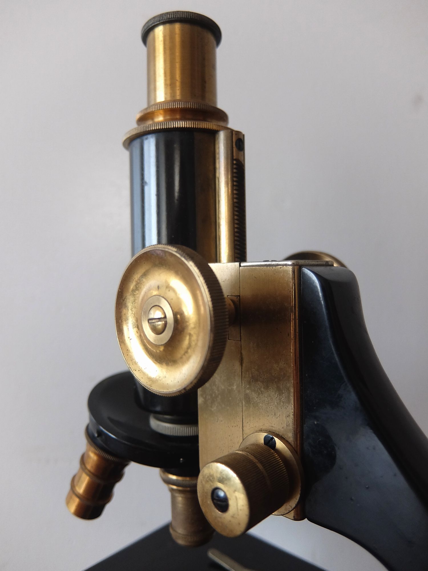 経年の雰囲気が美しい真鍮製顕微鏡(プレパラート1枚付)