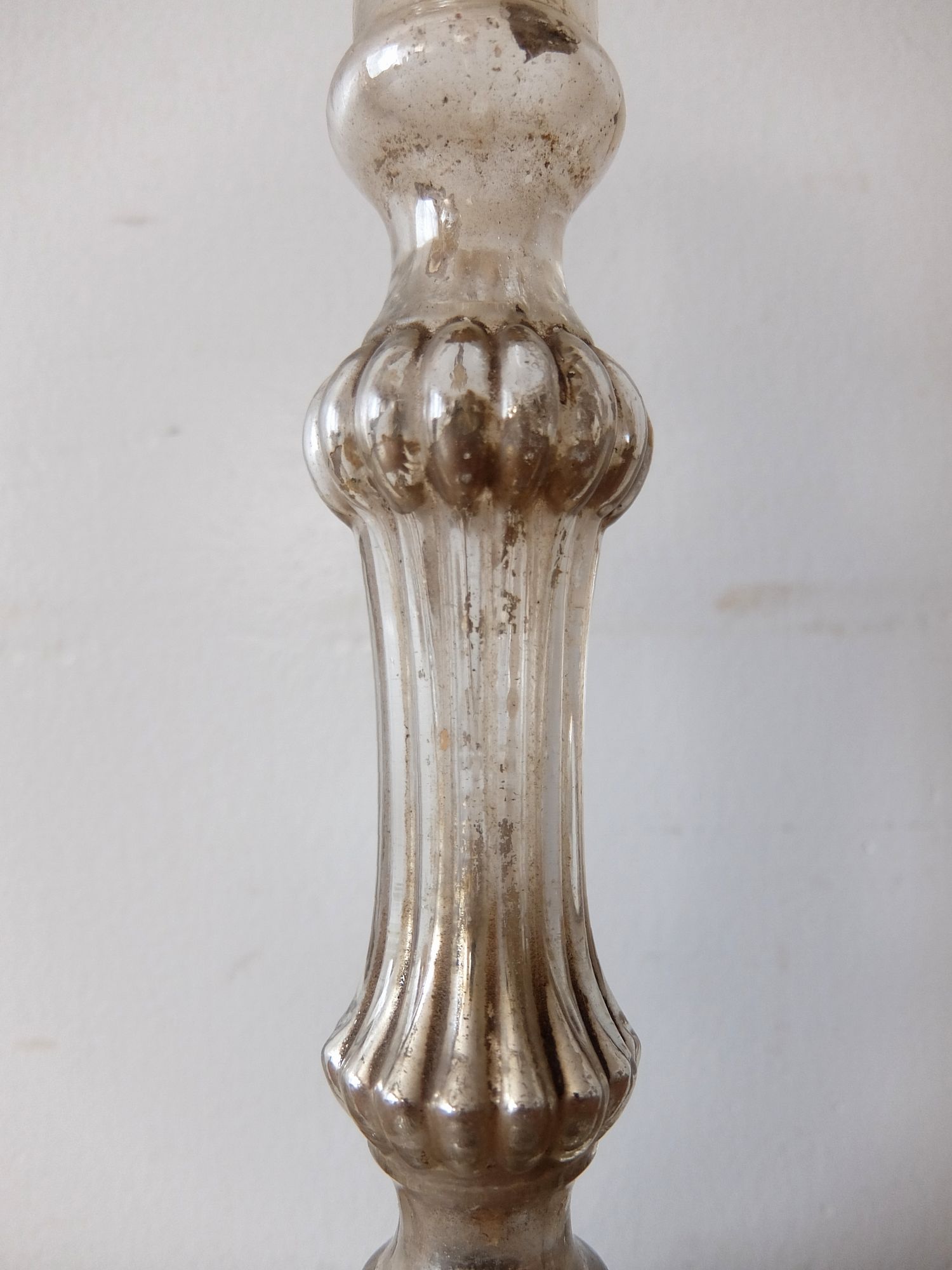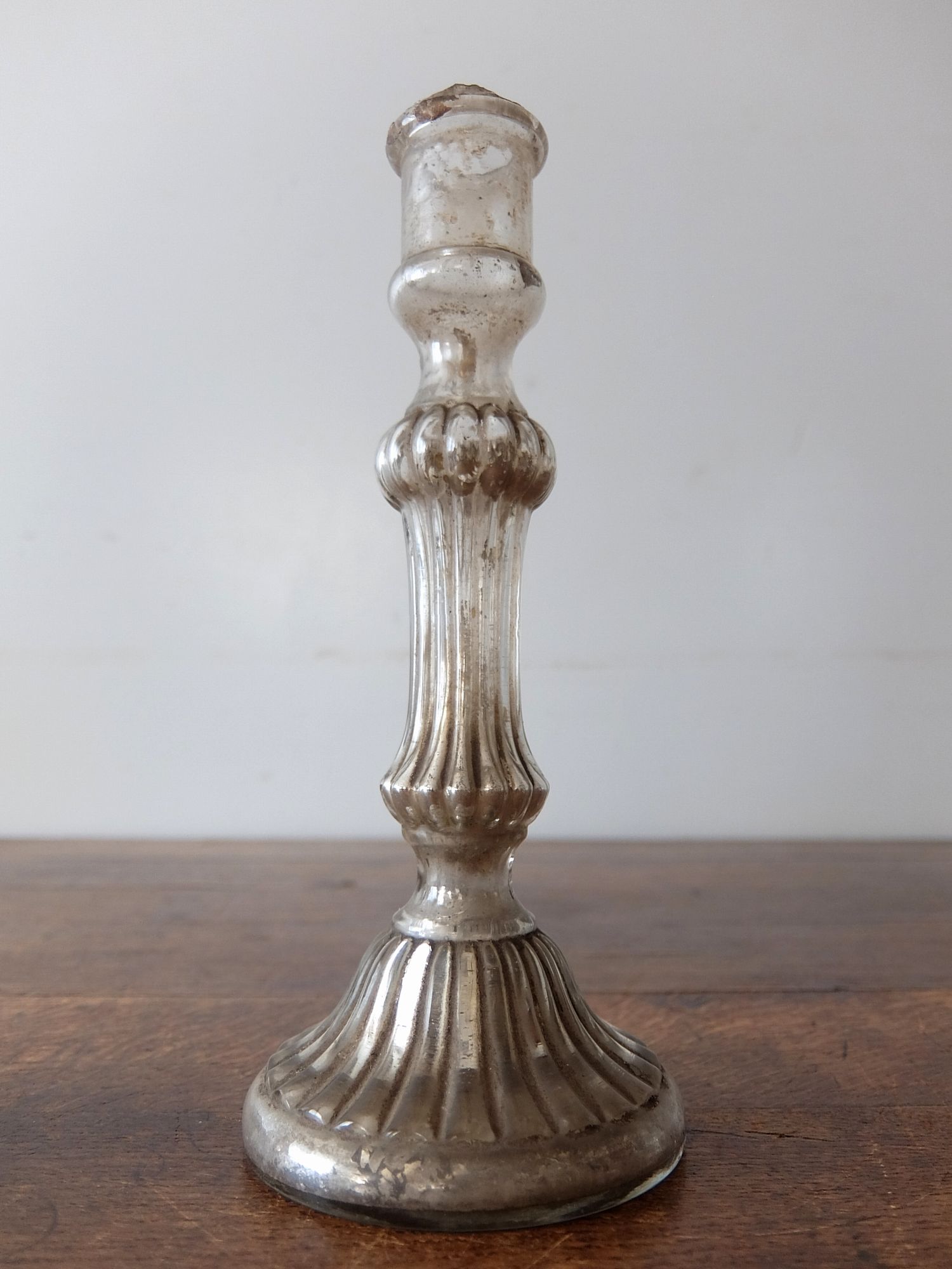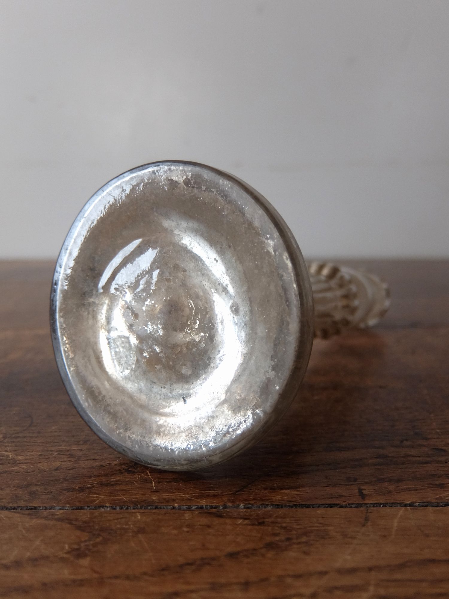 ガラスの内側に水銀を施した中空のキャンドルスタンド