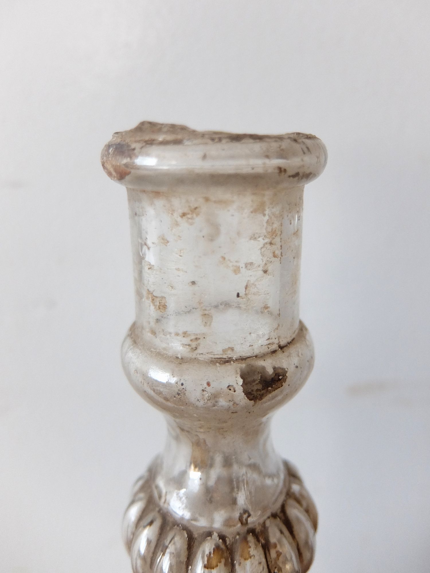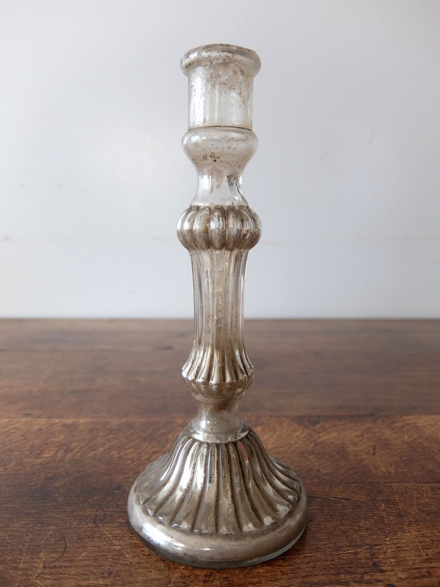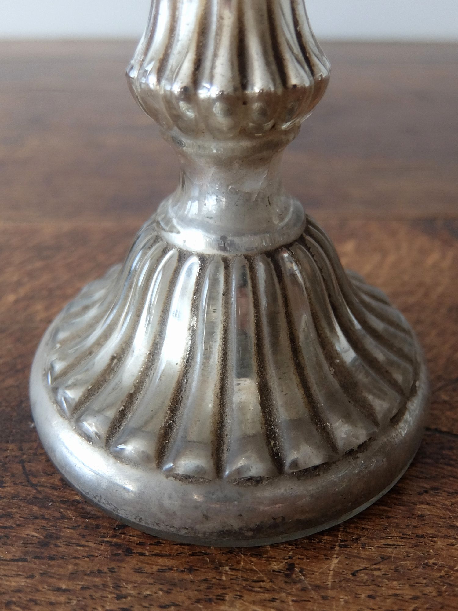 ガラスの内側に水銀を施した中空のキャンドルスタンド