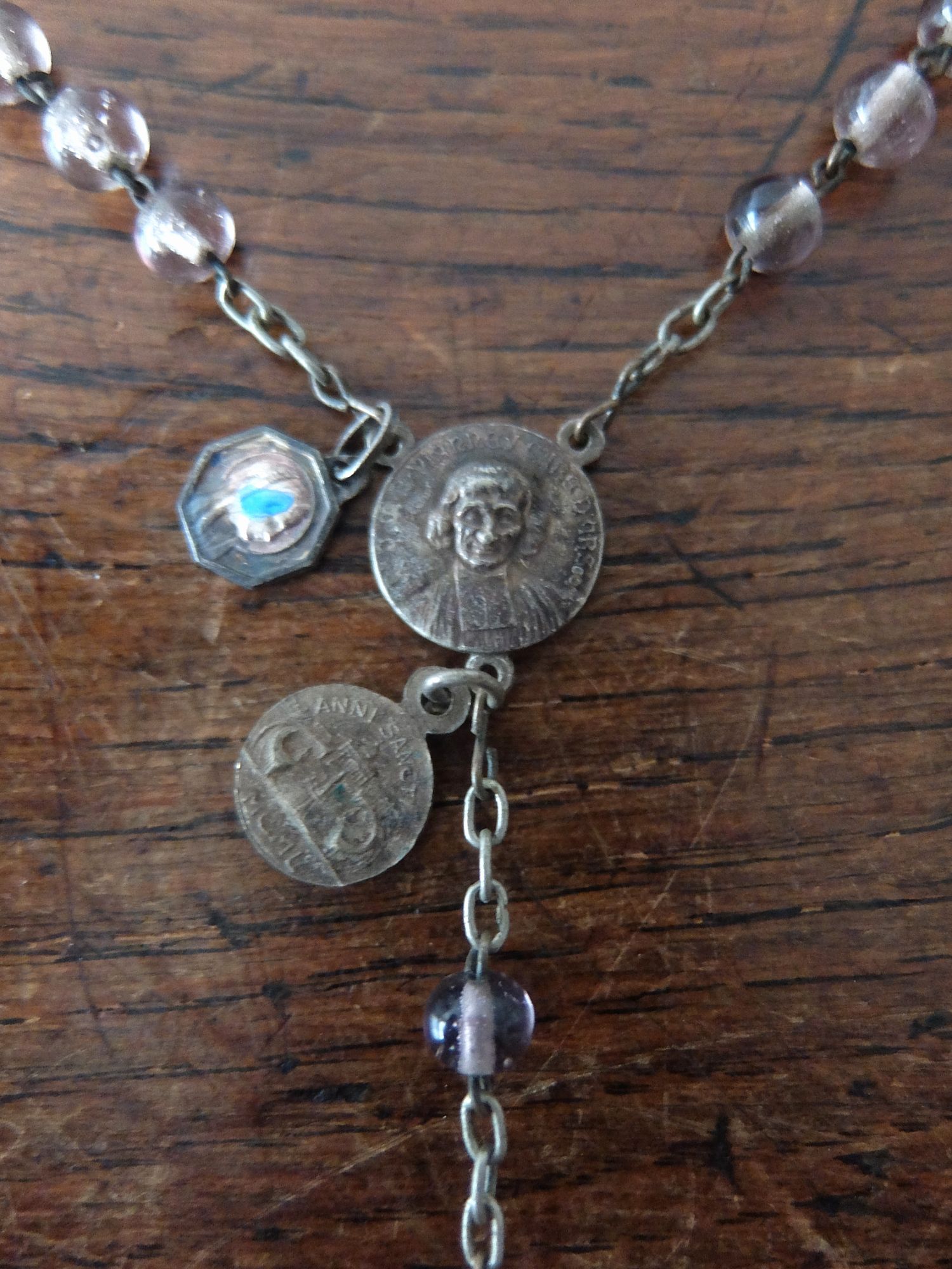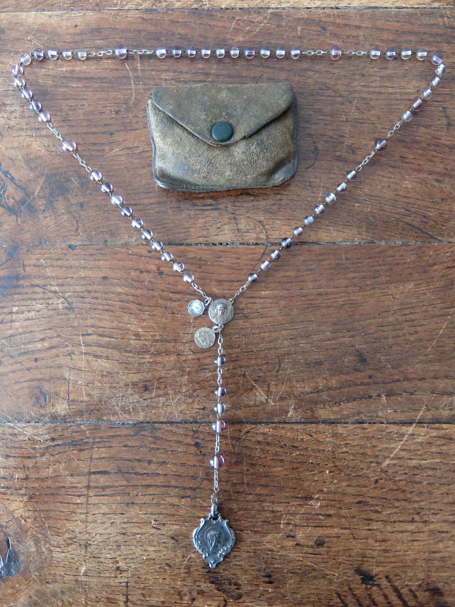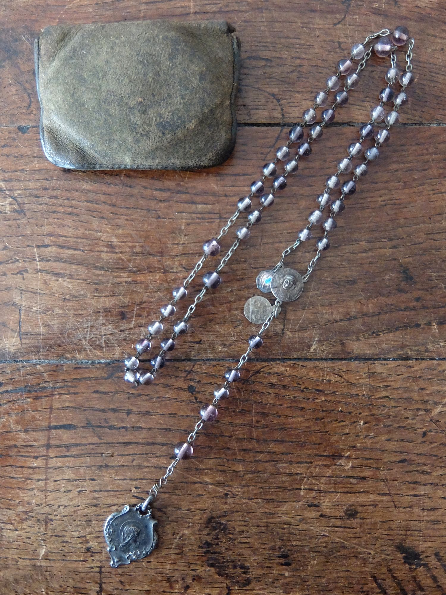 アメジスト色のビーズが美しいメダイ (チェーン長:530mm) ※ケース付き