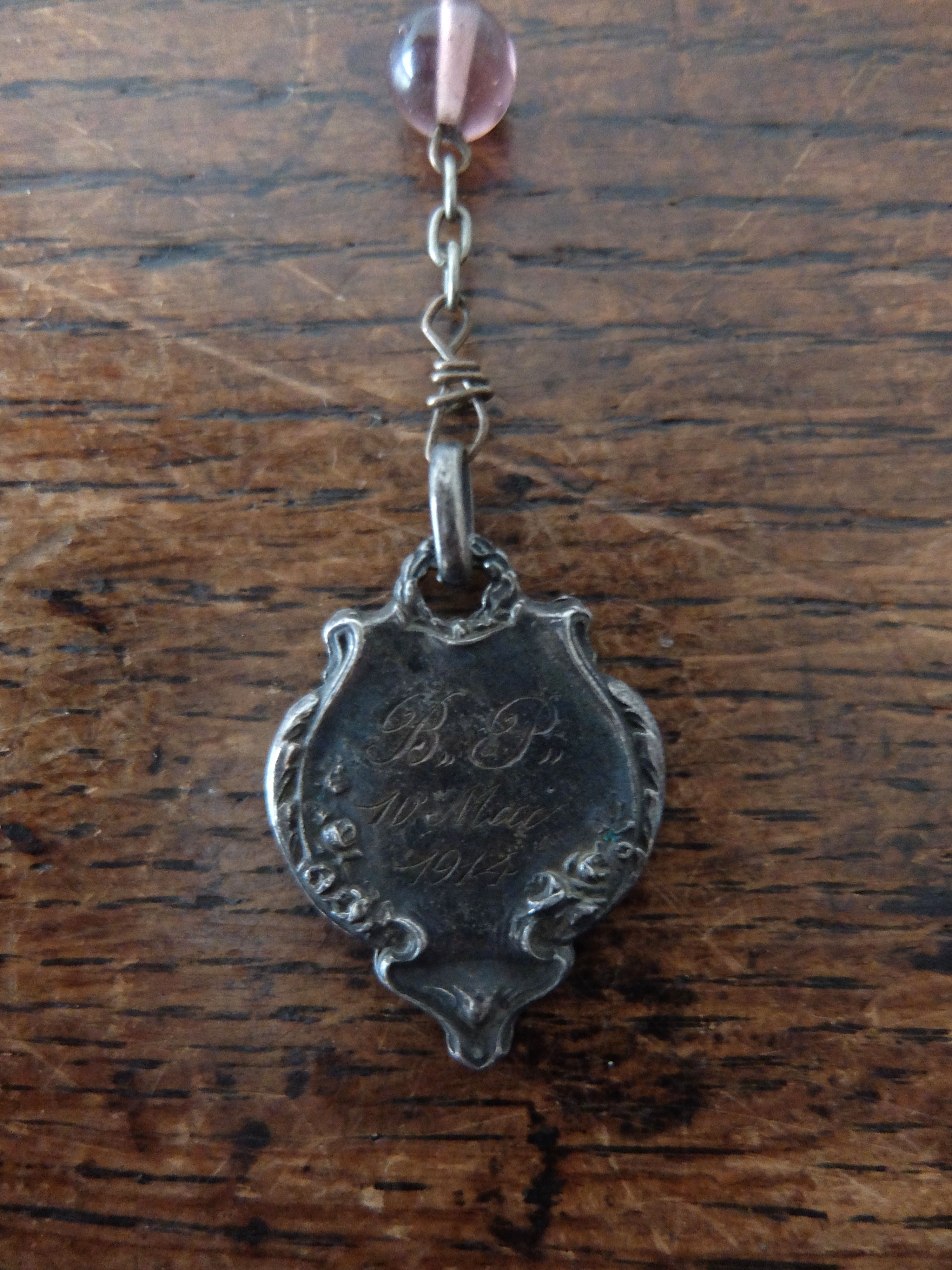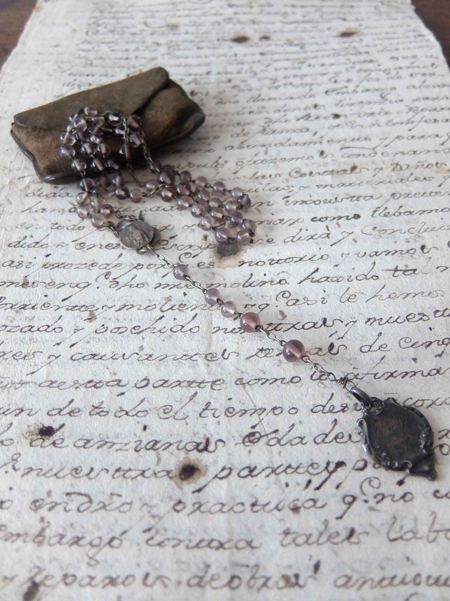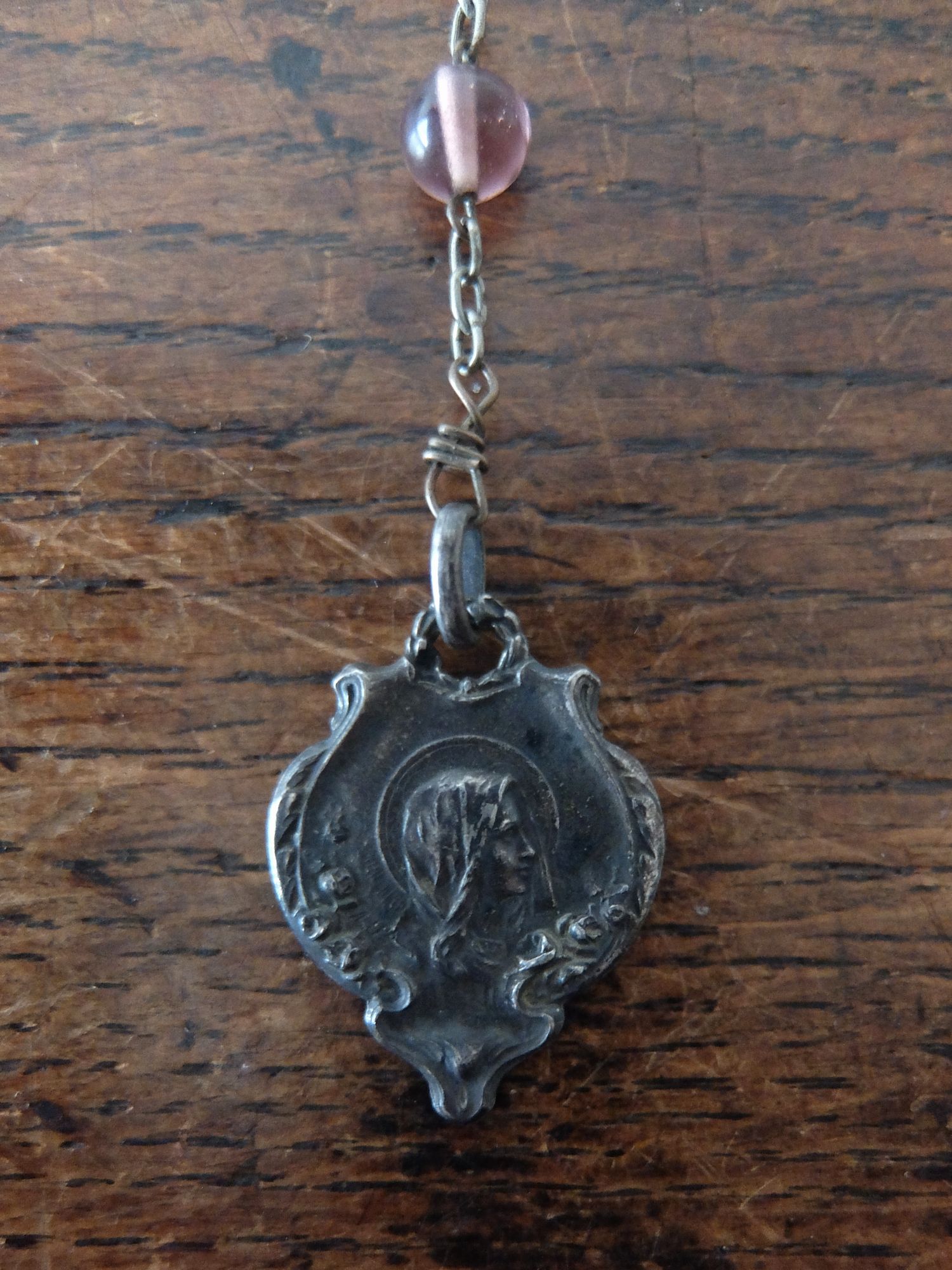 アメジスト色のビーズが美しいメダイ (チェーン長:530mm) ※ケース付き