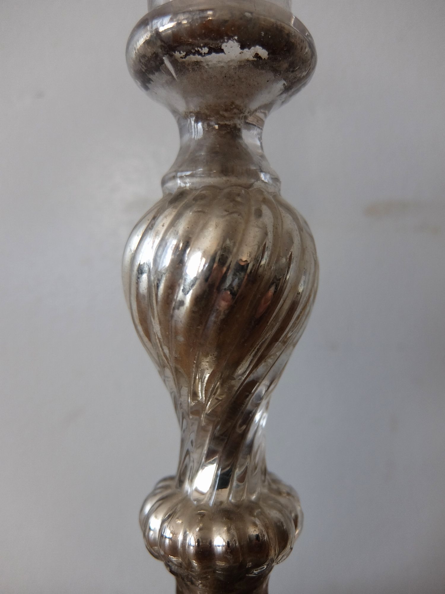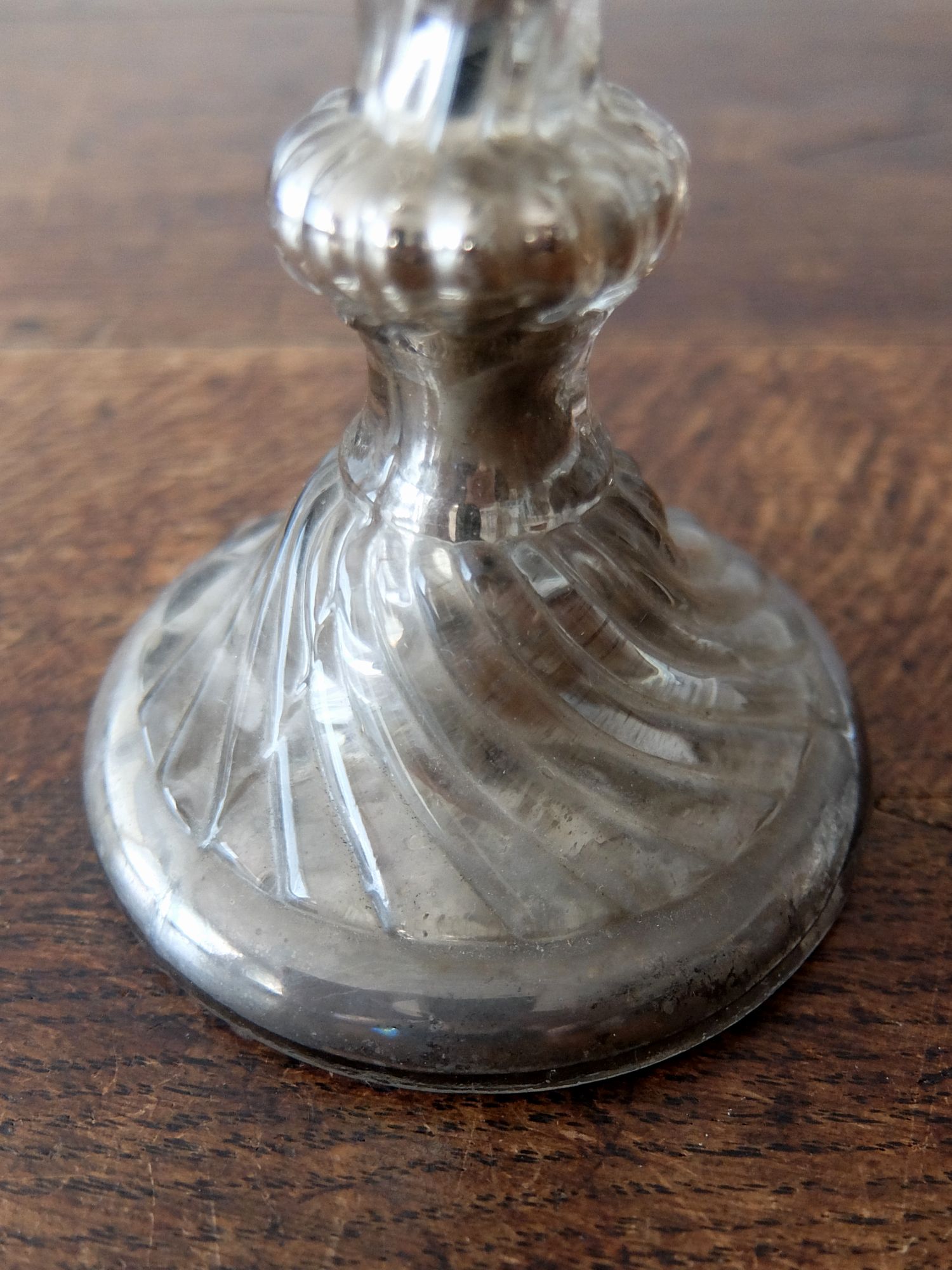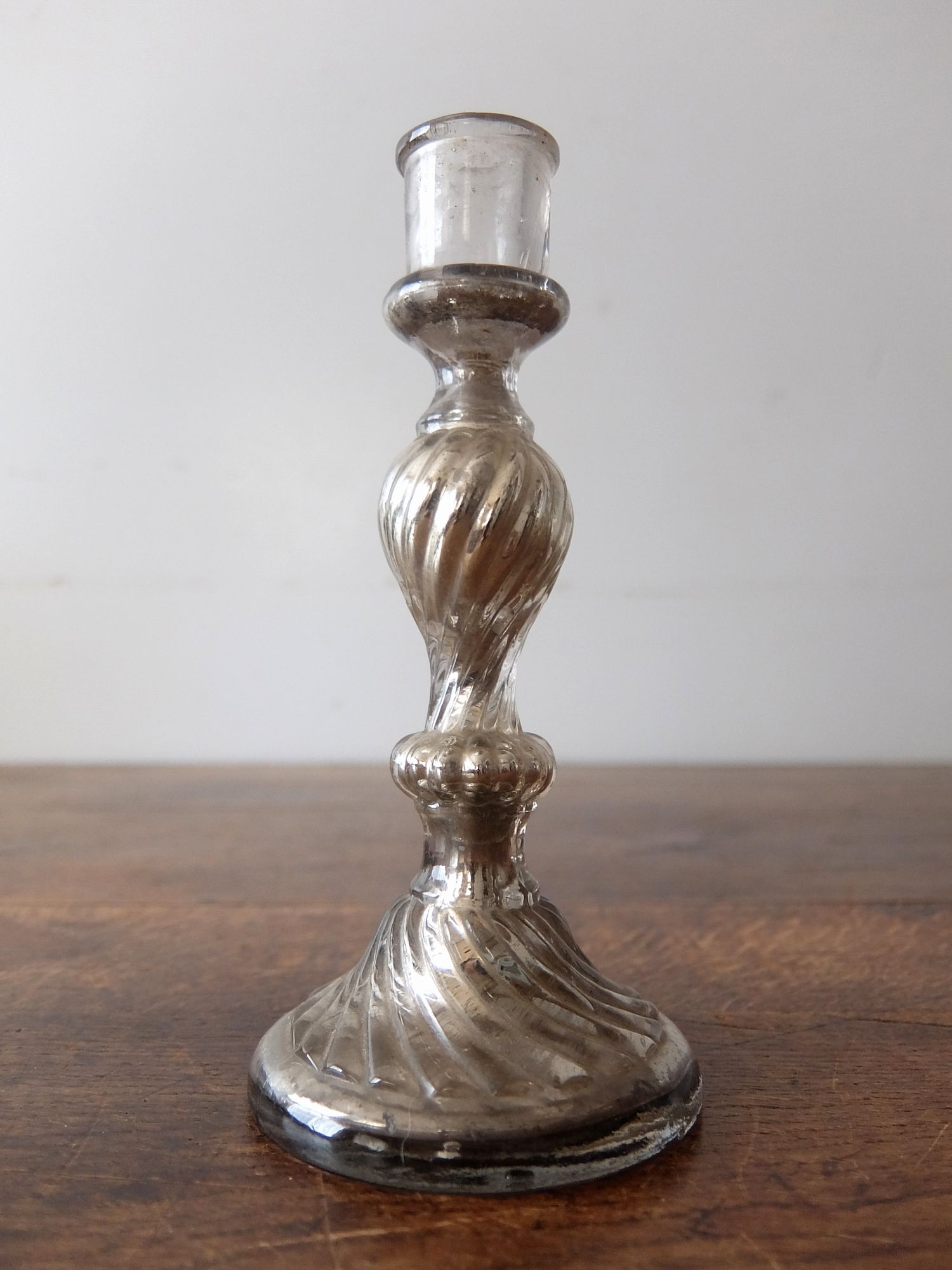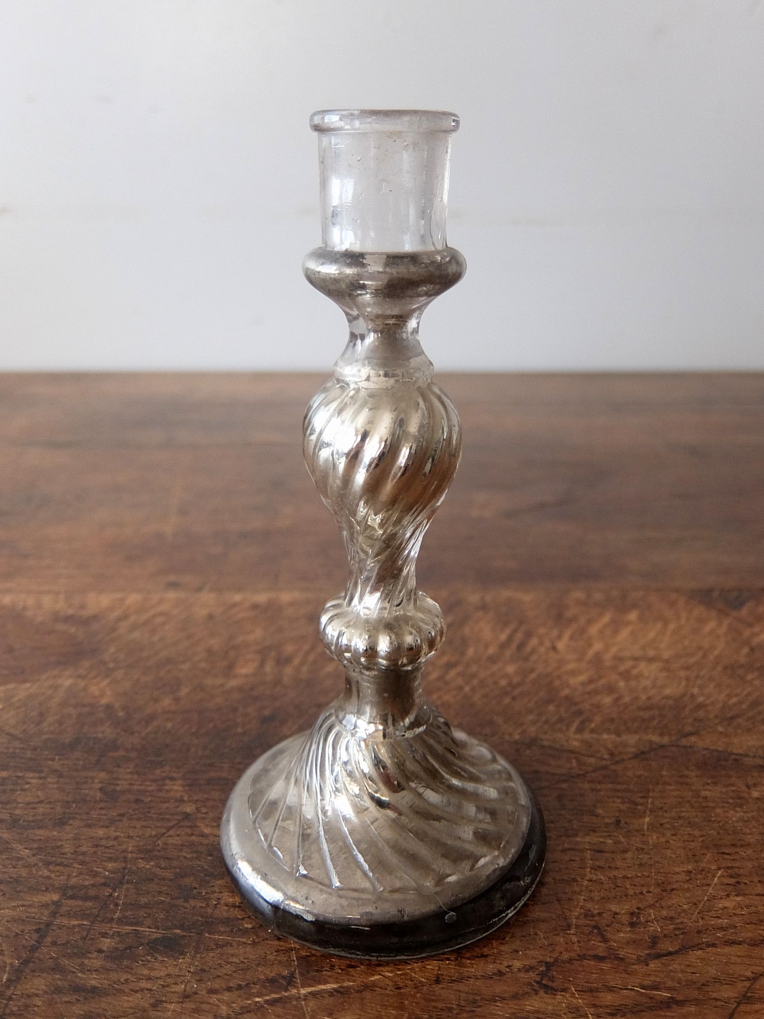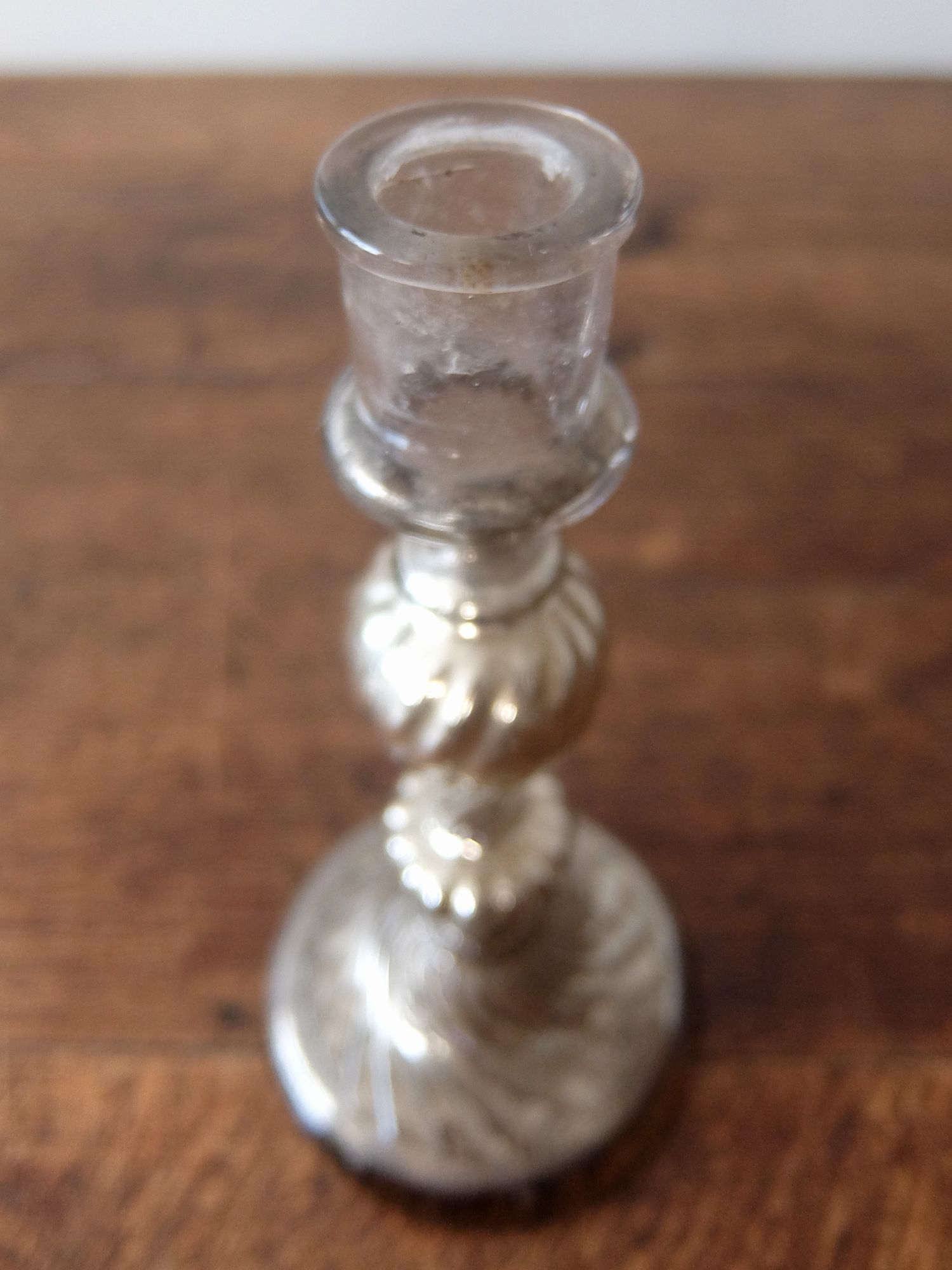 ガラスの内側に水銀を施した中空のキャンドルスタンド