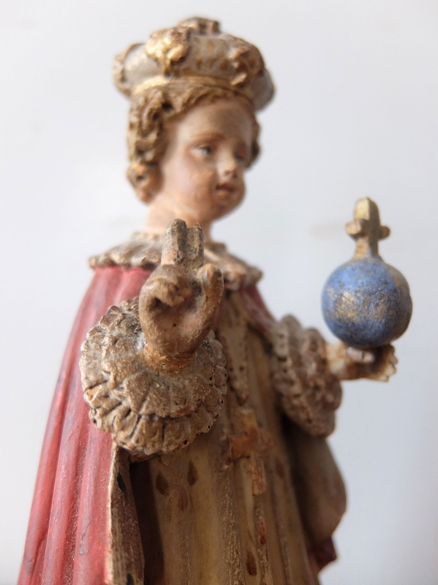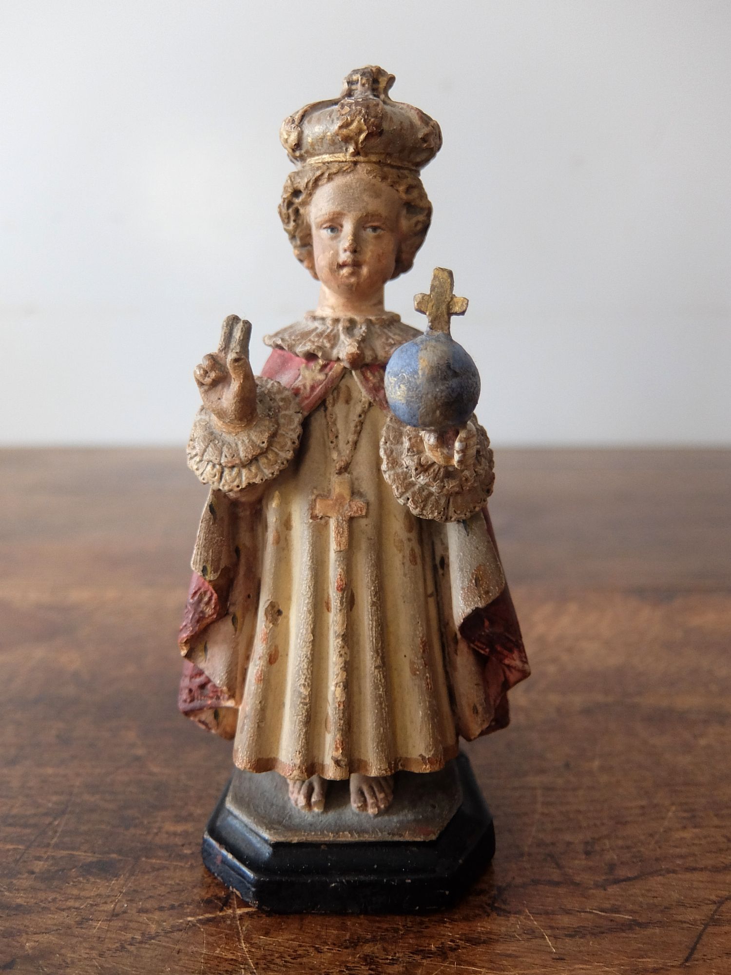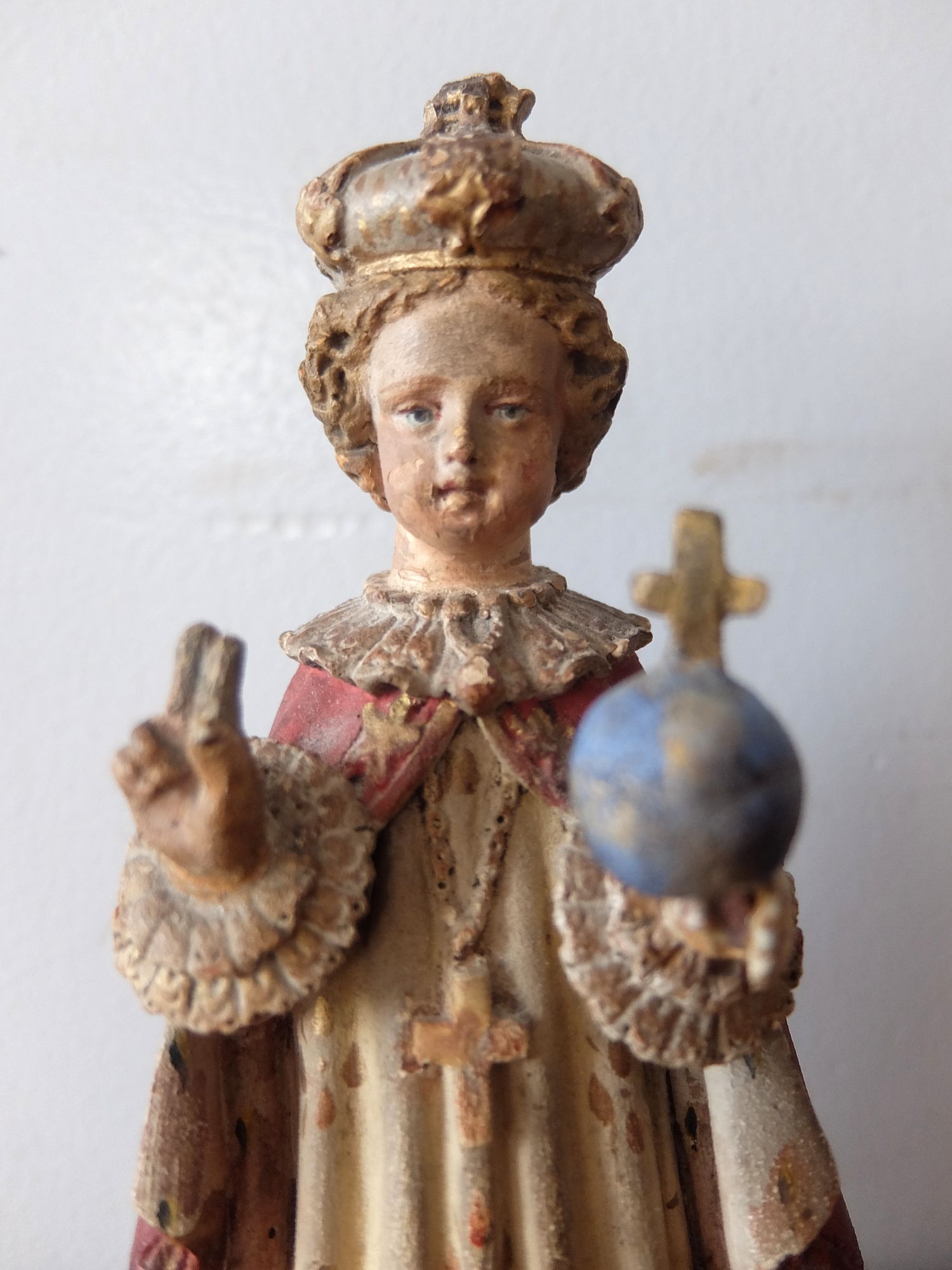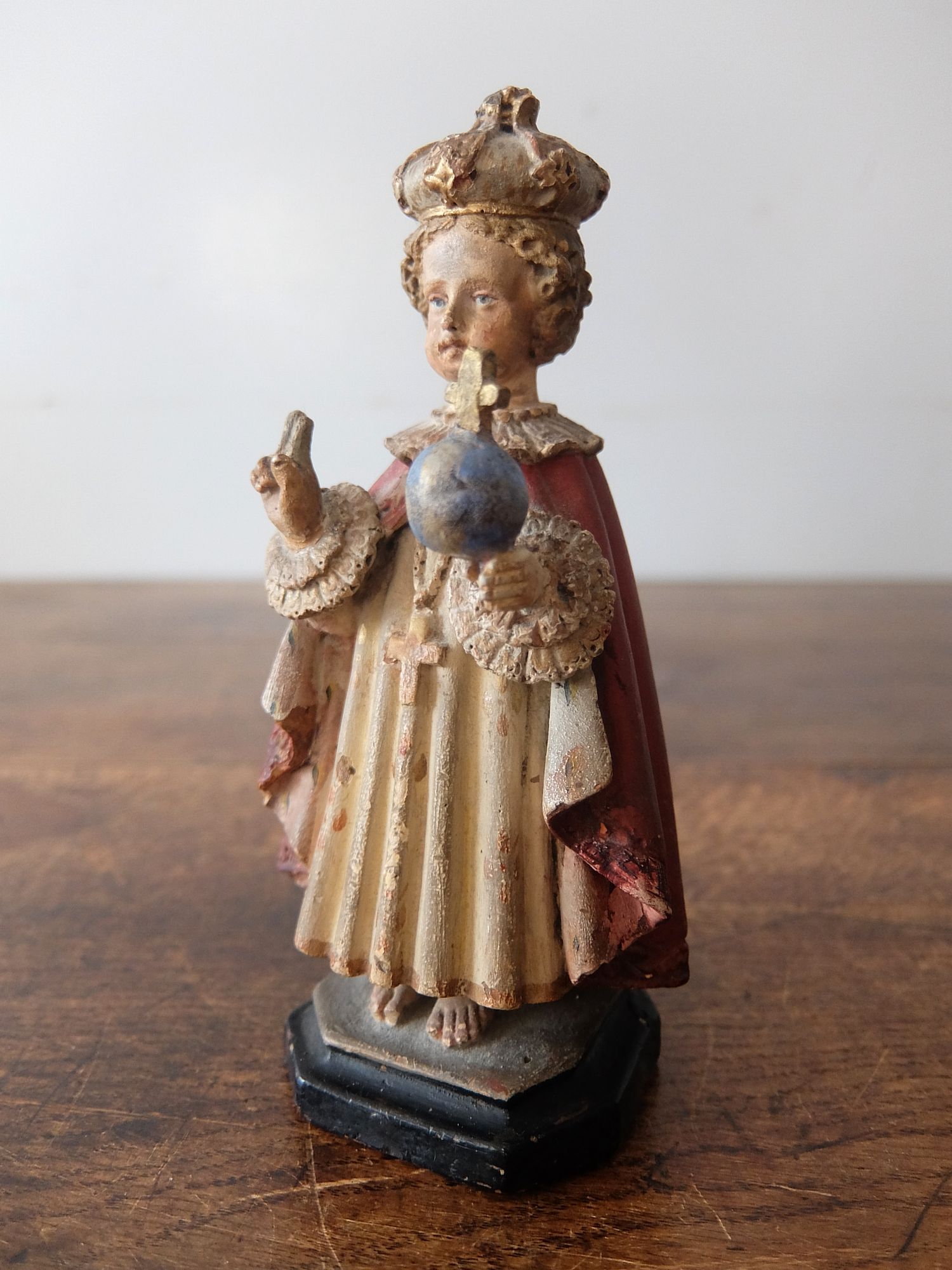 朽ちた塗装の風合いが美しい石膏製の【Bambini・di・Praga(バンビーニ・ディ・プラガ):プラハの幼子イエス像】