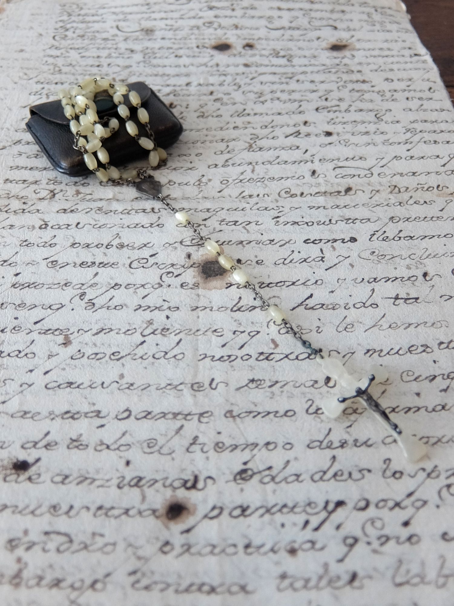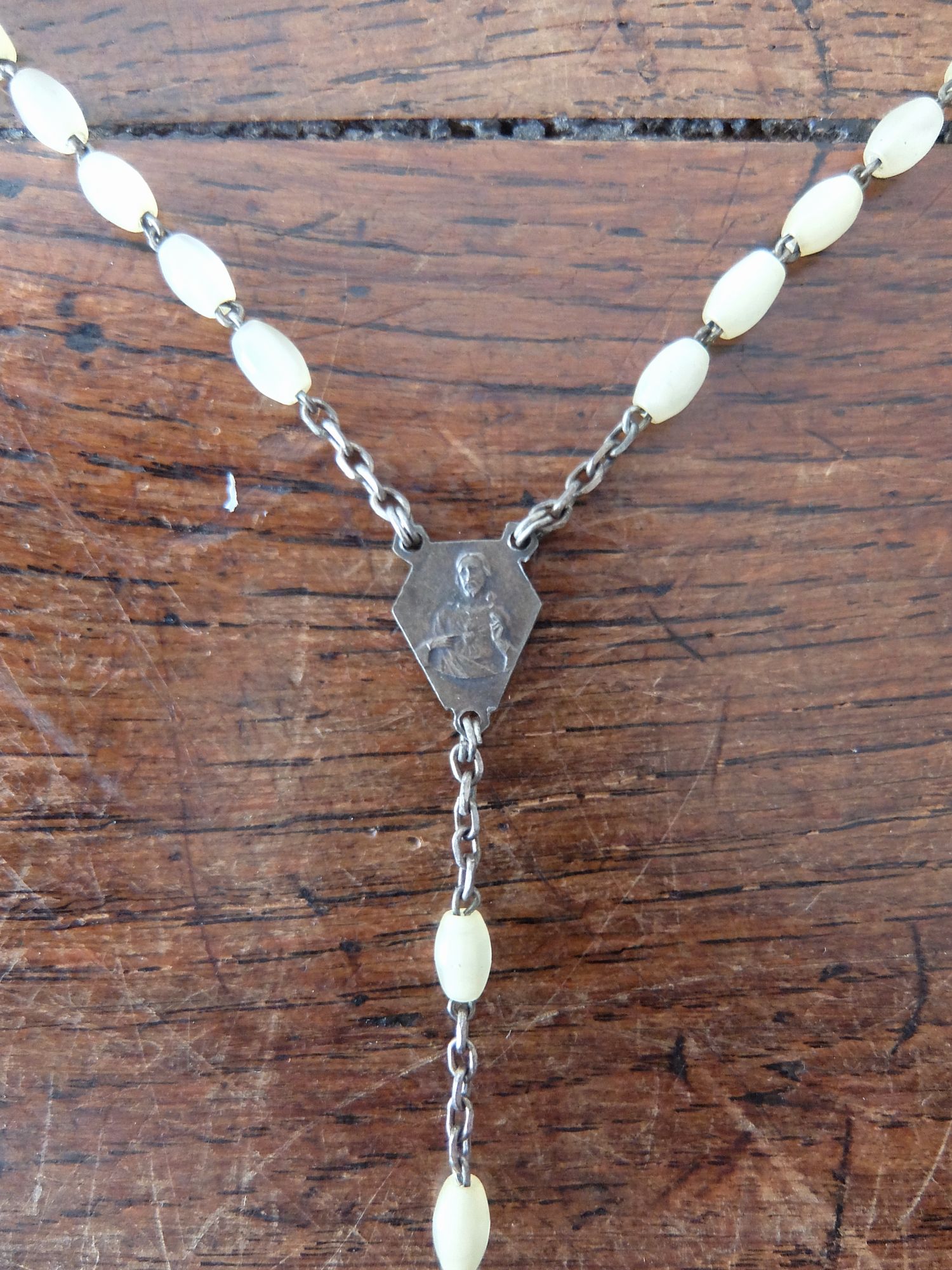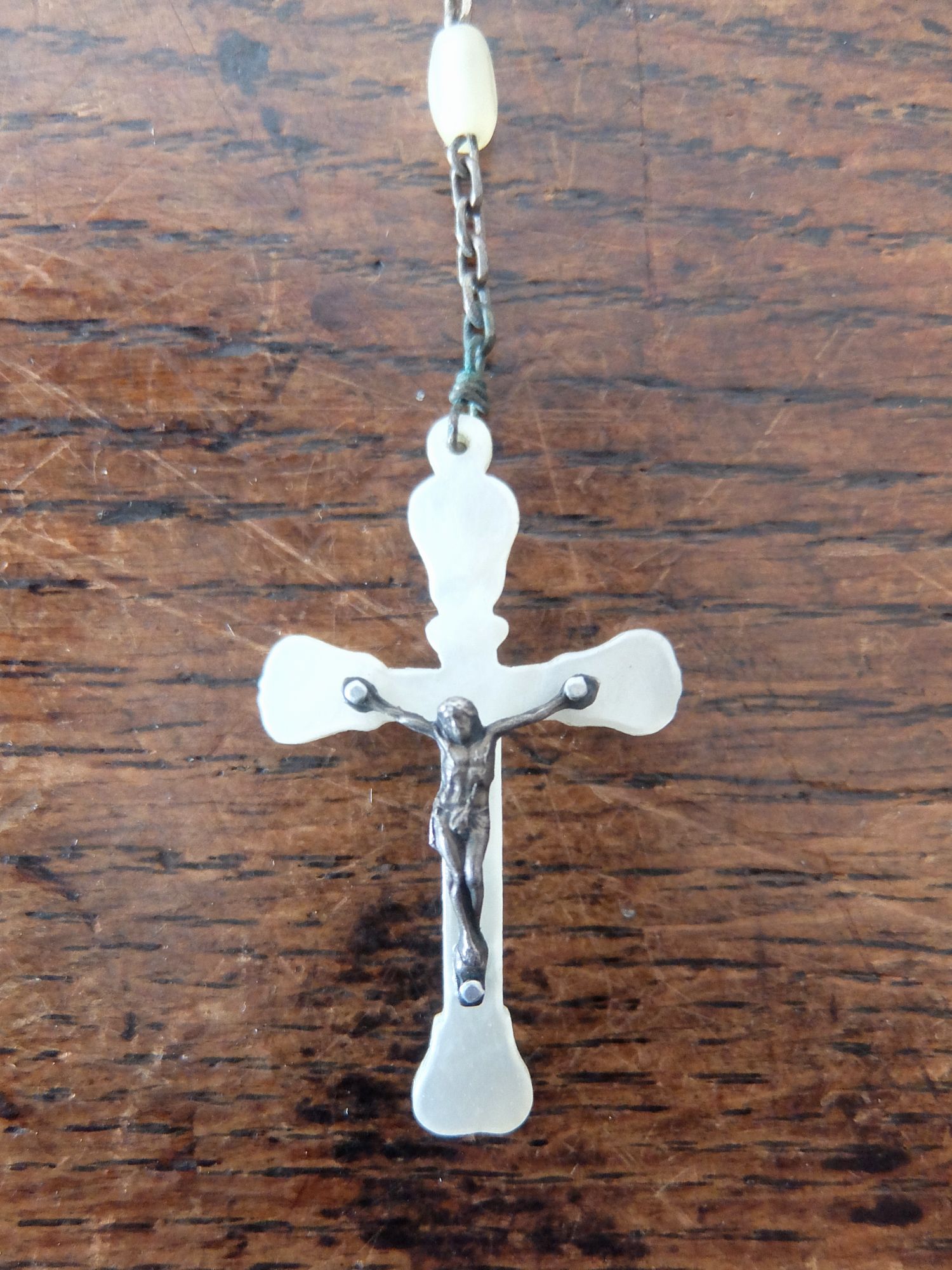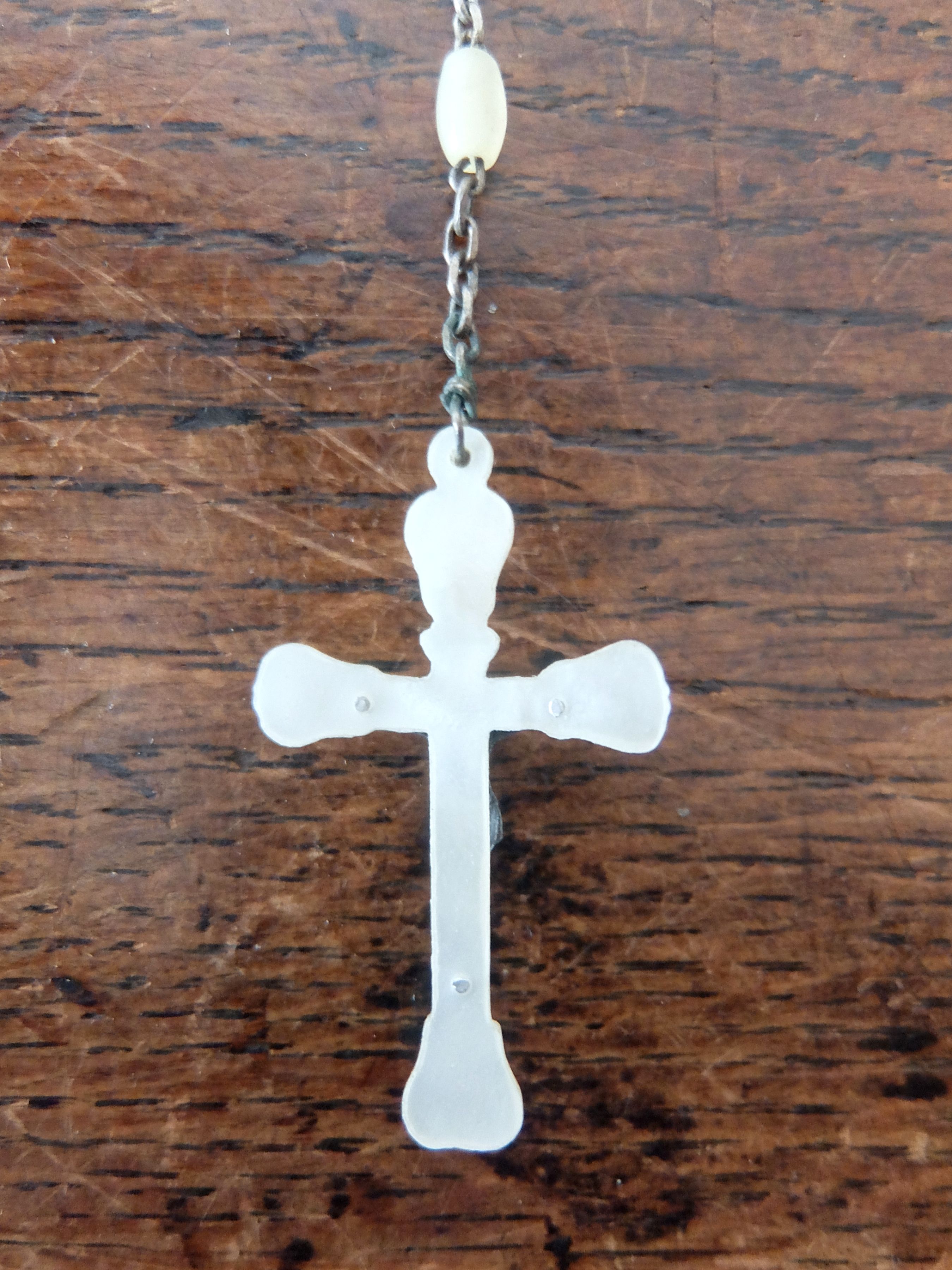 経年の雰囲気が美しい白蝶貝のビーズのロザリオ (チェーン長:520mm) ※ケース付き