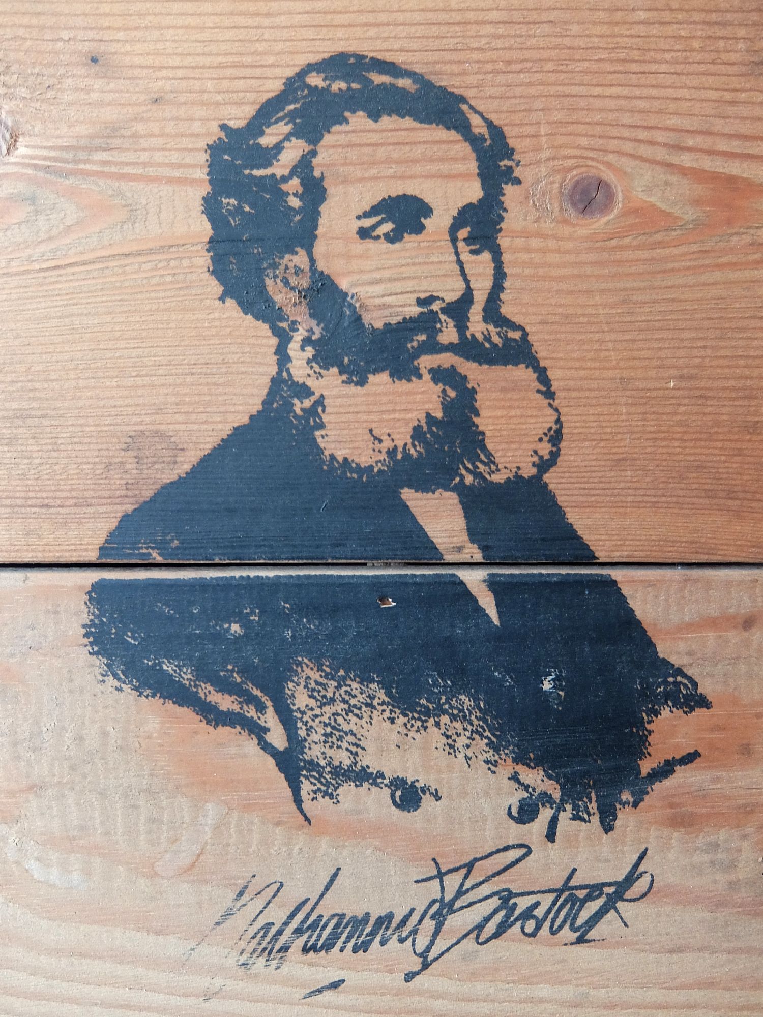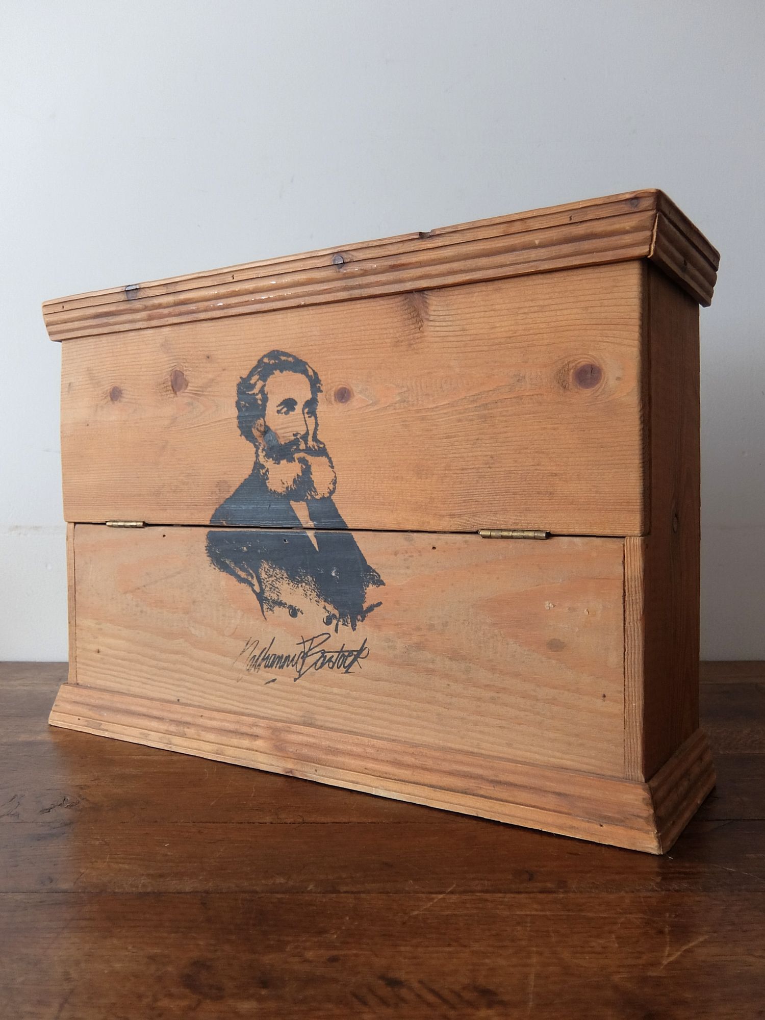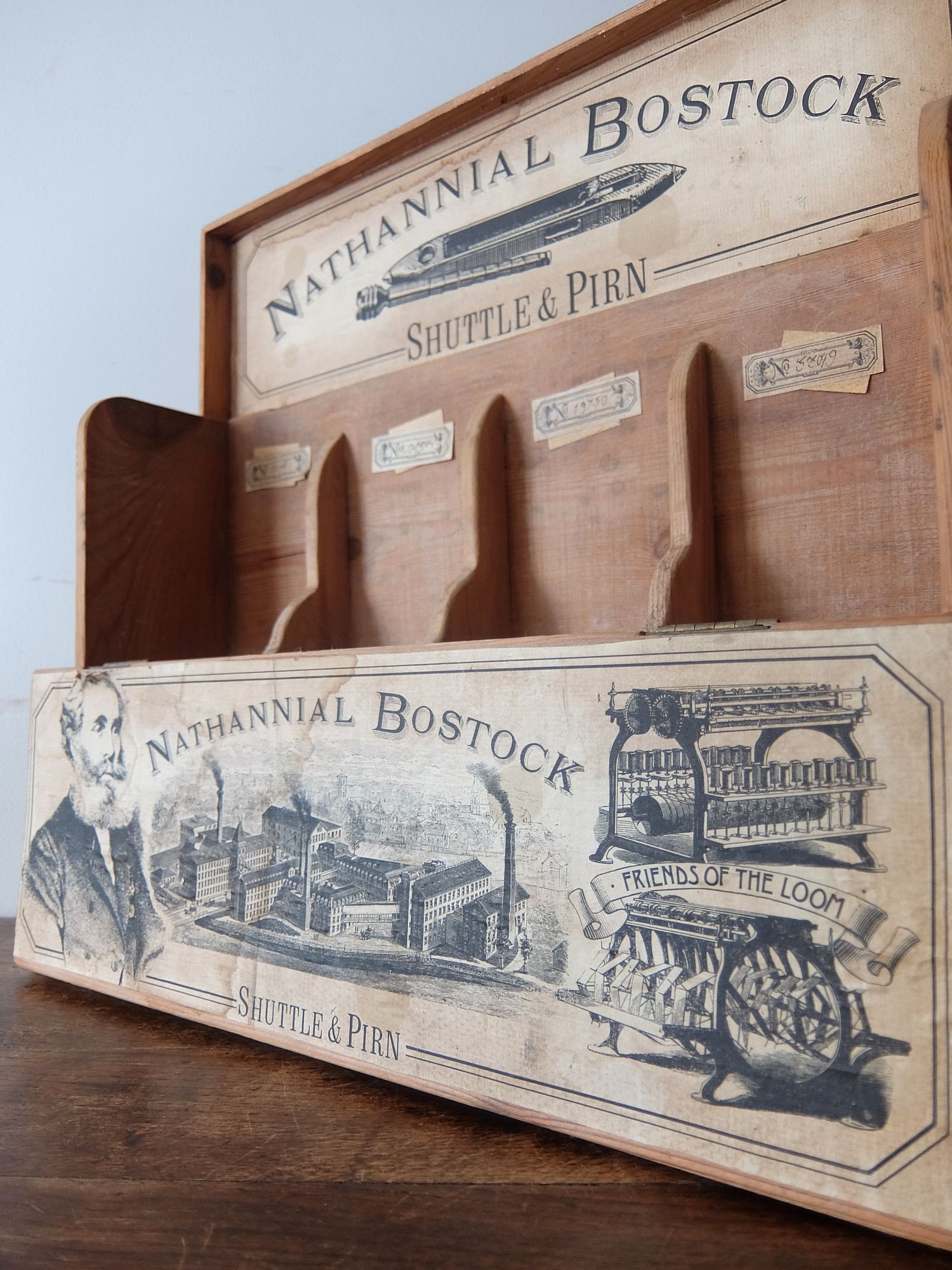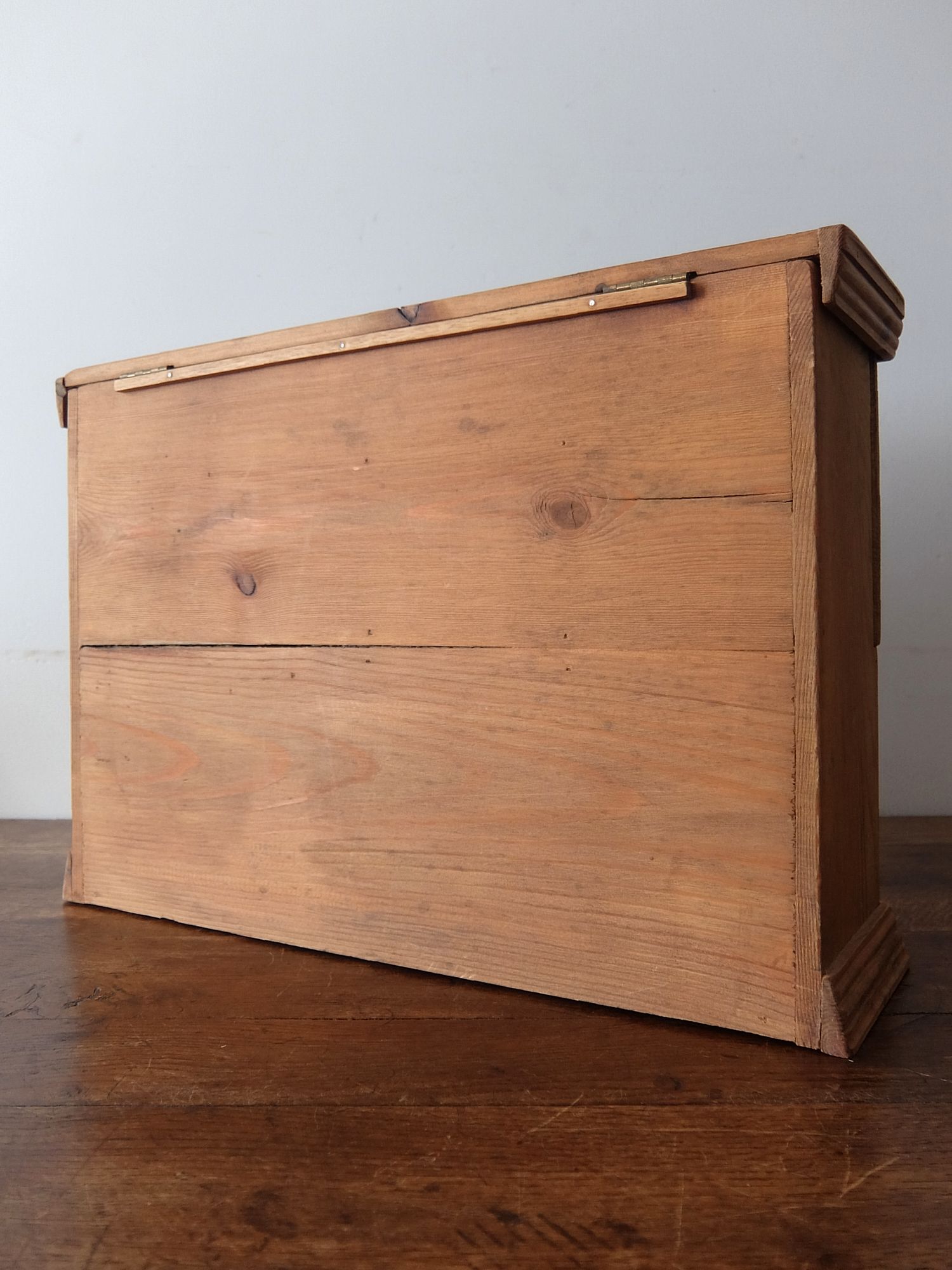 工業用ミシンの糸巻きが収納されていたパイン材の木箱