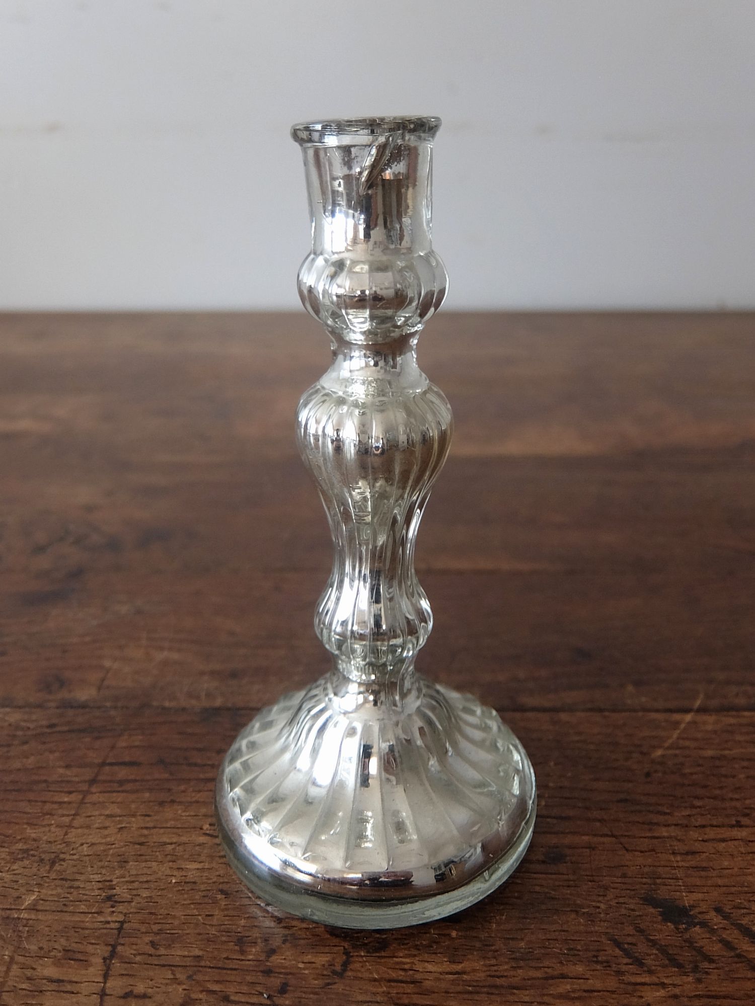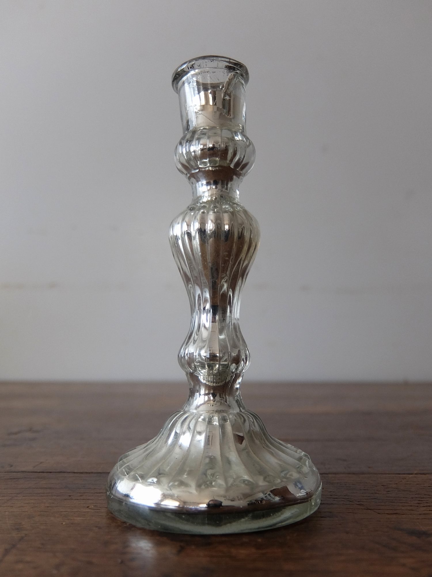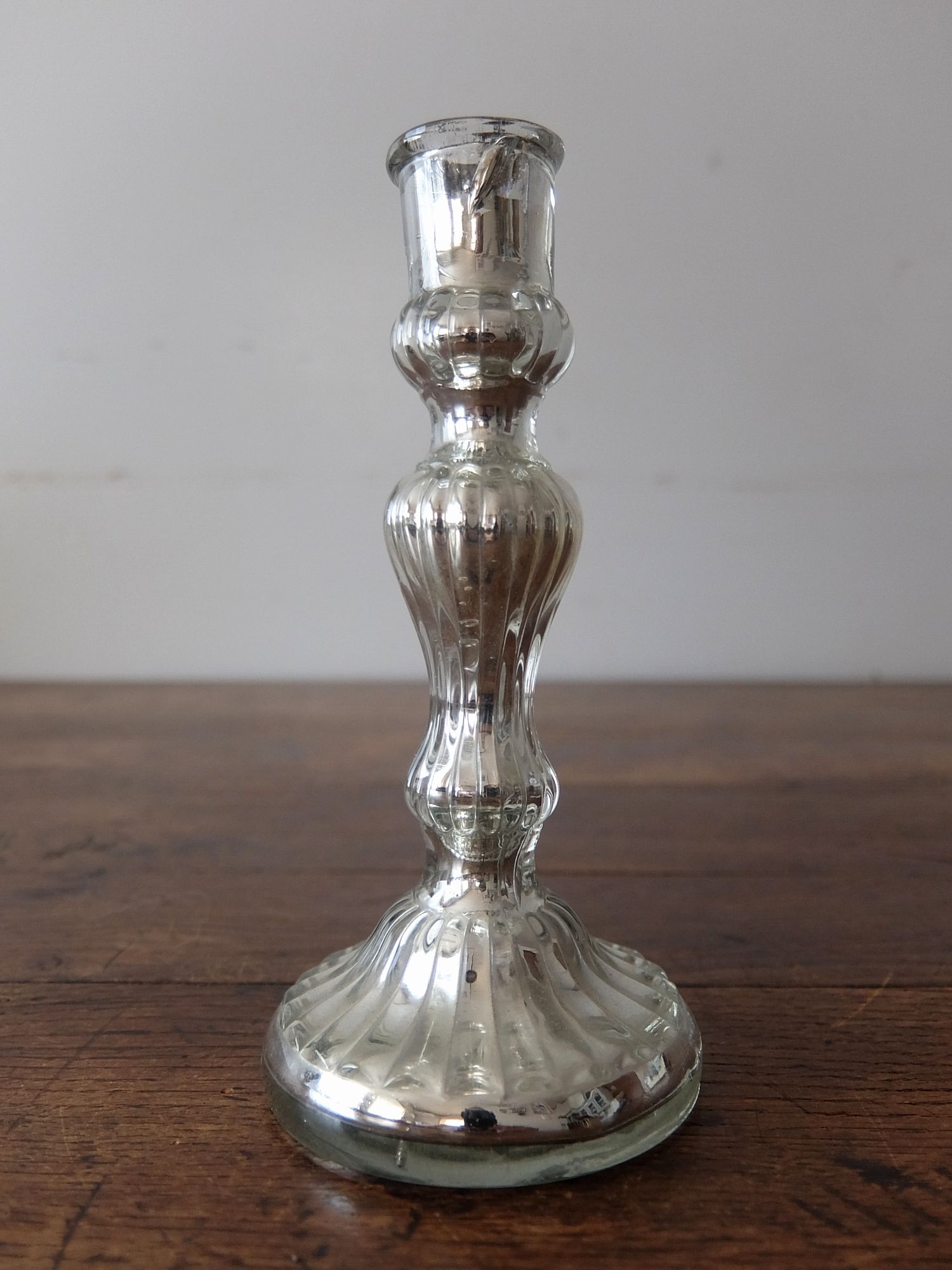ガラスの内側に水銀を施した中空のキャンドルスタンド
