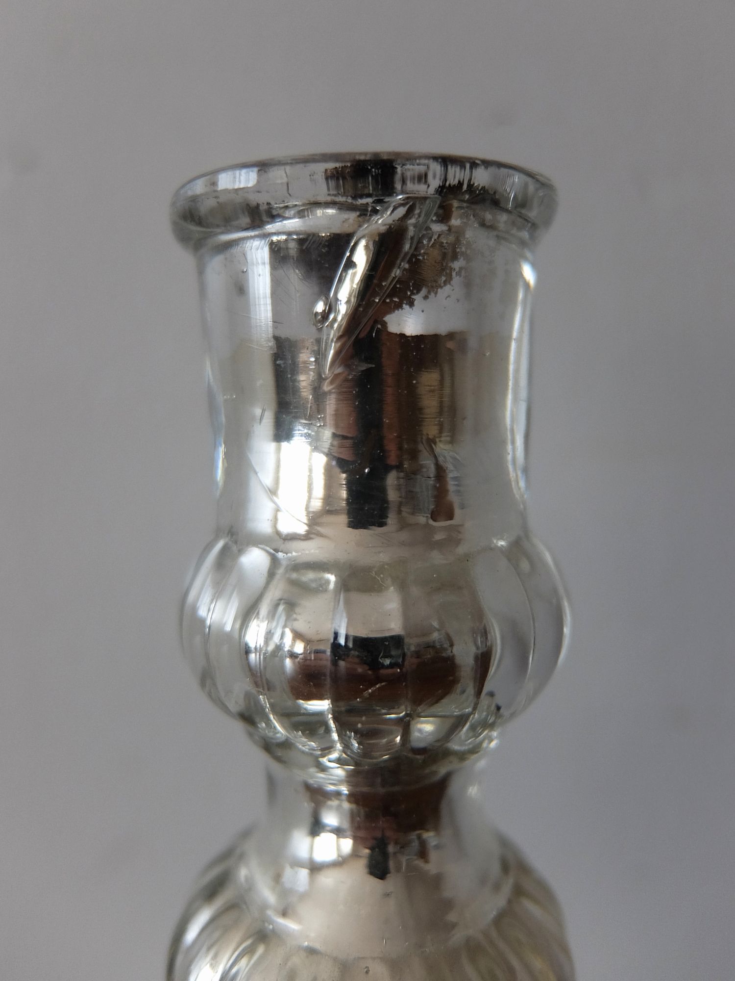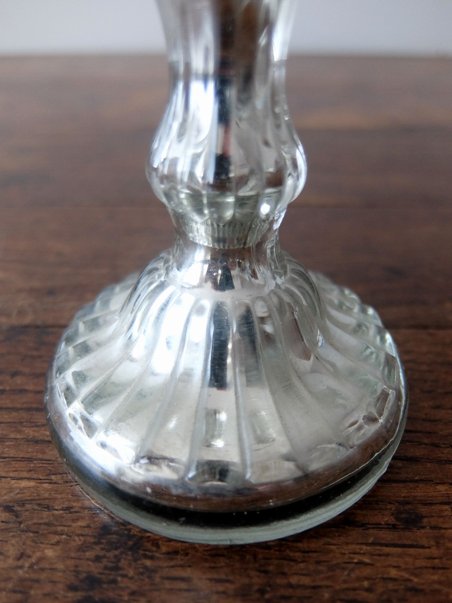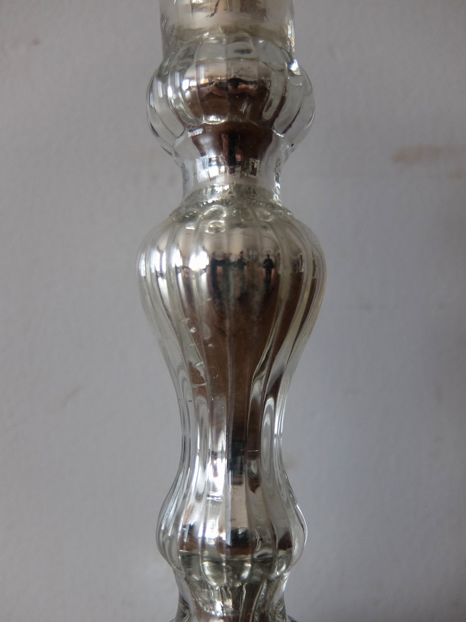 ガラスの内側に水銀を施した中空のキャンドルスタンド