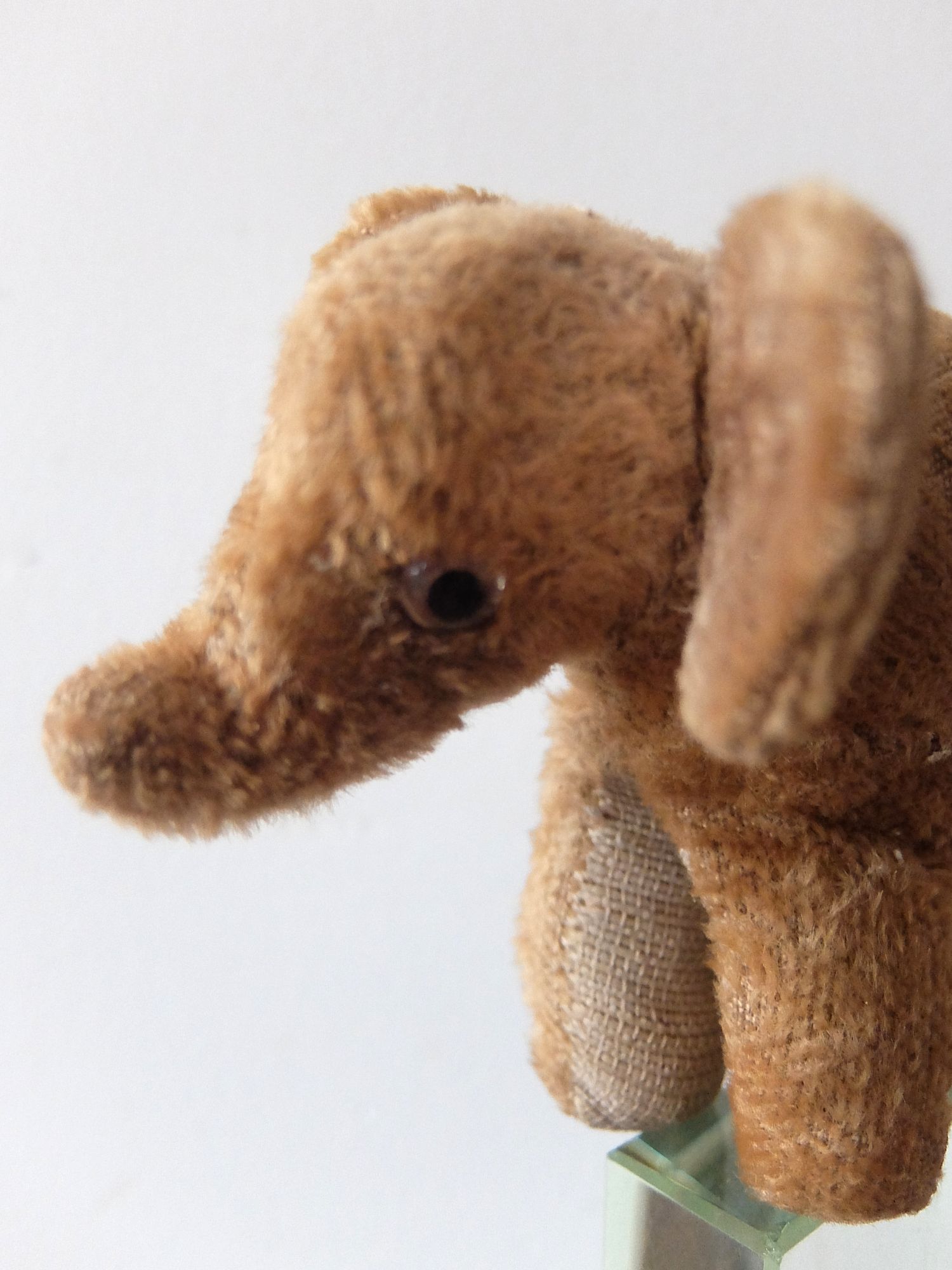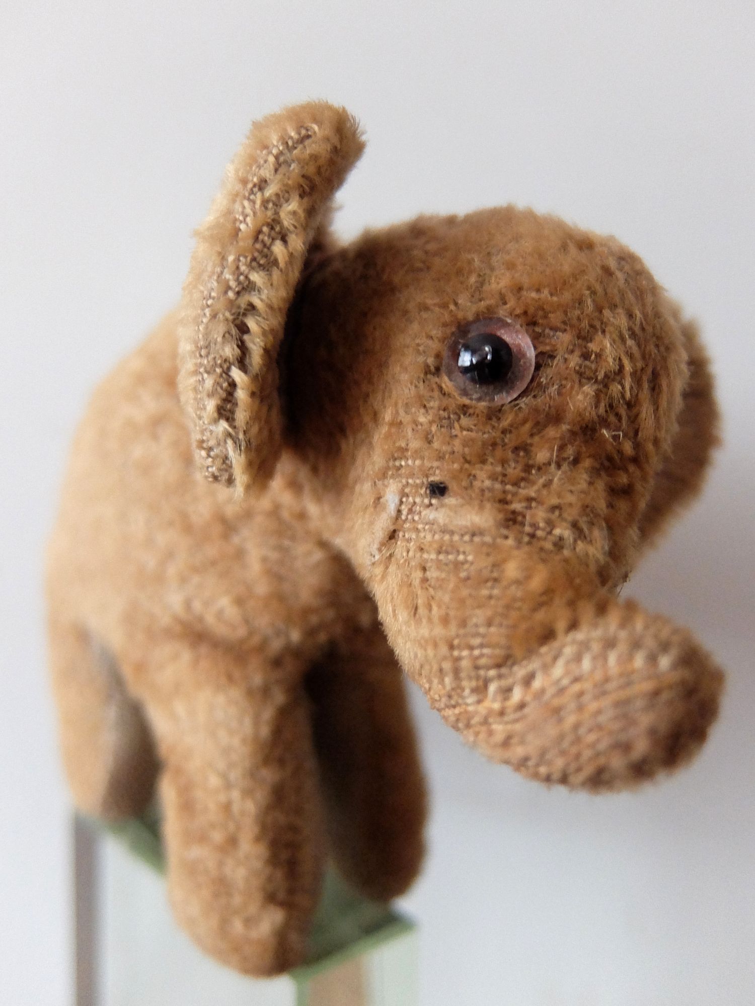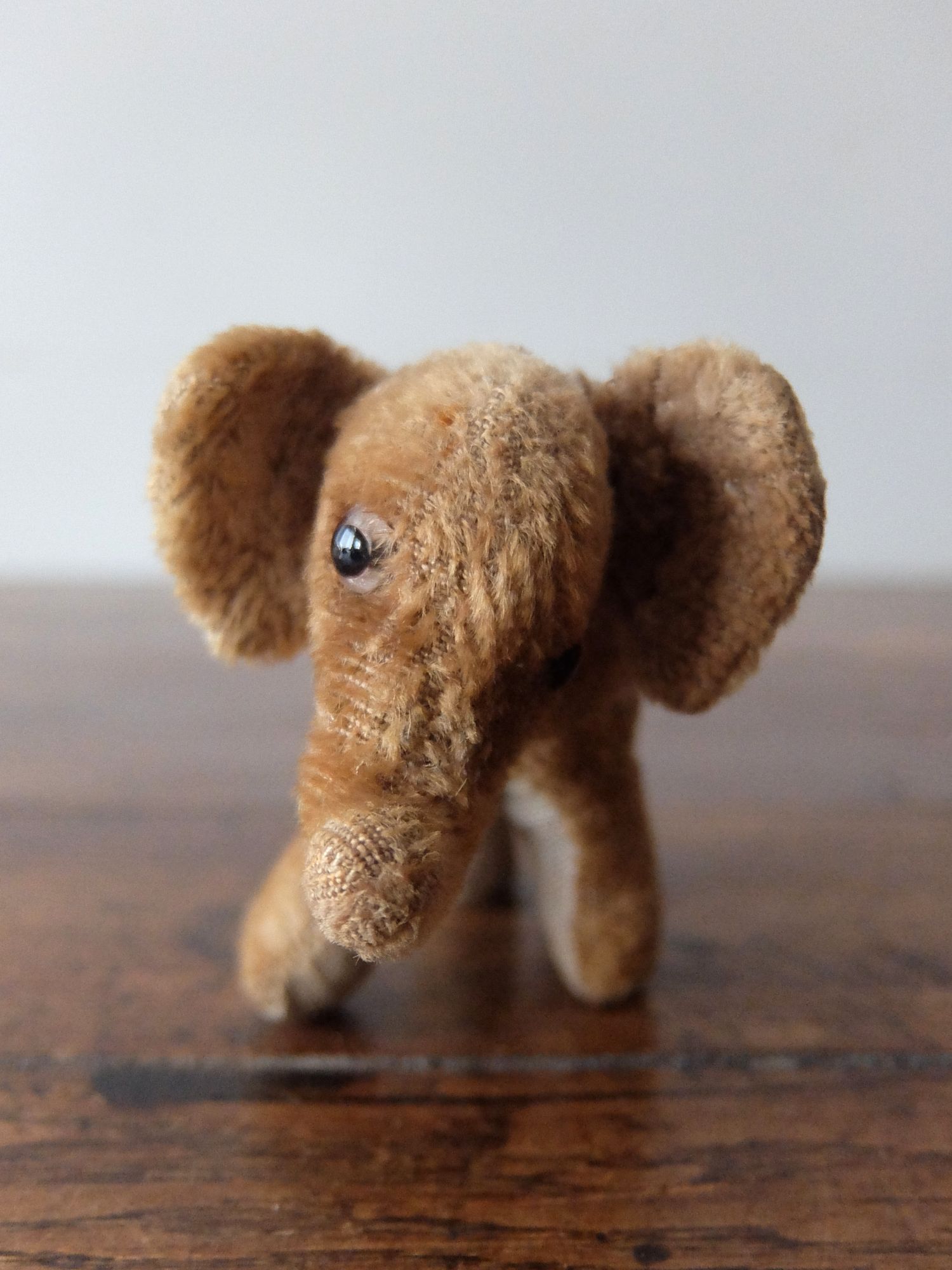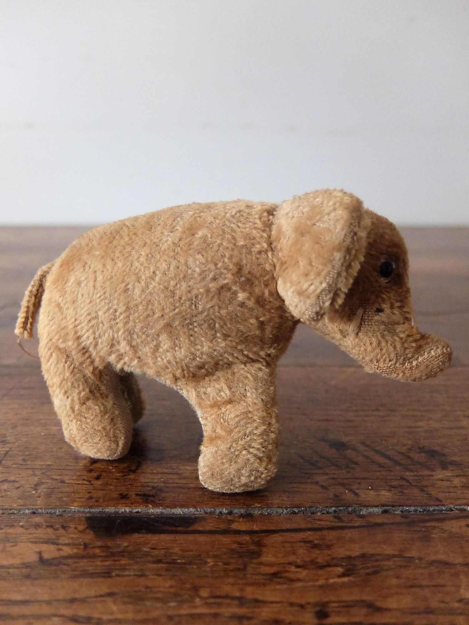 つぶらな瞳が可愛らしい藁が詰まった小さなゾウのぬいぐるみ