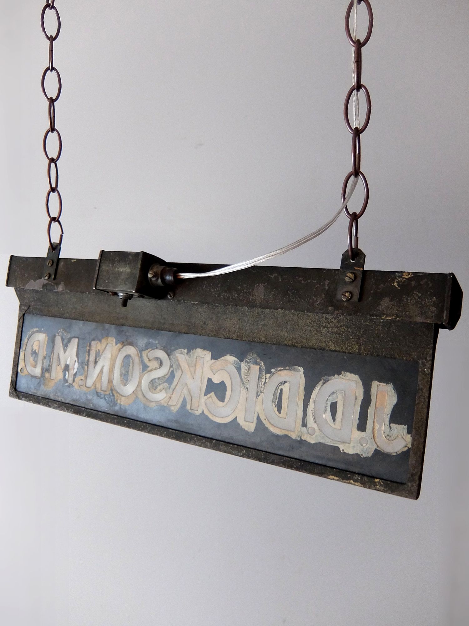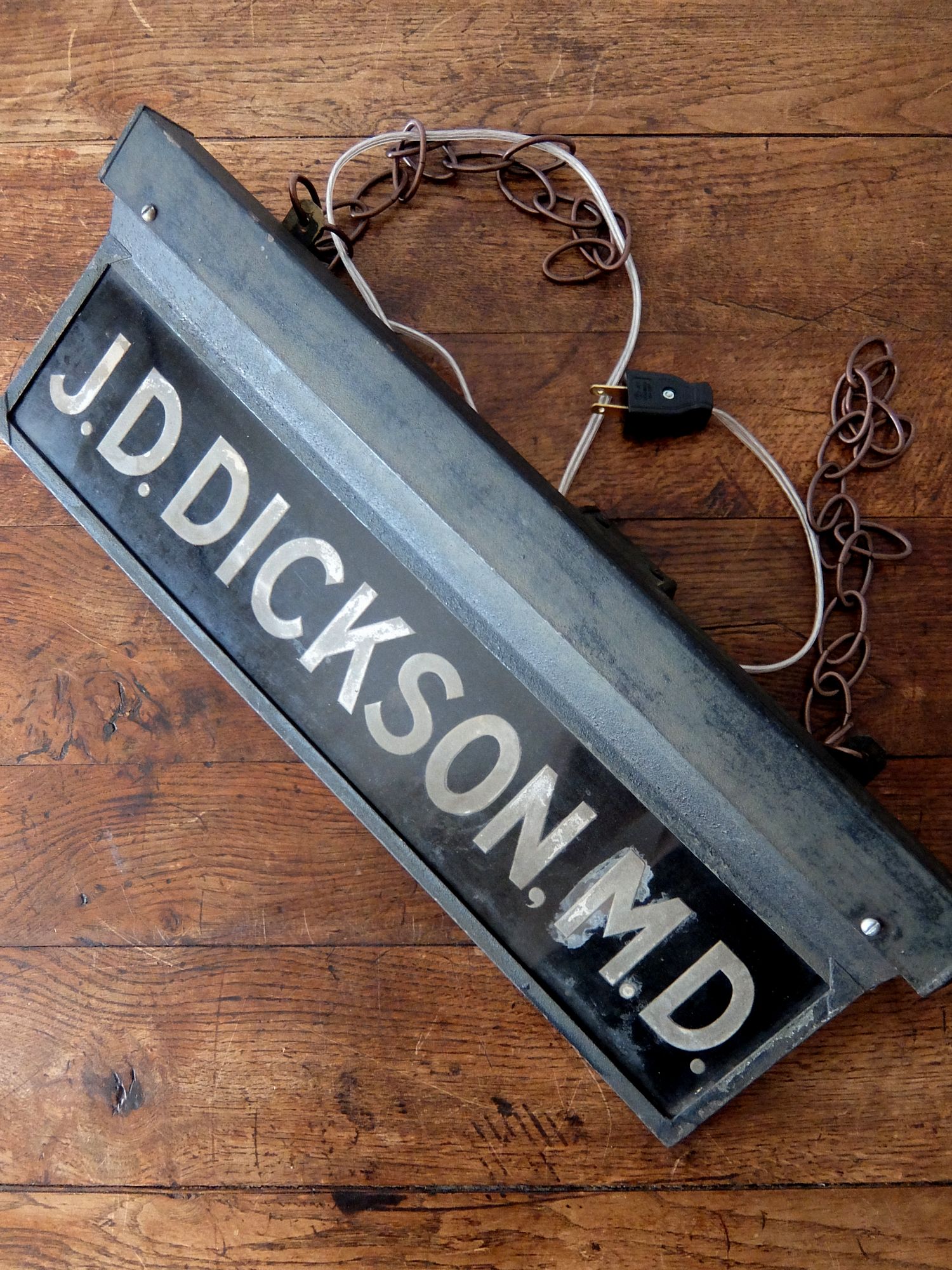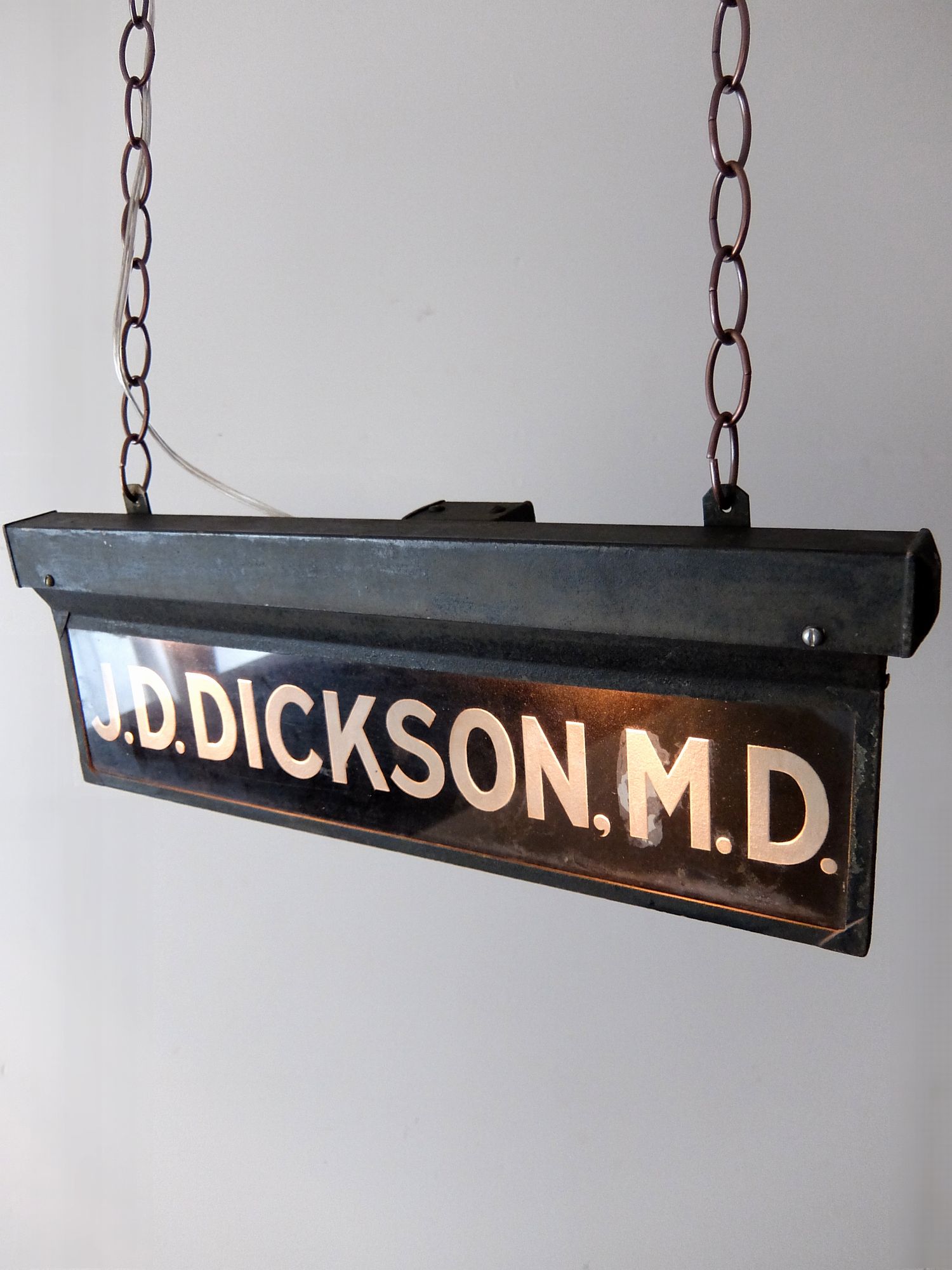 厚いガラスに塗装された照明付きのサイン【J.D.ディクソン医学博士】