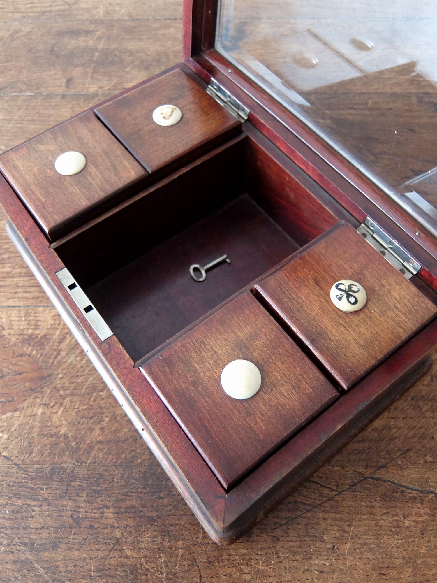 カードゲームのカードやチップ、駒などが収納されていたガラスケース(カギ付)