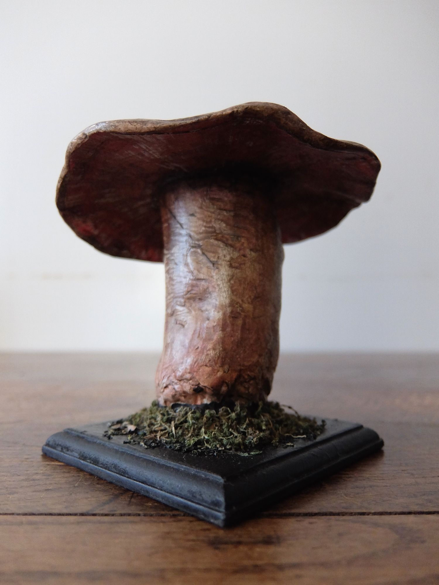 教育機関で使用されていたキノコの模型(土台:木製、キノコ部:パピエに石膏を塗ったもの)