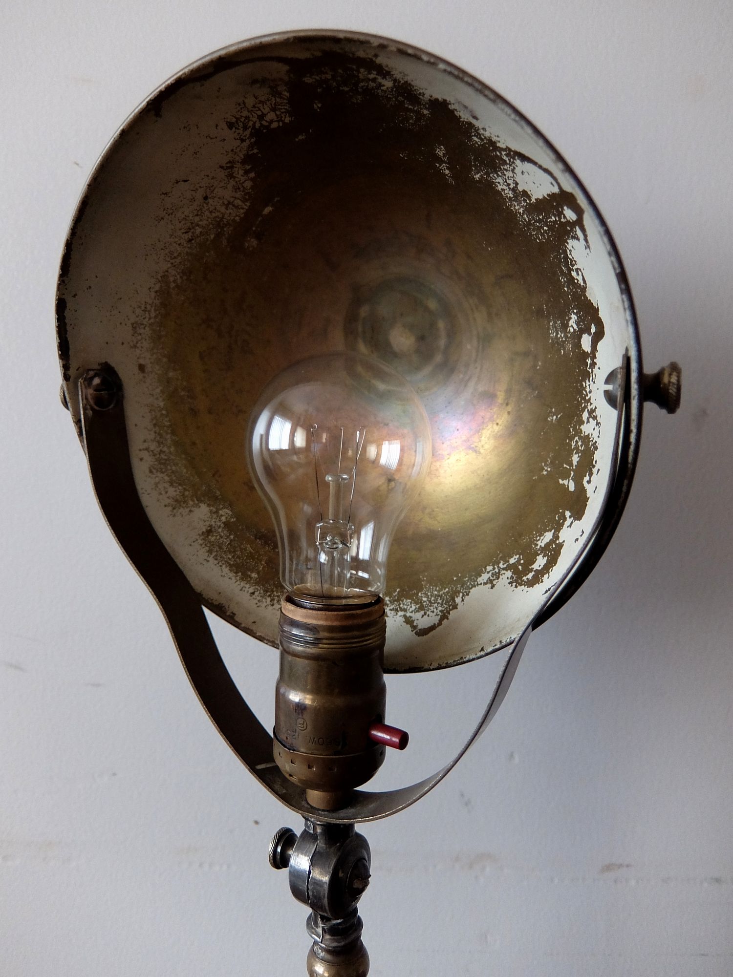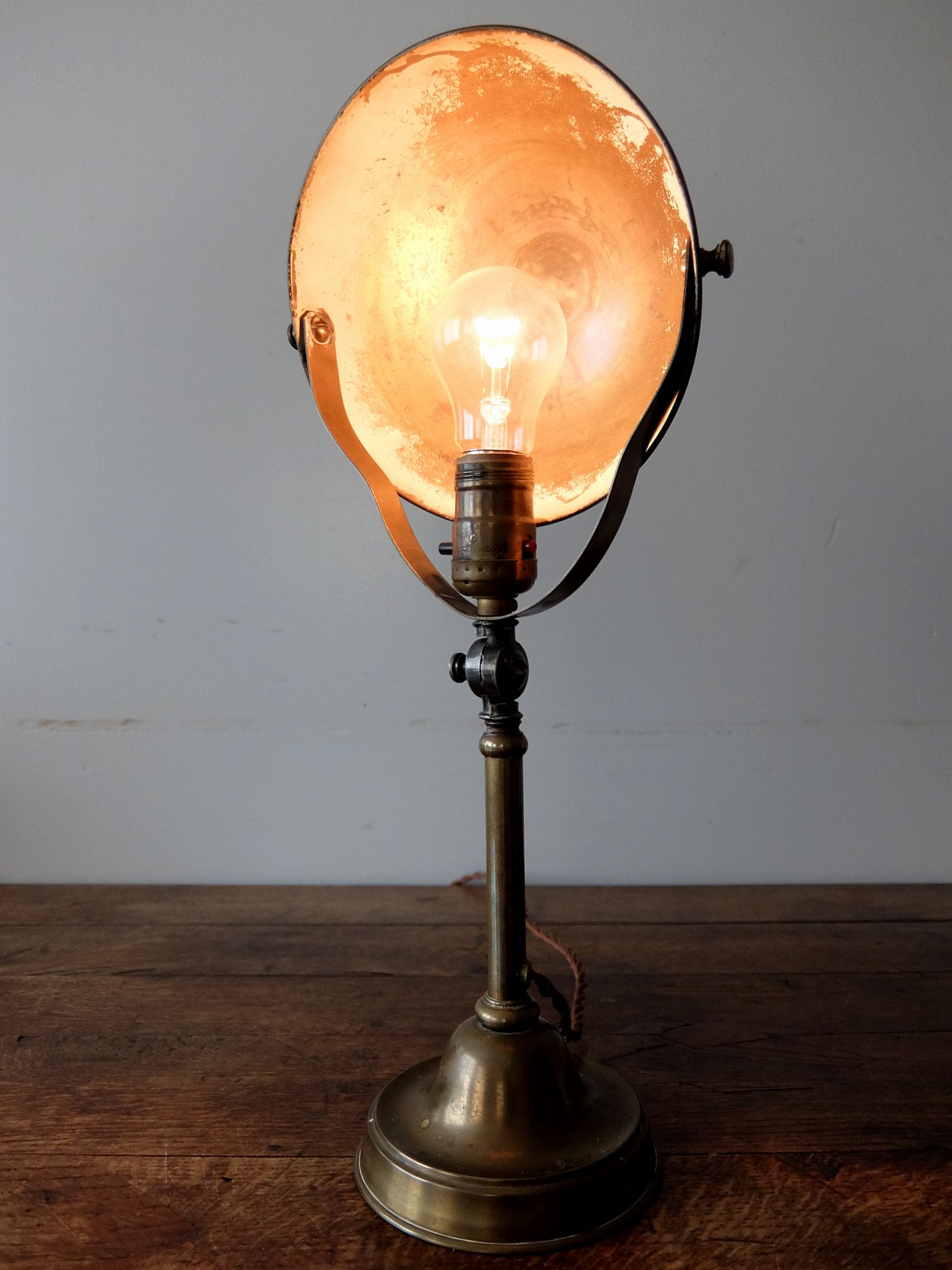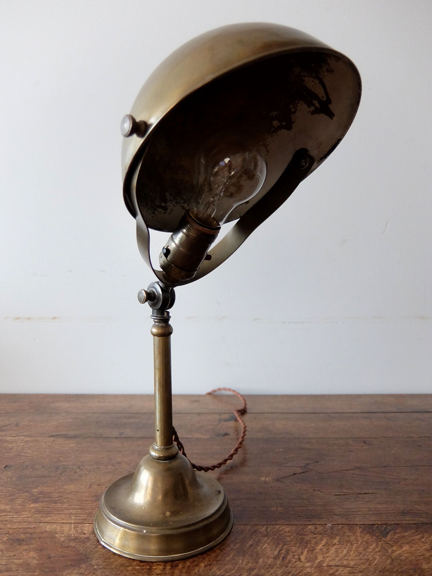 真鍮の経年の色彩が美しい多関節による広い可動域をもつデスクランプ