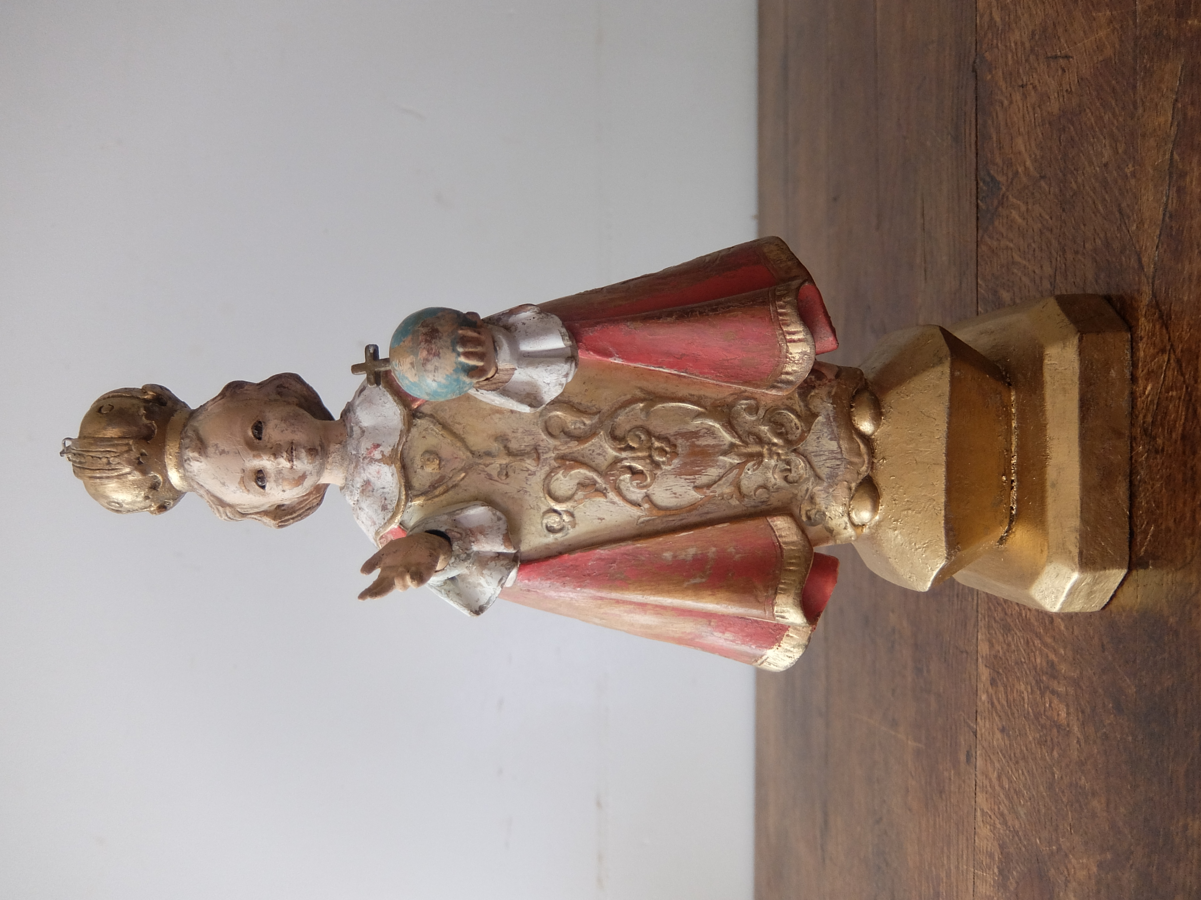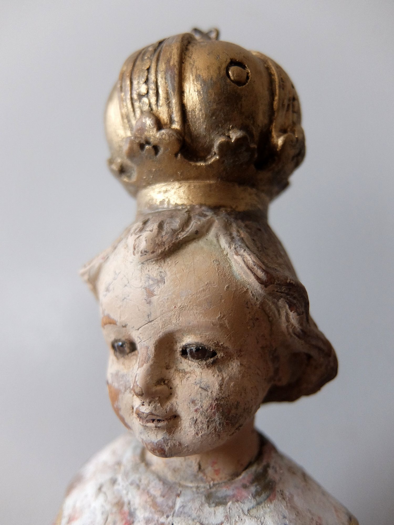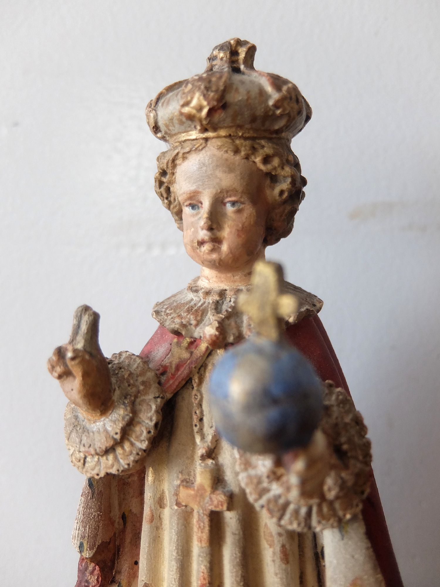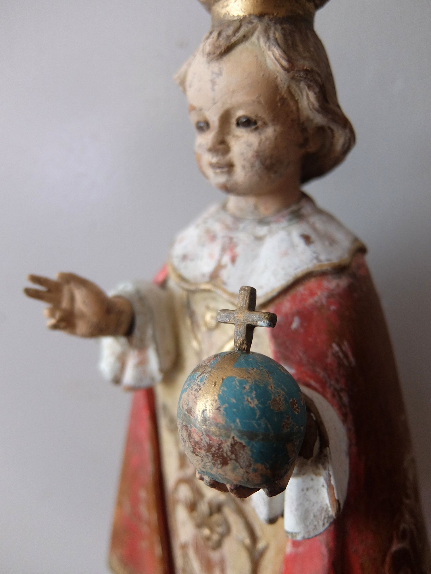 木製の朽ちた塗装の風合いが美しいグラスアイズの【Bambini・di・Praga(バンビーニ・ディ・プラガ):プラハの幼子イエス像】