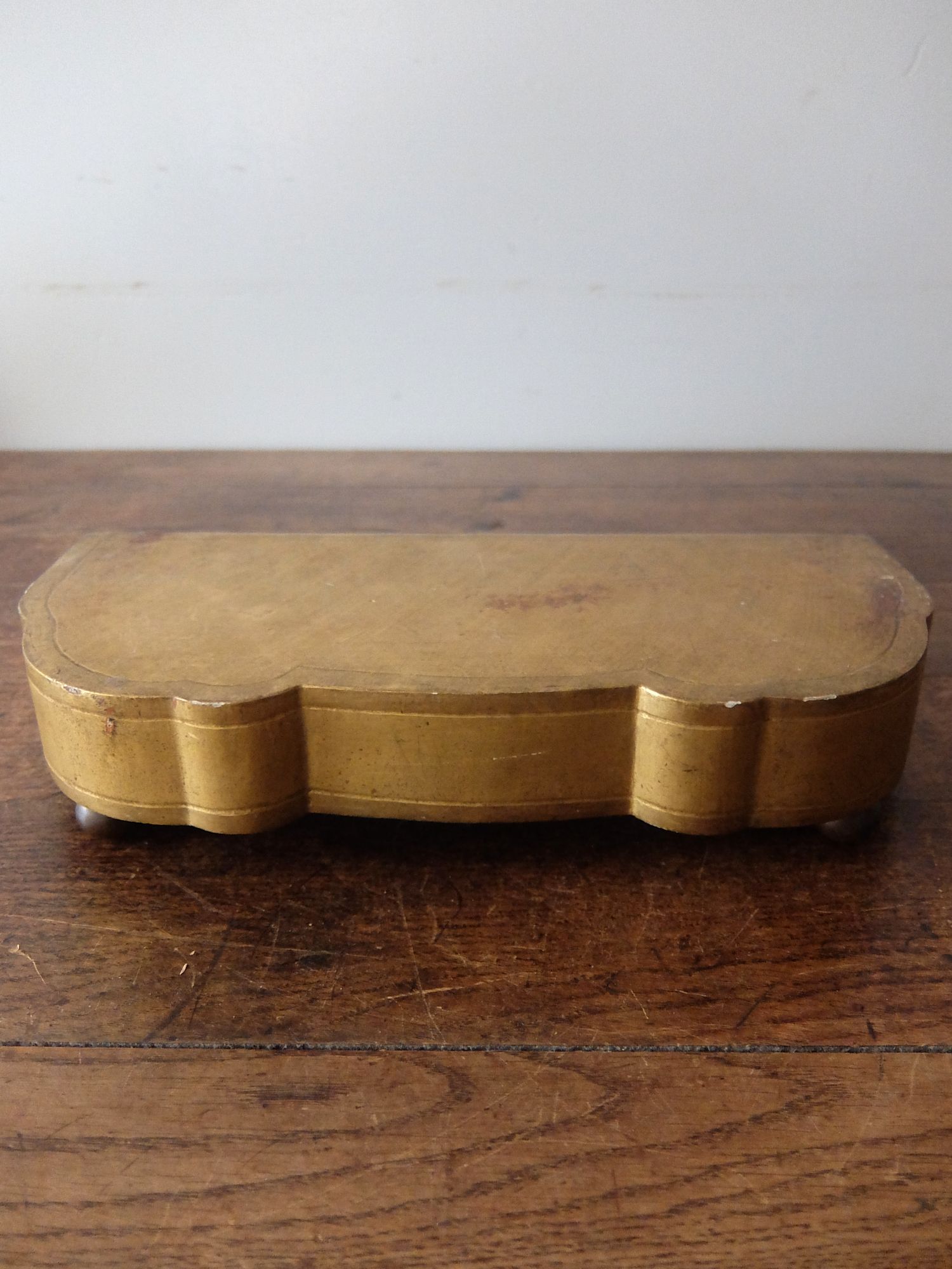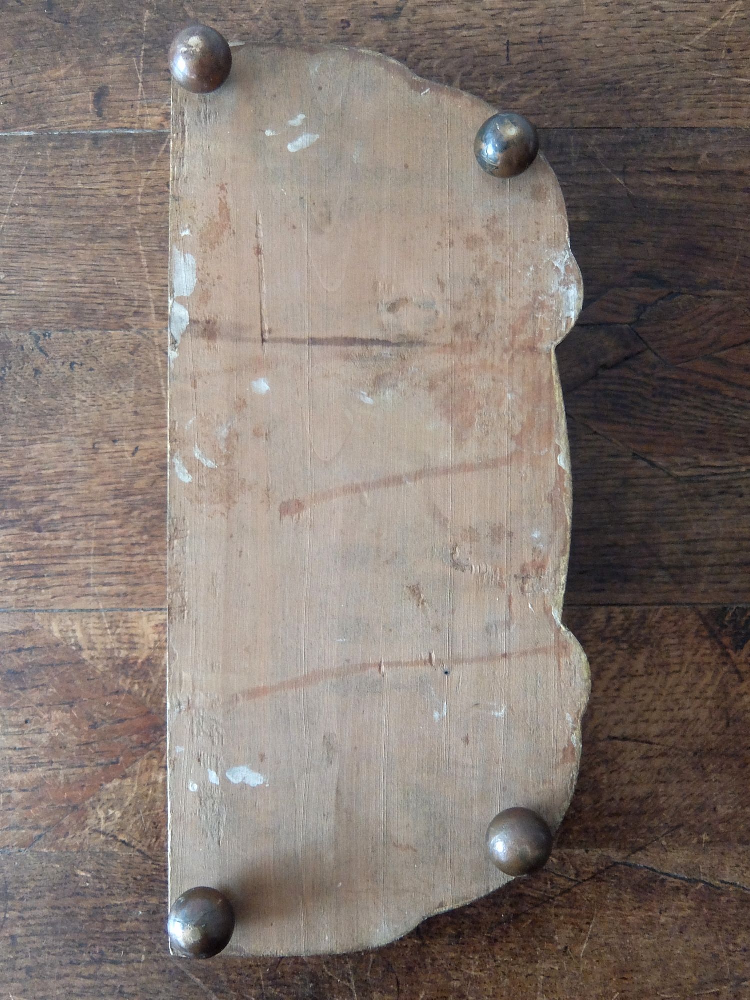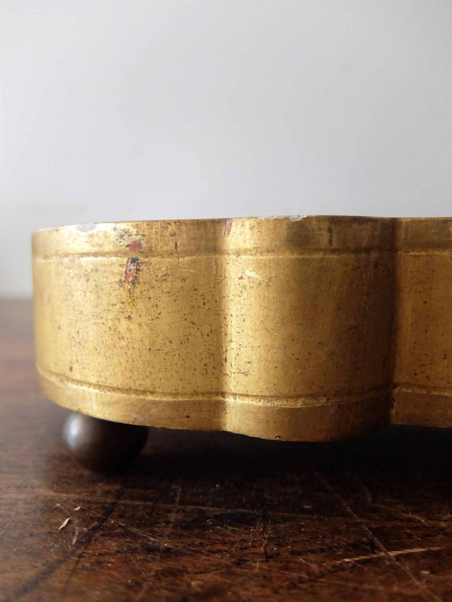 朽ちたゴールドの塗装が美しい重厚な木製のディスプレイスタンド