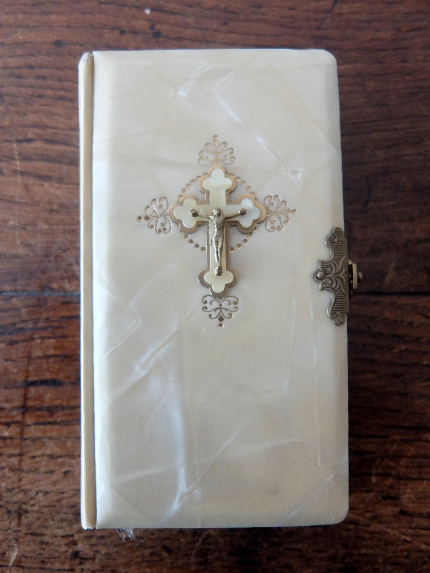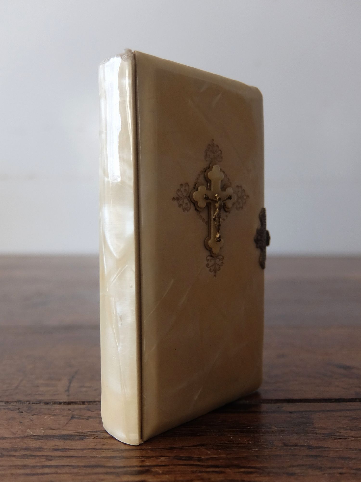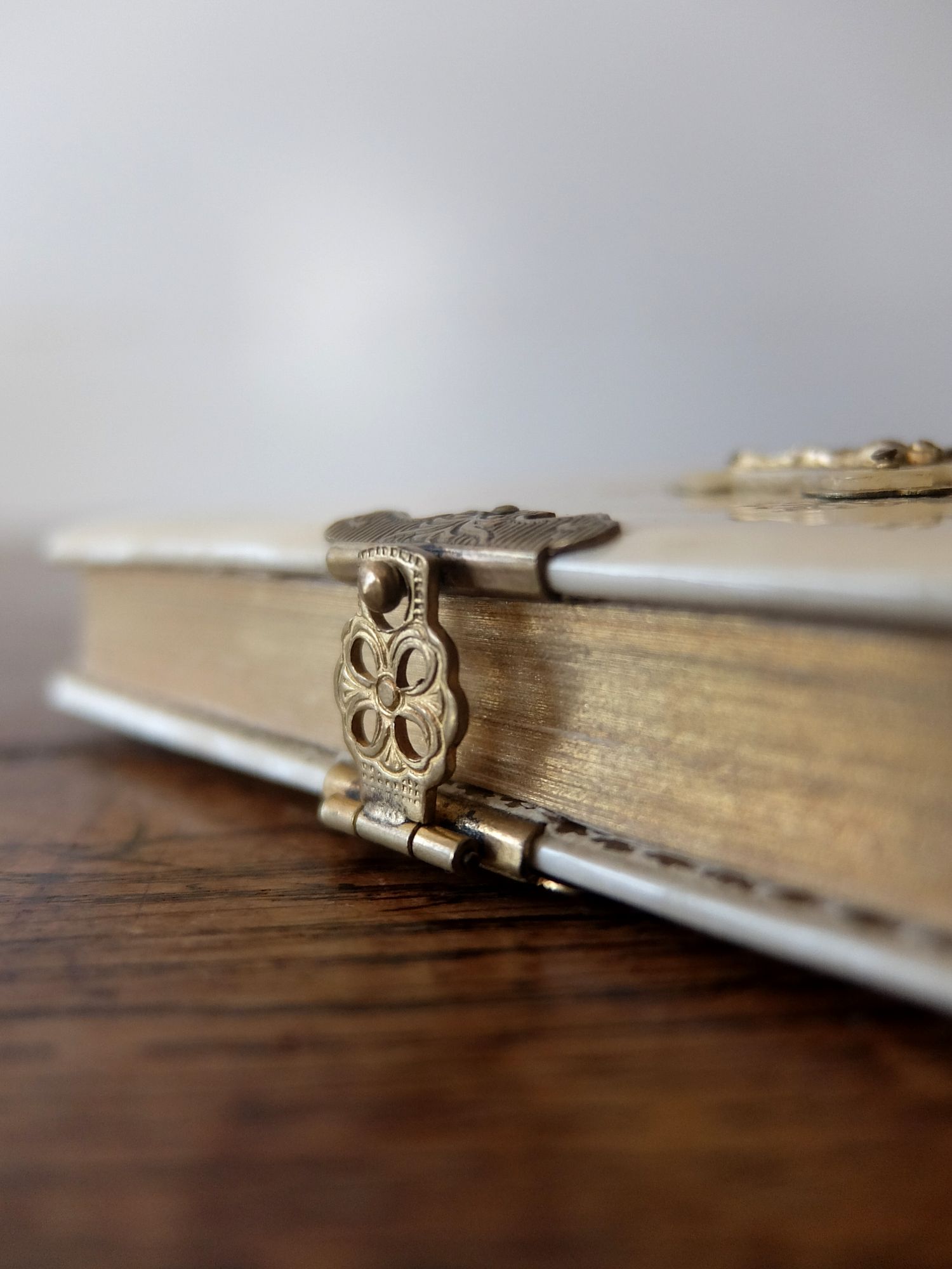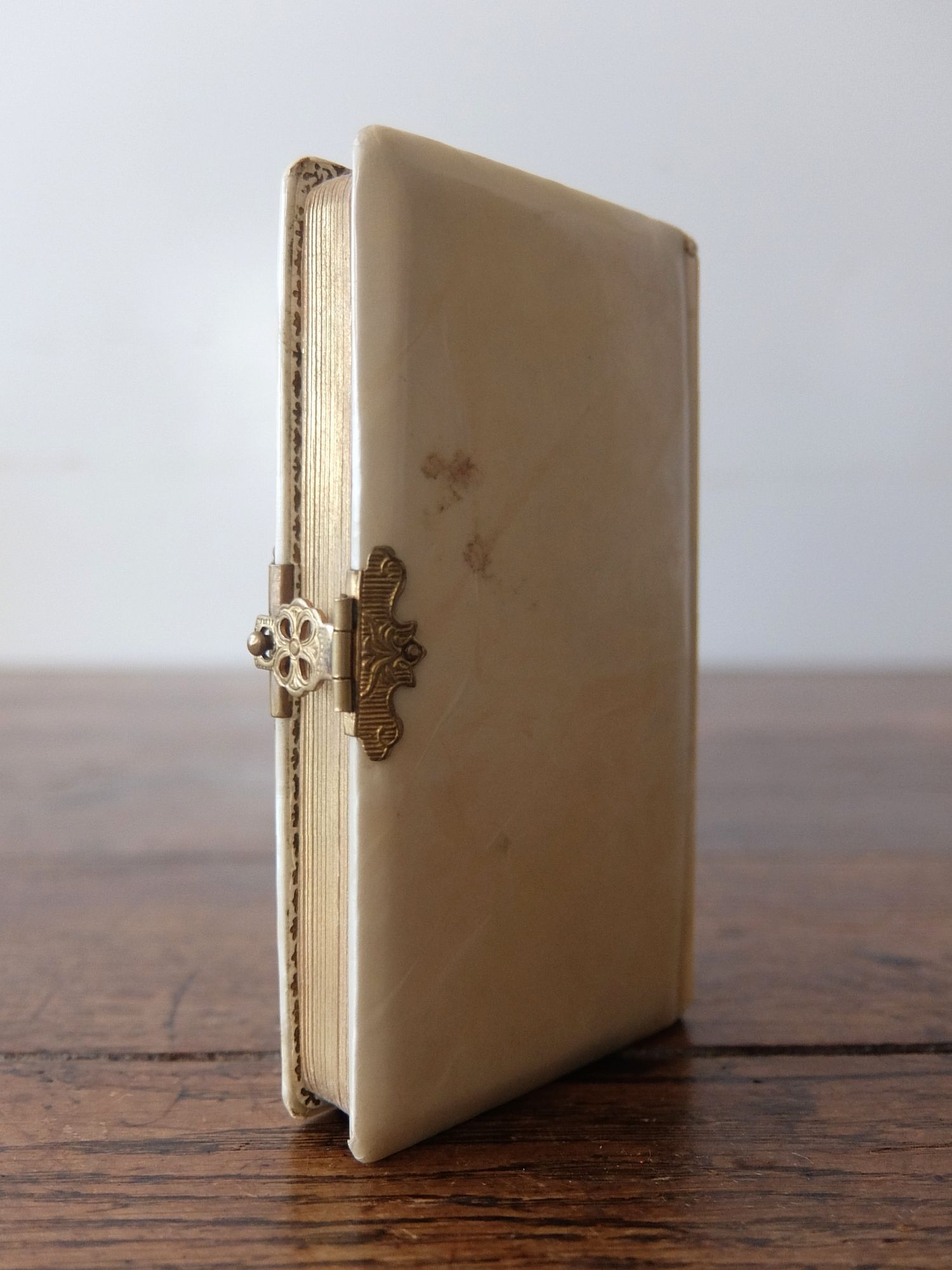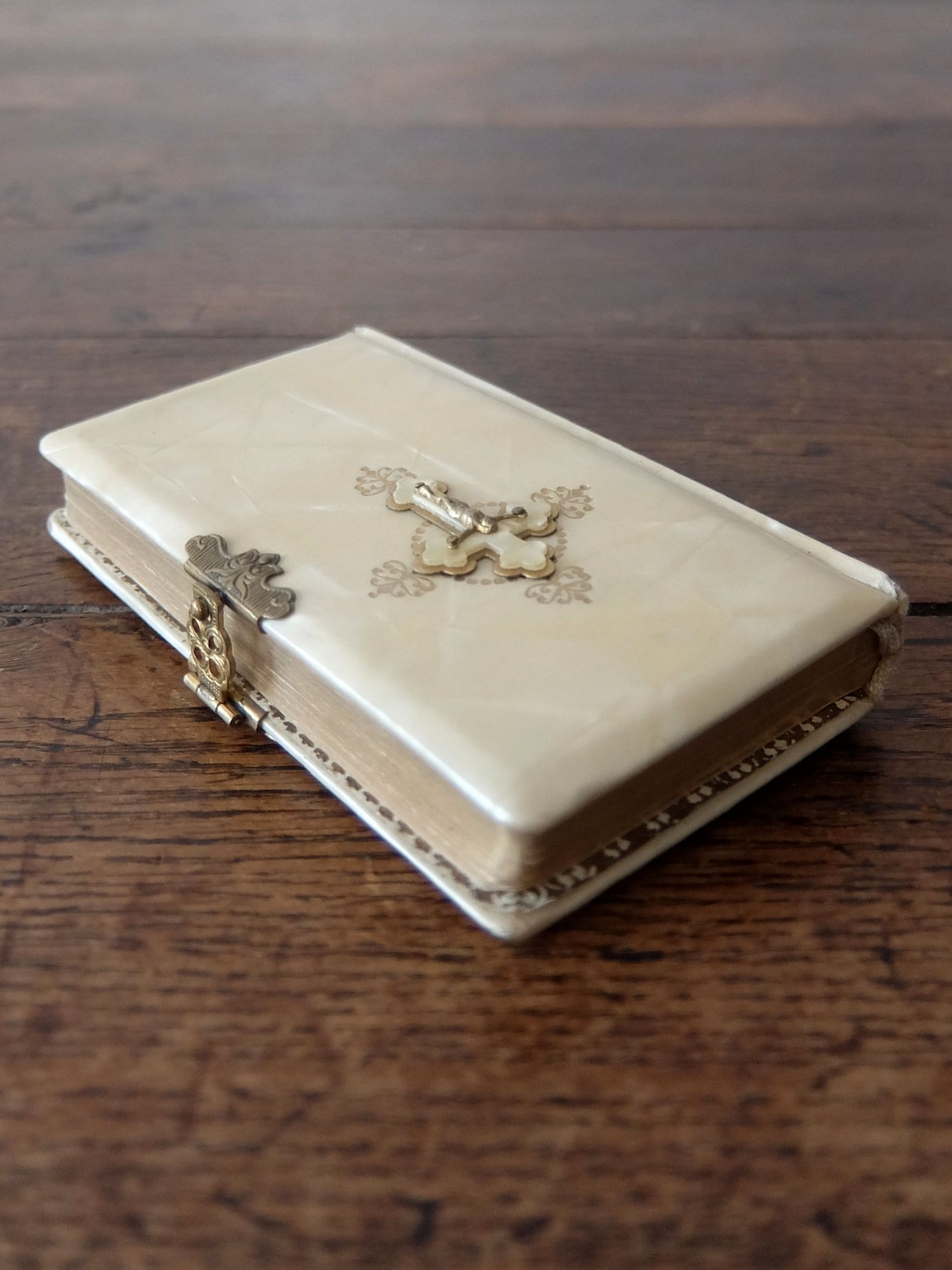 繊細な装飾が美しい象牙色の表装の聖書
