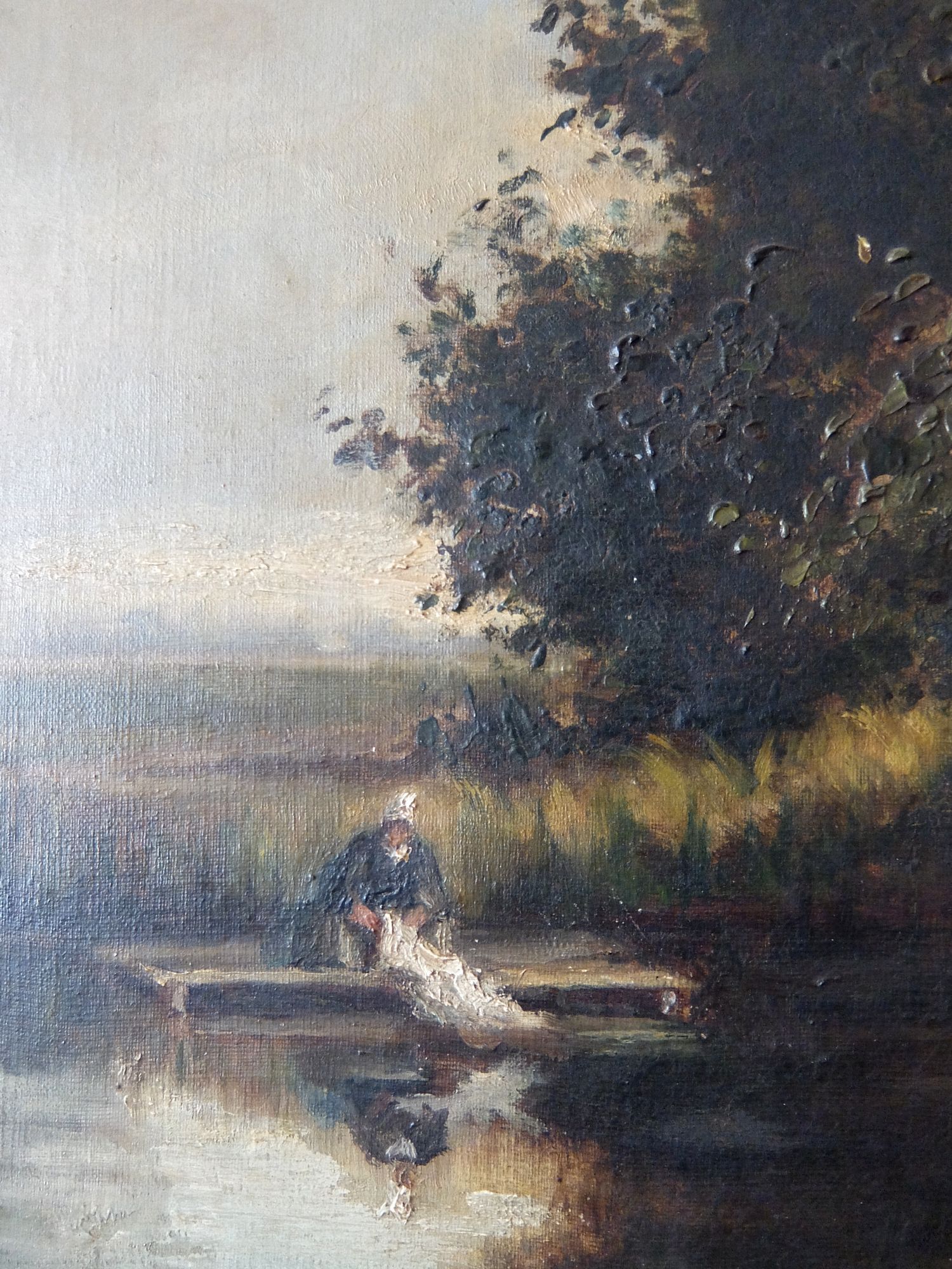 穏やかな農村の風景が美しいバルビゾン派の画家が描いた油絵