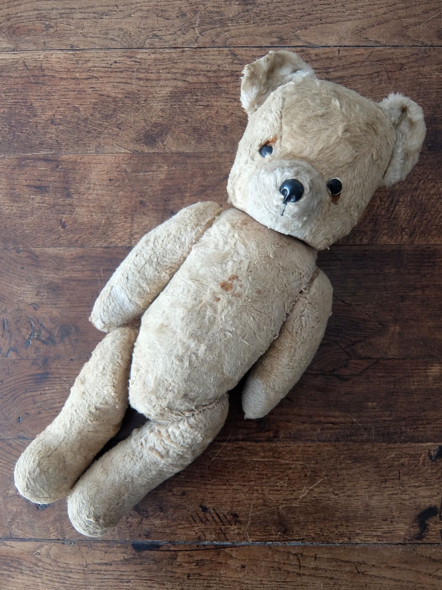 つぶらな瞳が可愛らしい藁が詰まったテディベア