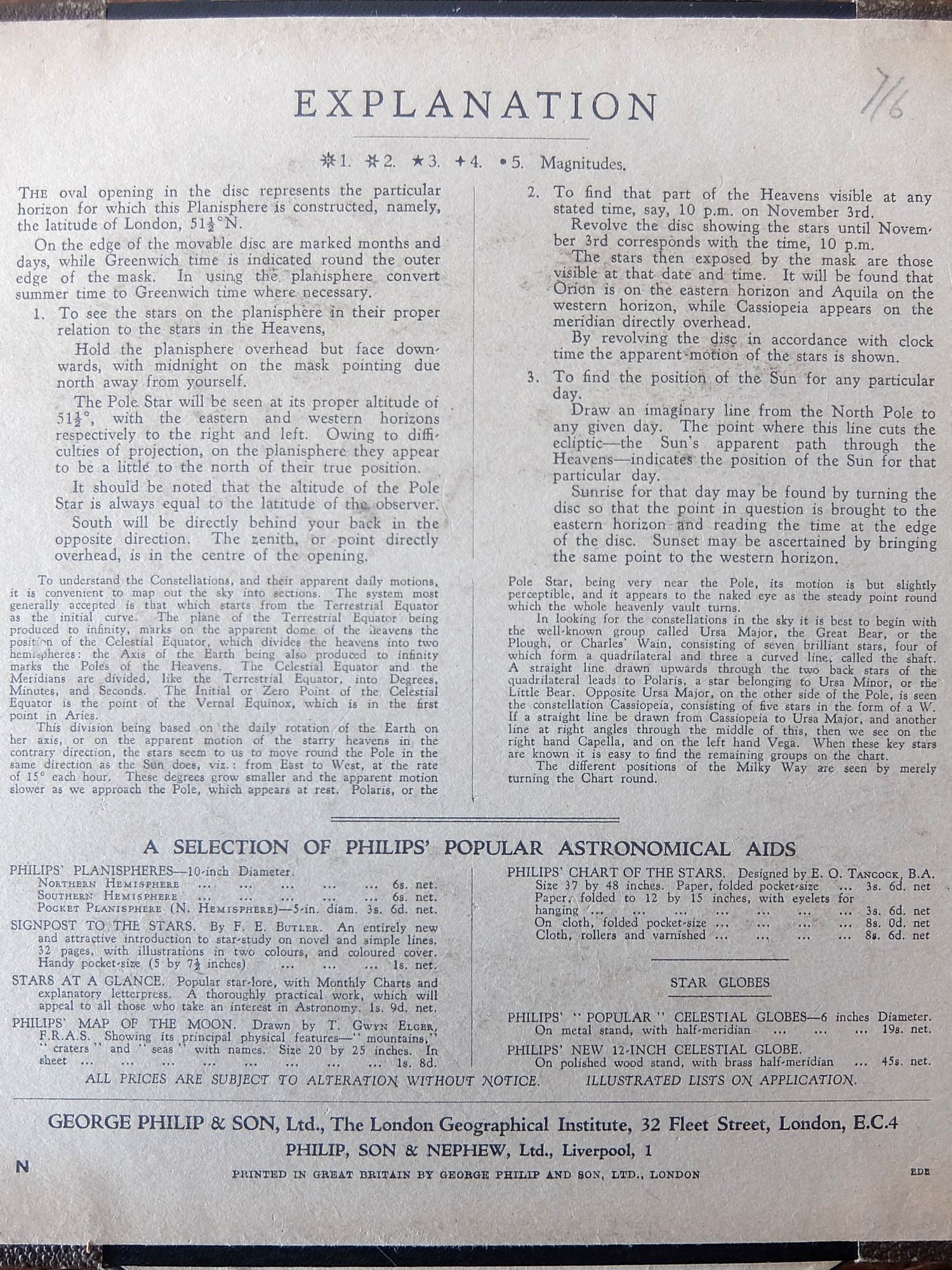 1900年代初頭に作られた【Philips(フィリップス)】社製の星座早見盤