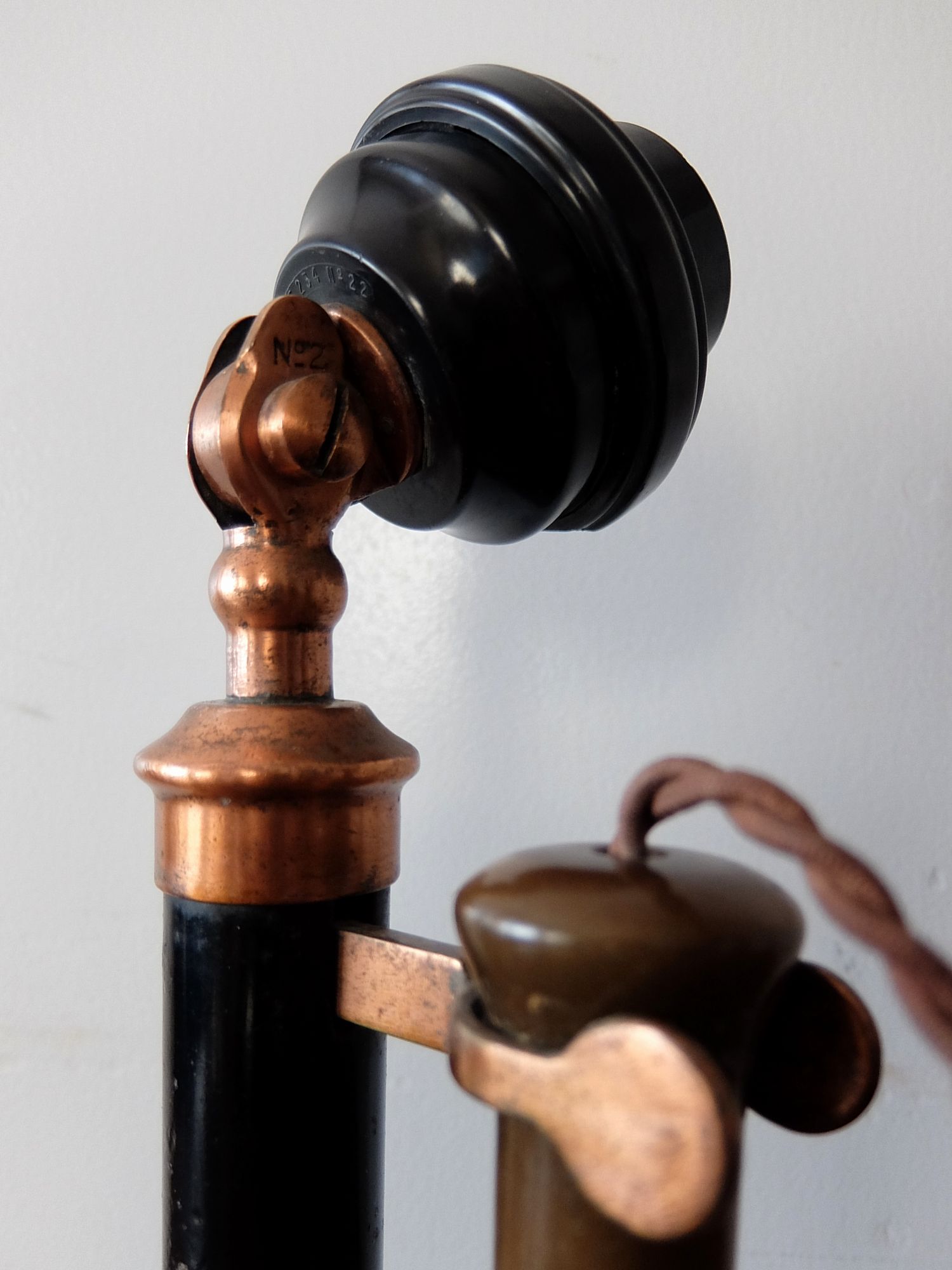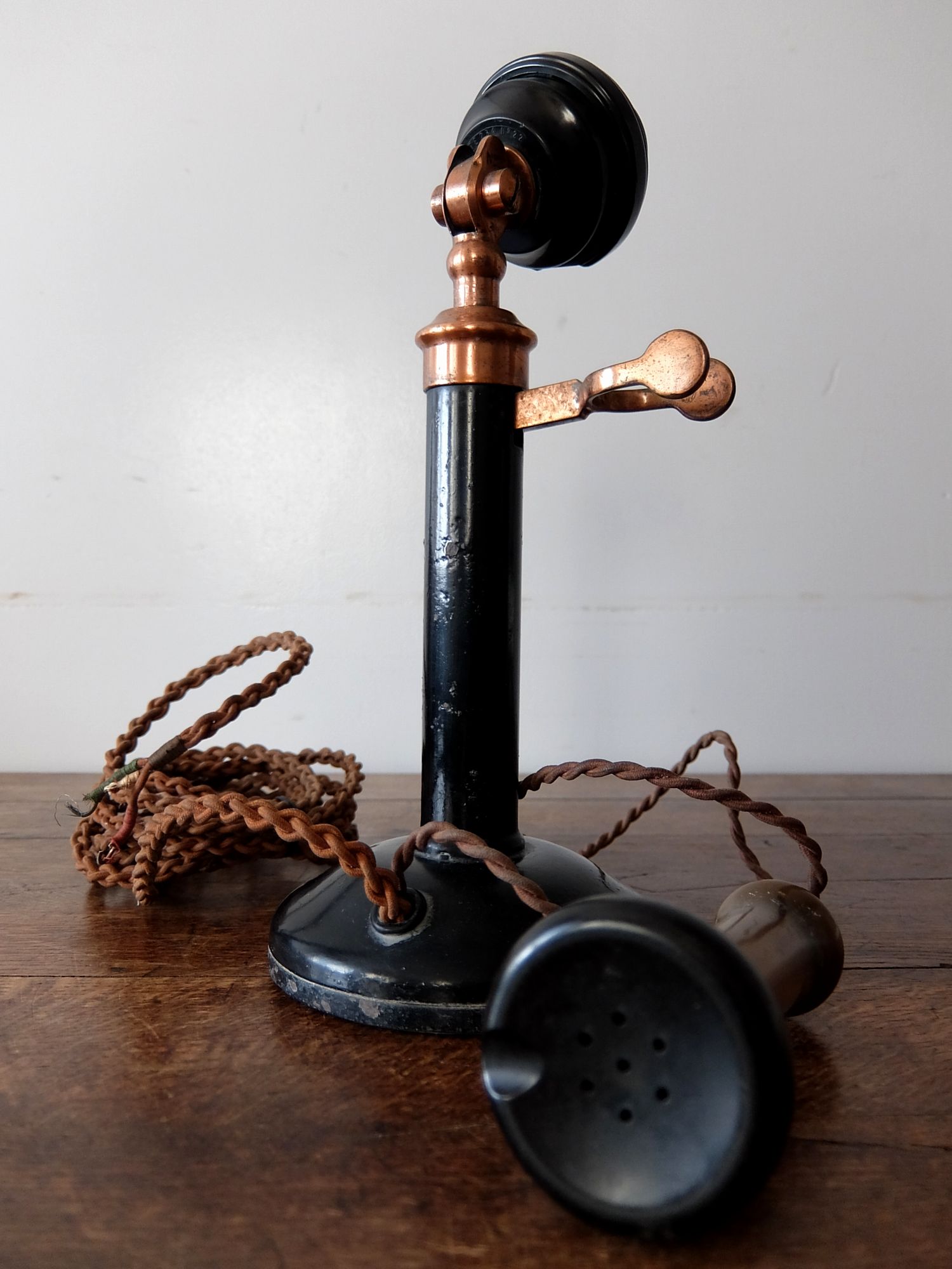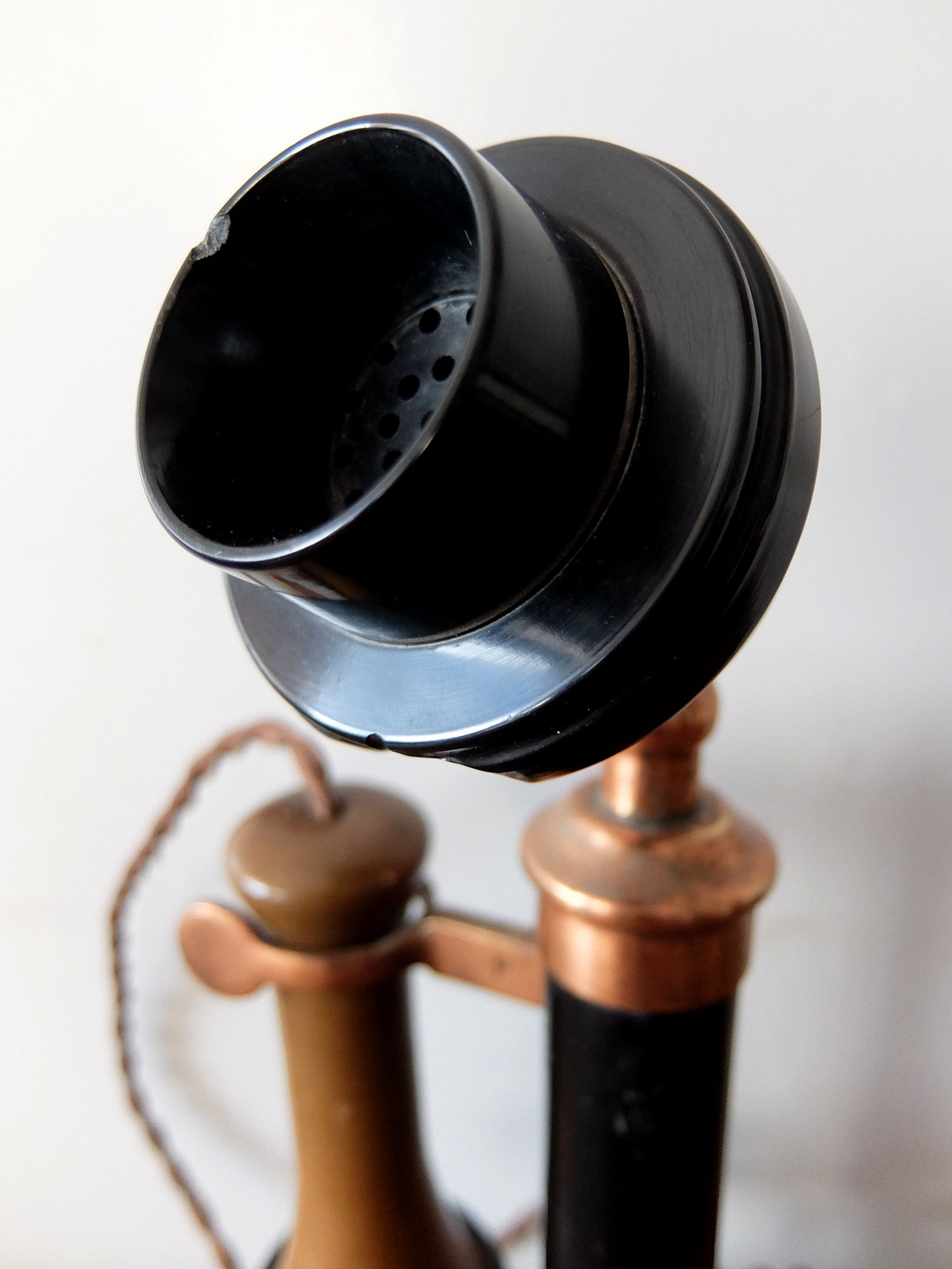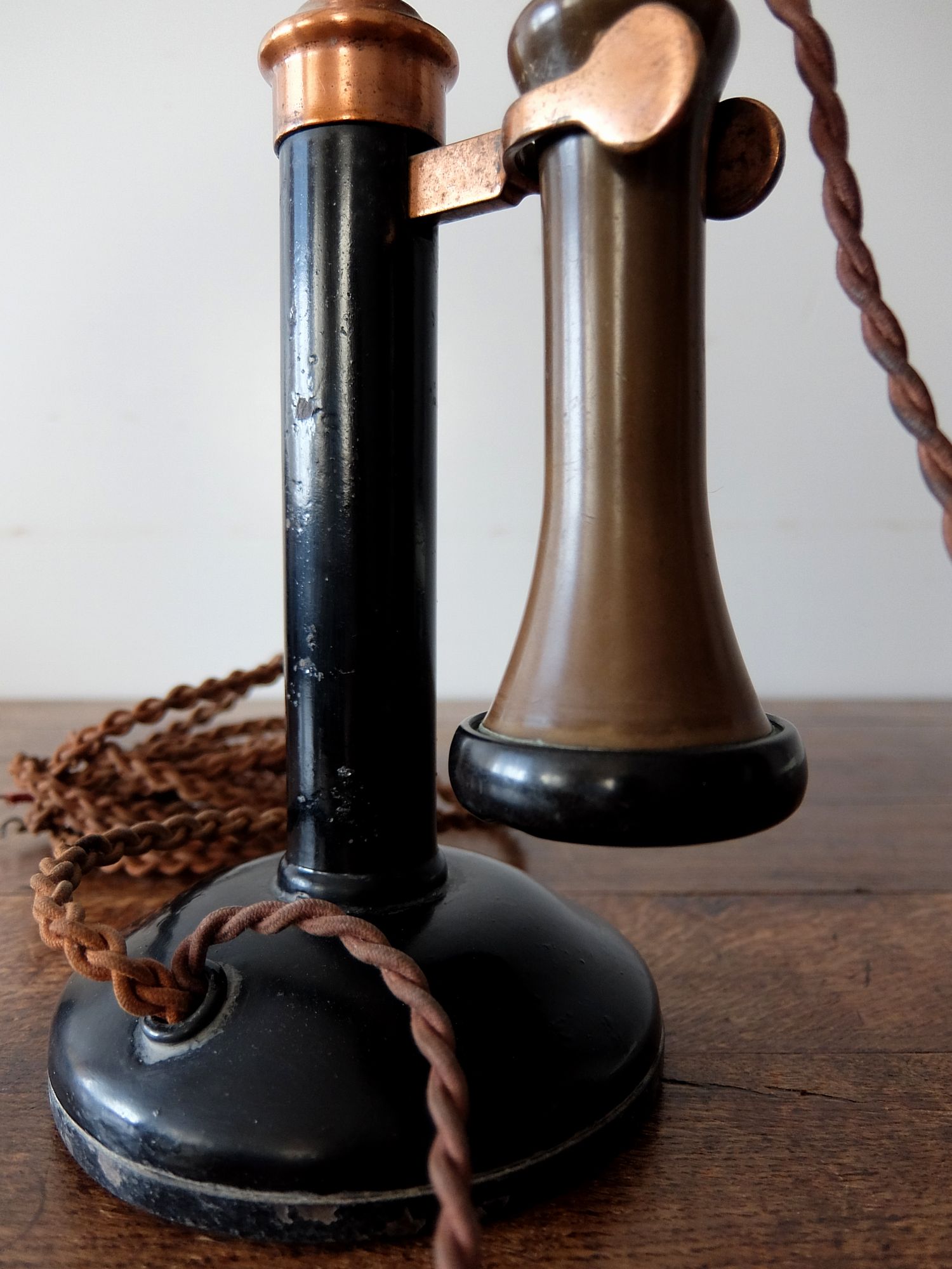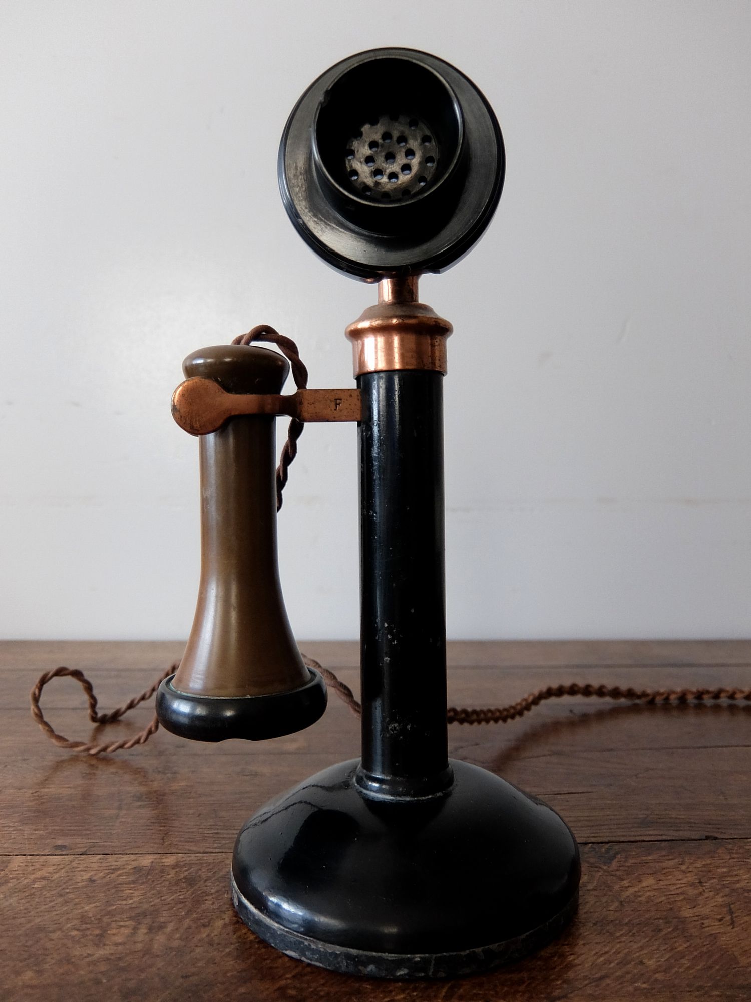 真鍮とベークライトで作られたキャンドルスティック型の電話機