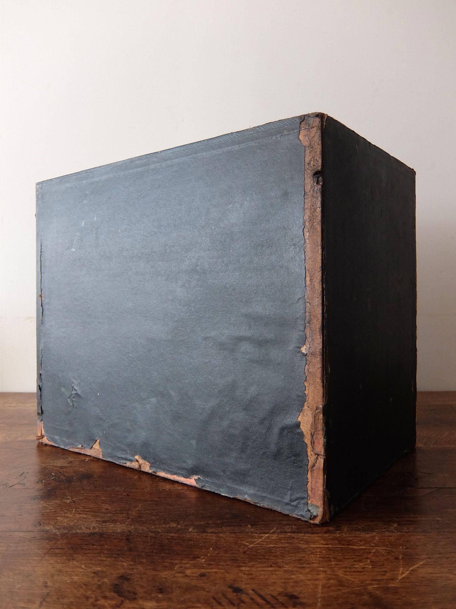 木製の土台に雰囲気のある紙を巻いて作られたファイルケース
