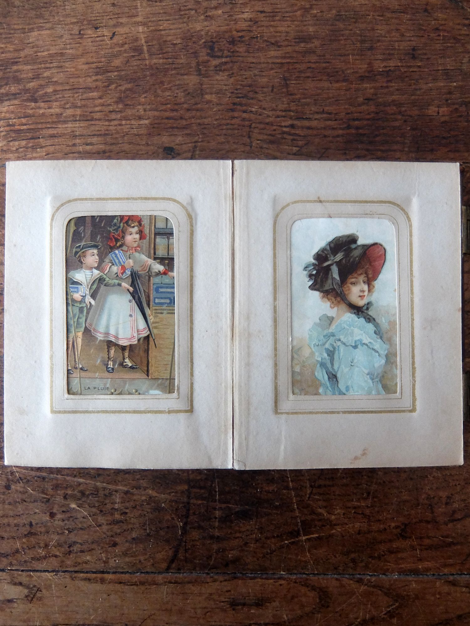 重厚な革製のアルバムに納められた可愛らしいカードのコレクション(50枚封入)