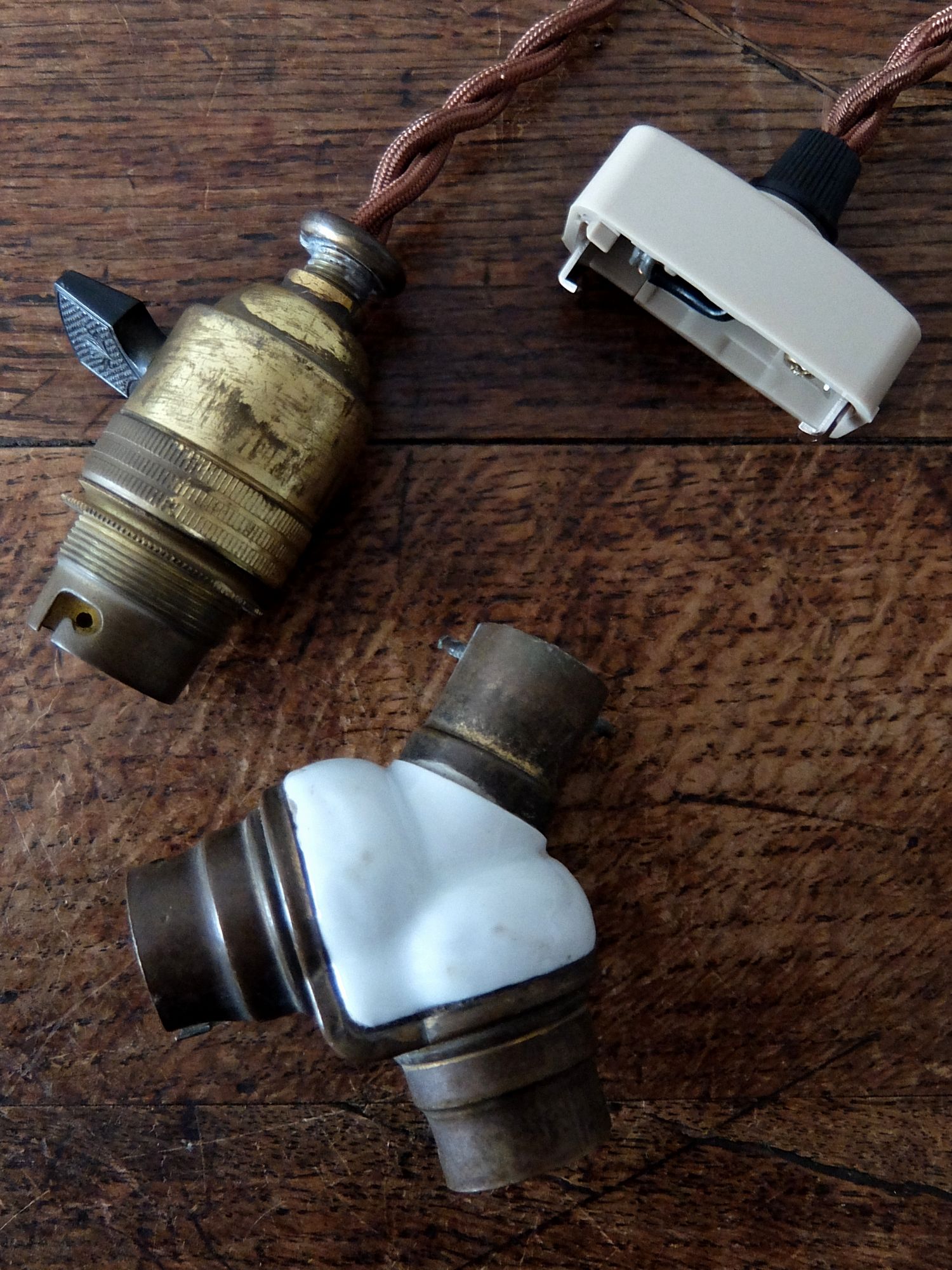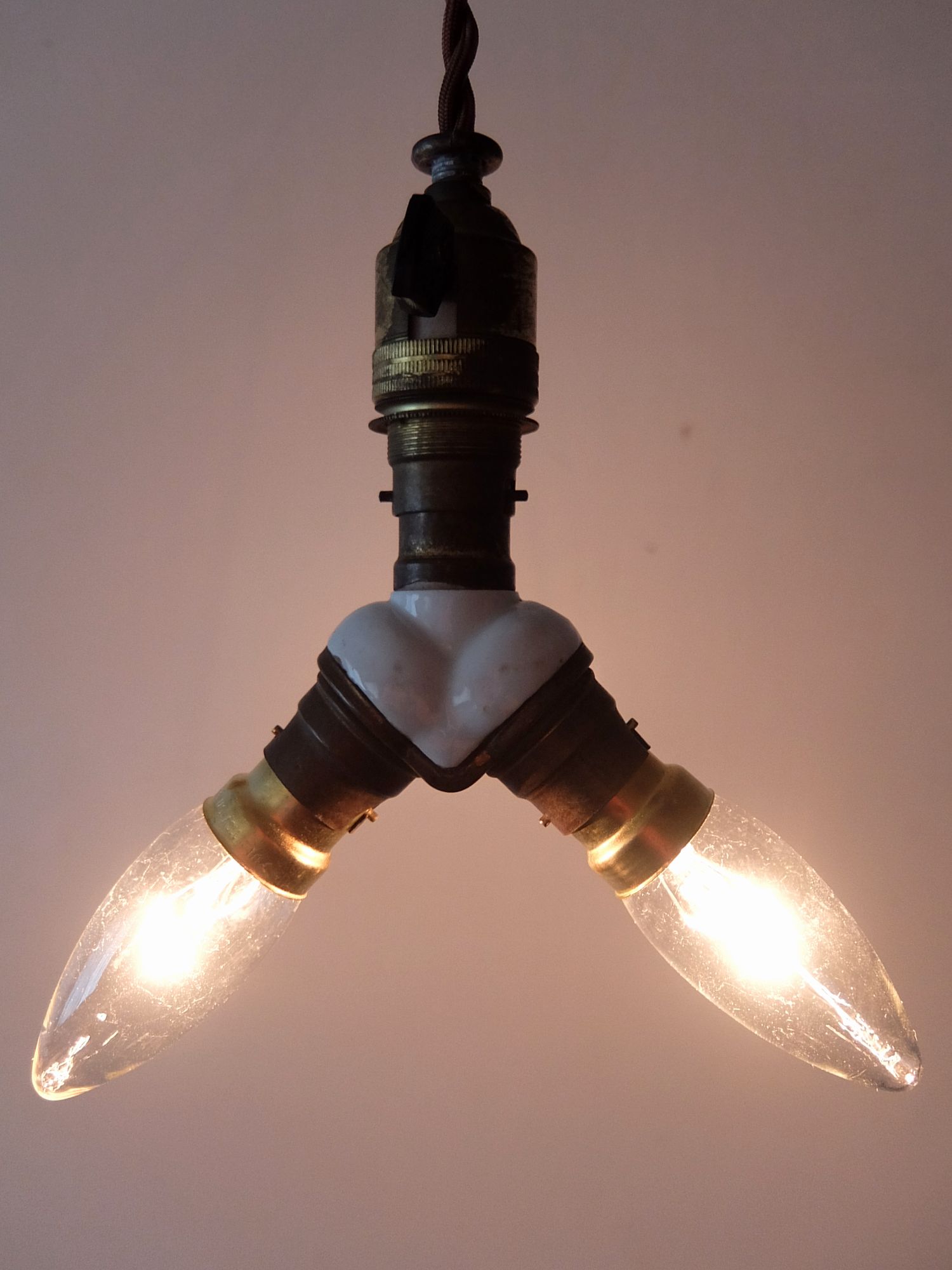 B22口径のスイッチ付きソケットと2灯に分岐するアダプタ