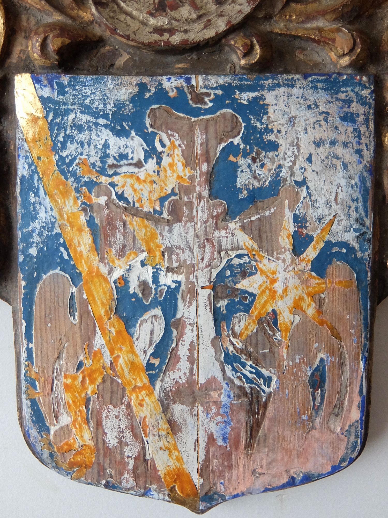 朽ちた塗装が美しいフランスの城に飾られていた紋章