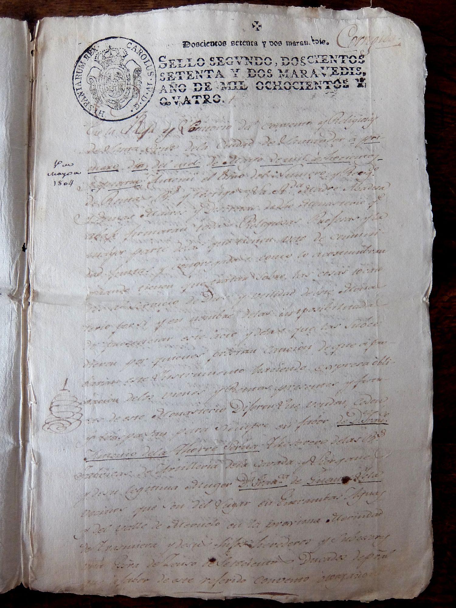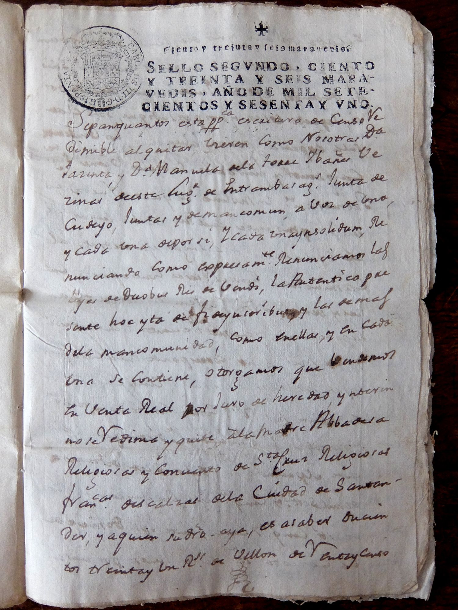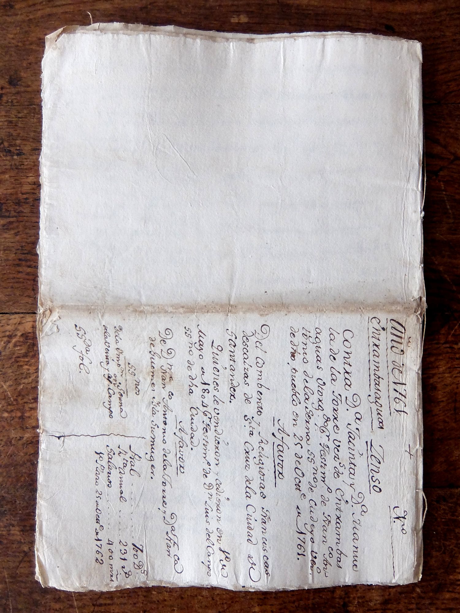 スペイン・ブルボン朝カルロスⅢ世治世時(1759~1788年)とカルロスⅣ世治世時(1788~1808年)に記された手書きの書物(古紙11枚)