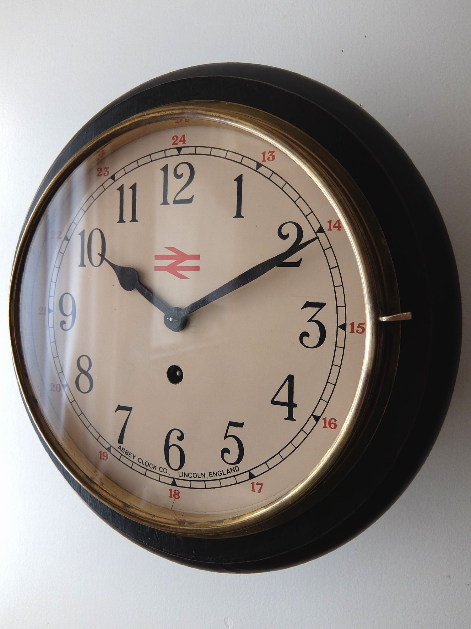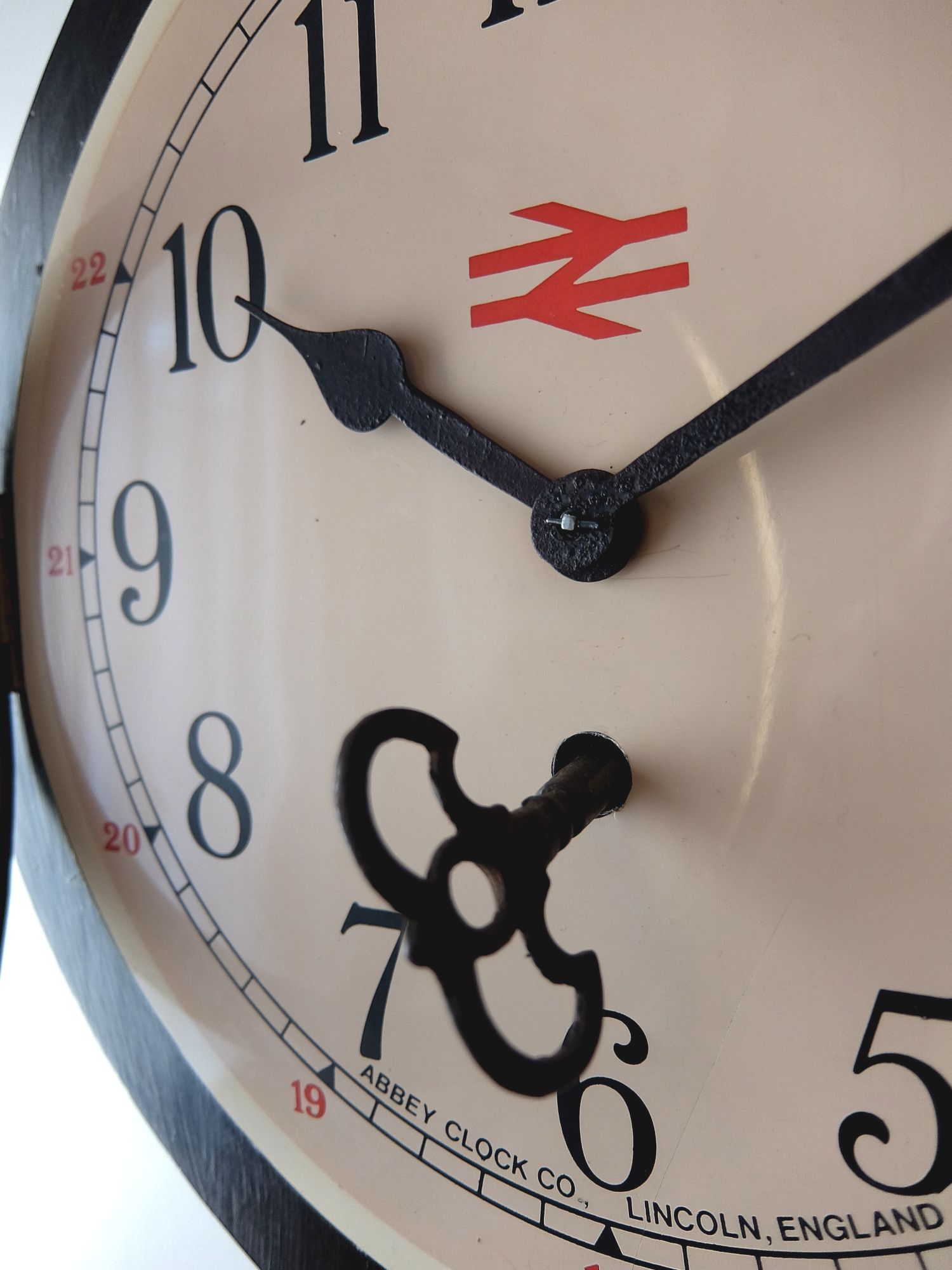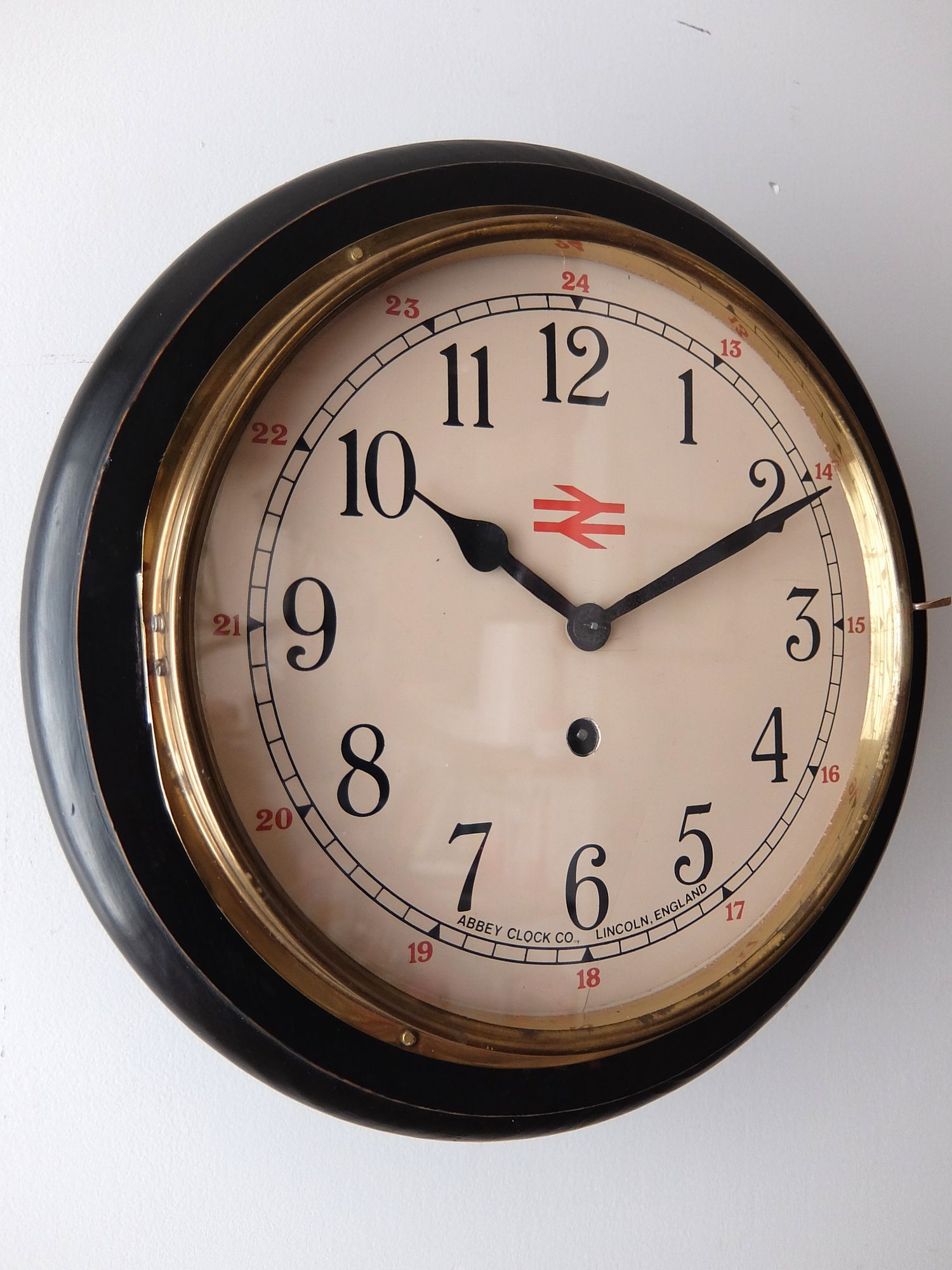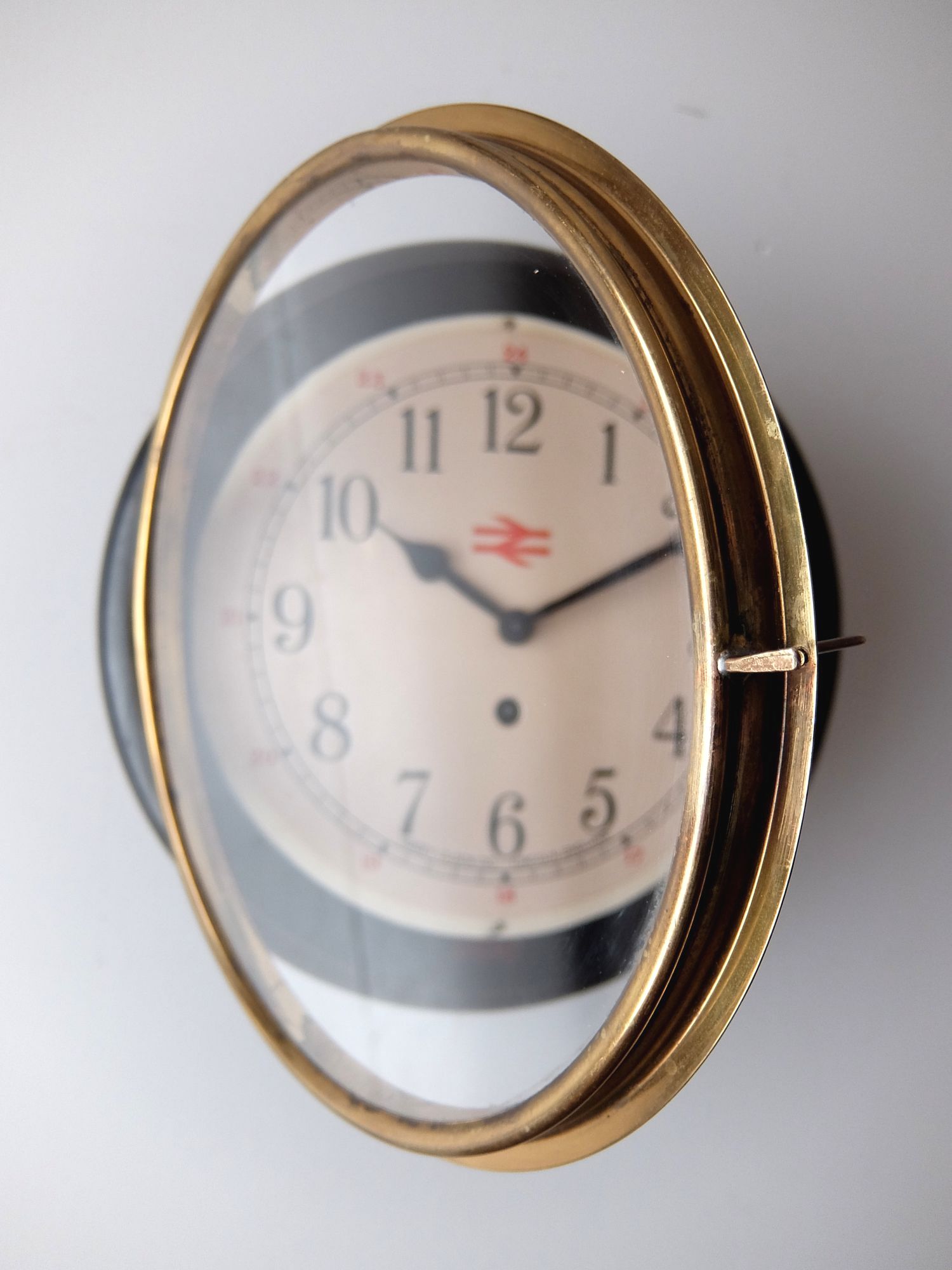 イギリス国鉄(British Rail)の駅長室で使用されていたロゴマーク(ダブルアロー)入りの振り子時計(8日巻き)