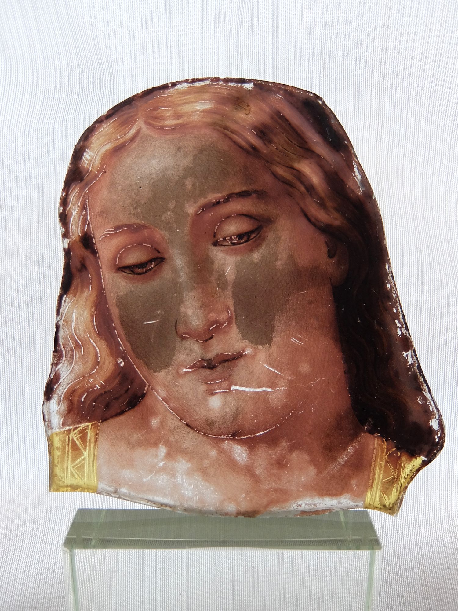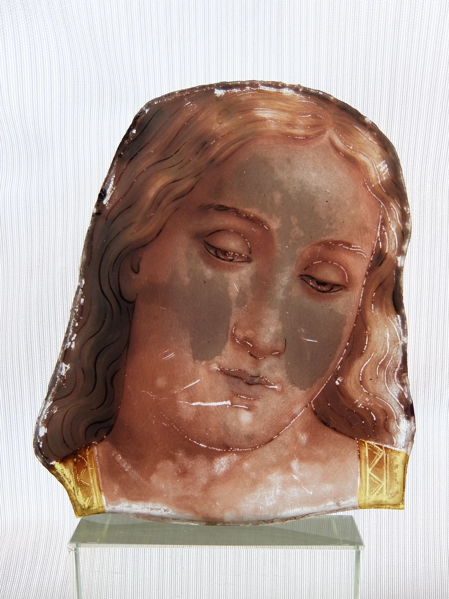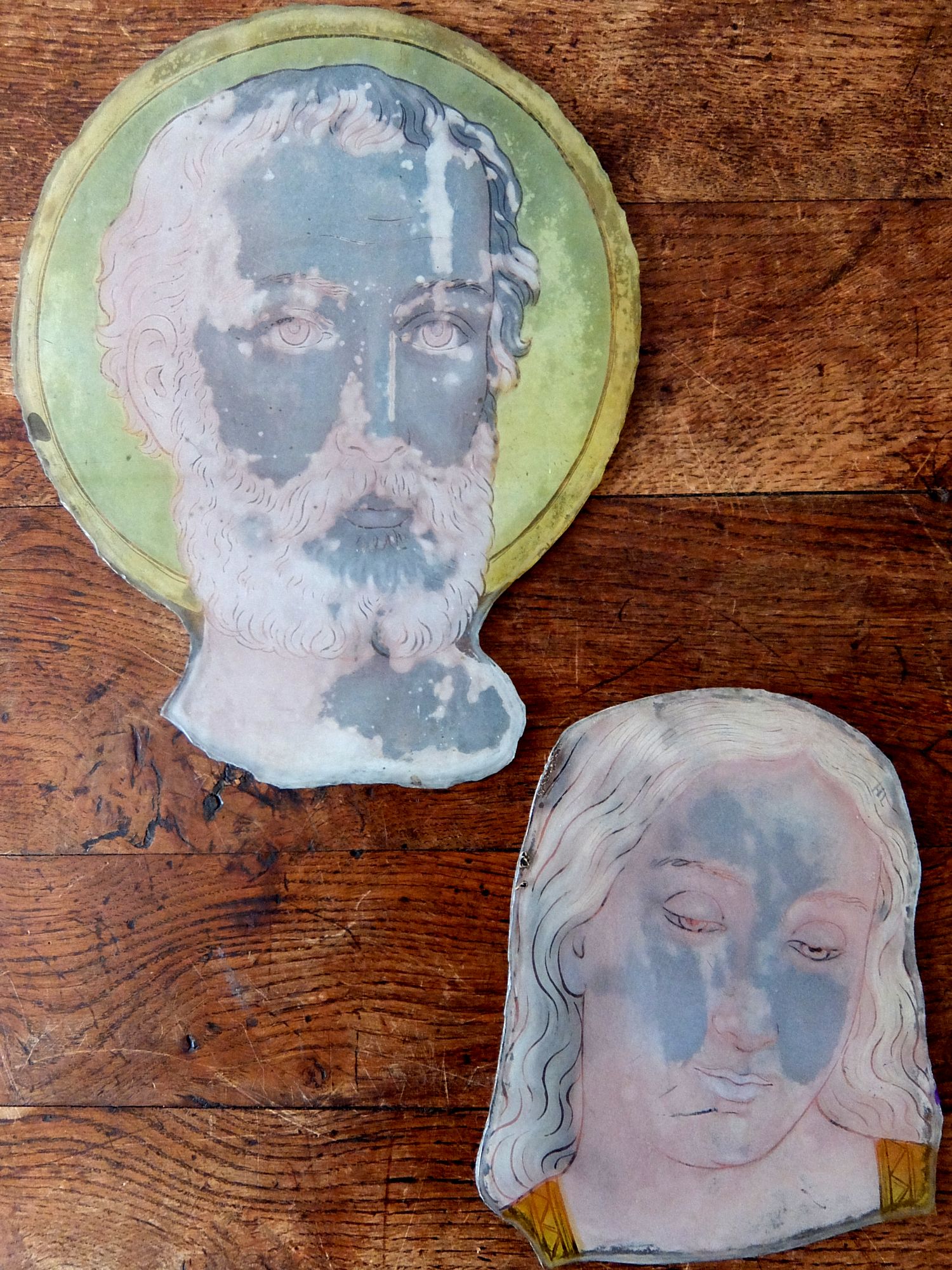 教会で使用されていた美しい手彩色のステンドグラス(聖ヨゼフと聖母マリア)