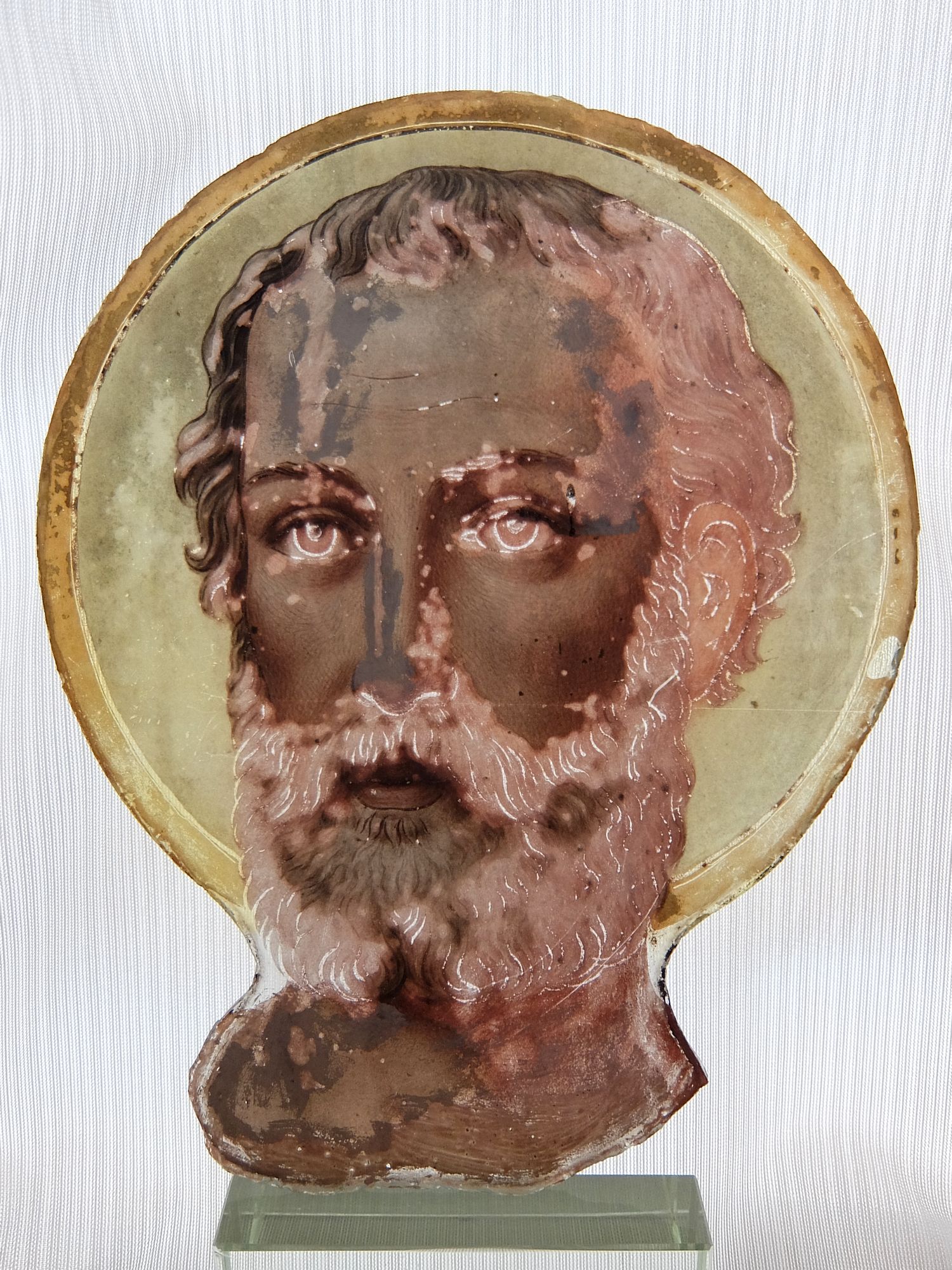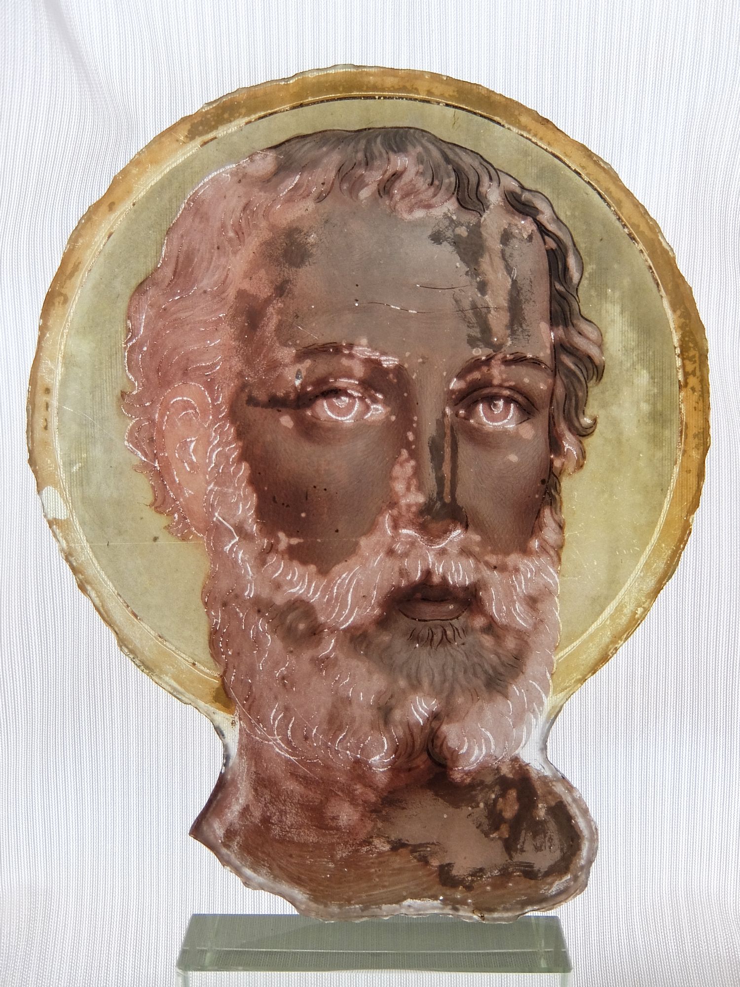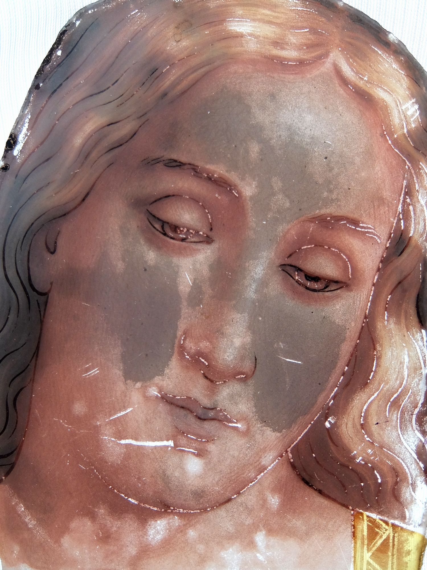 教会で使用されていた美しい手彩色のステンドグラス(聖ヨゼフと聖母マリア)