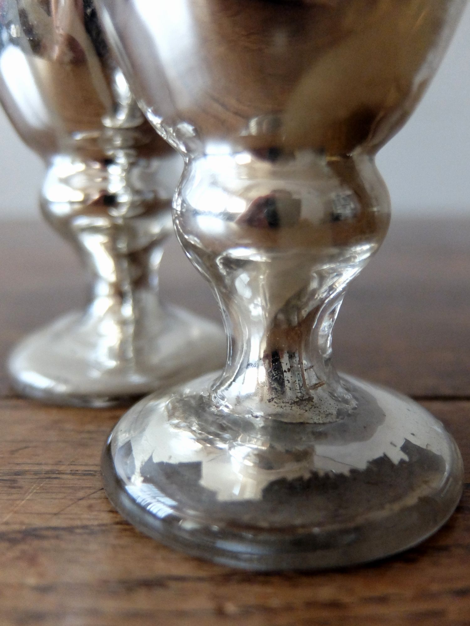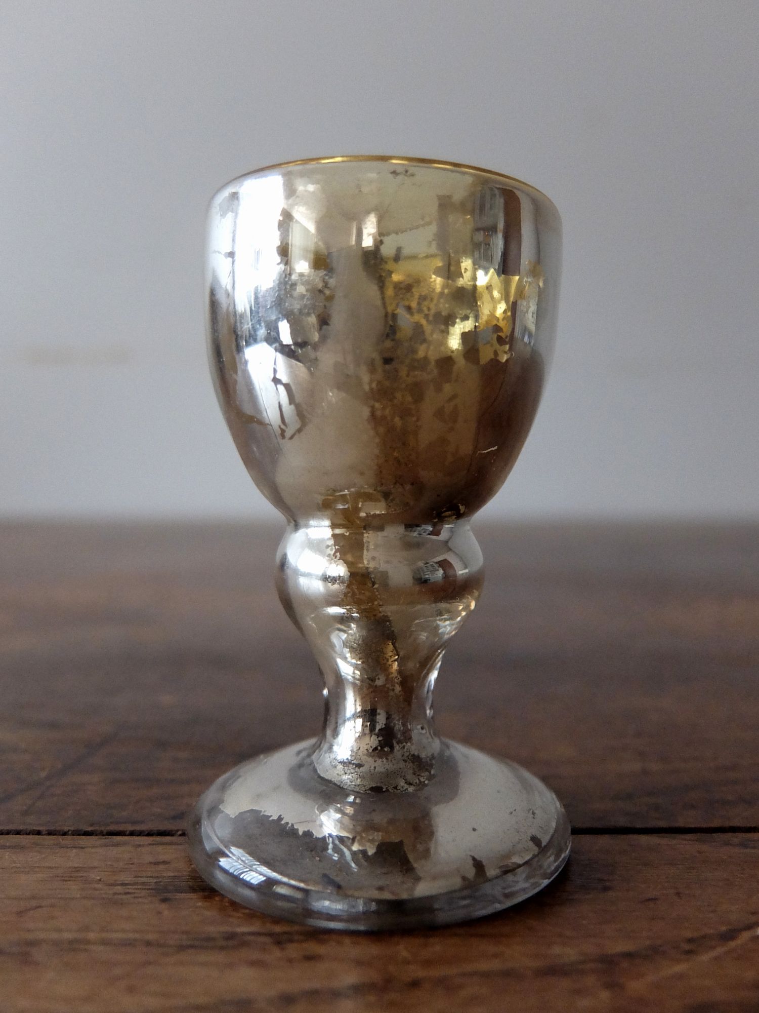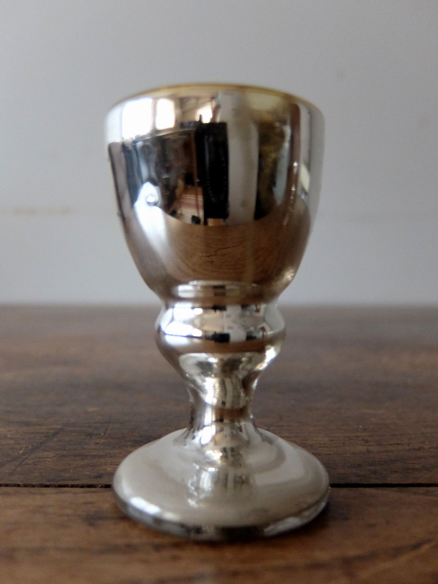 ガラスの内側に水銀を施した中空のゴブレット/エッグスタンド
