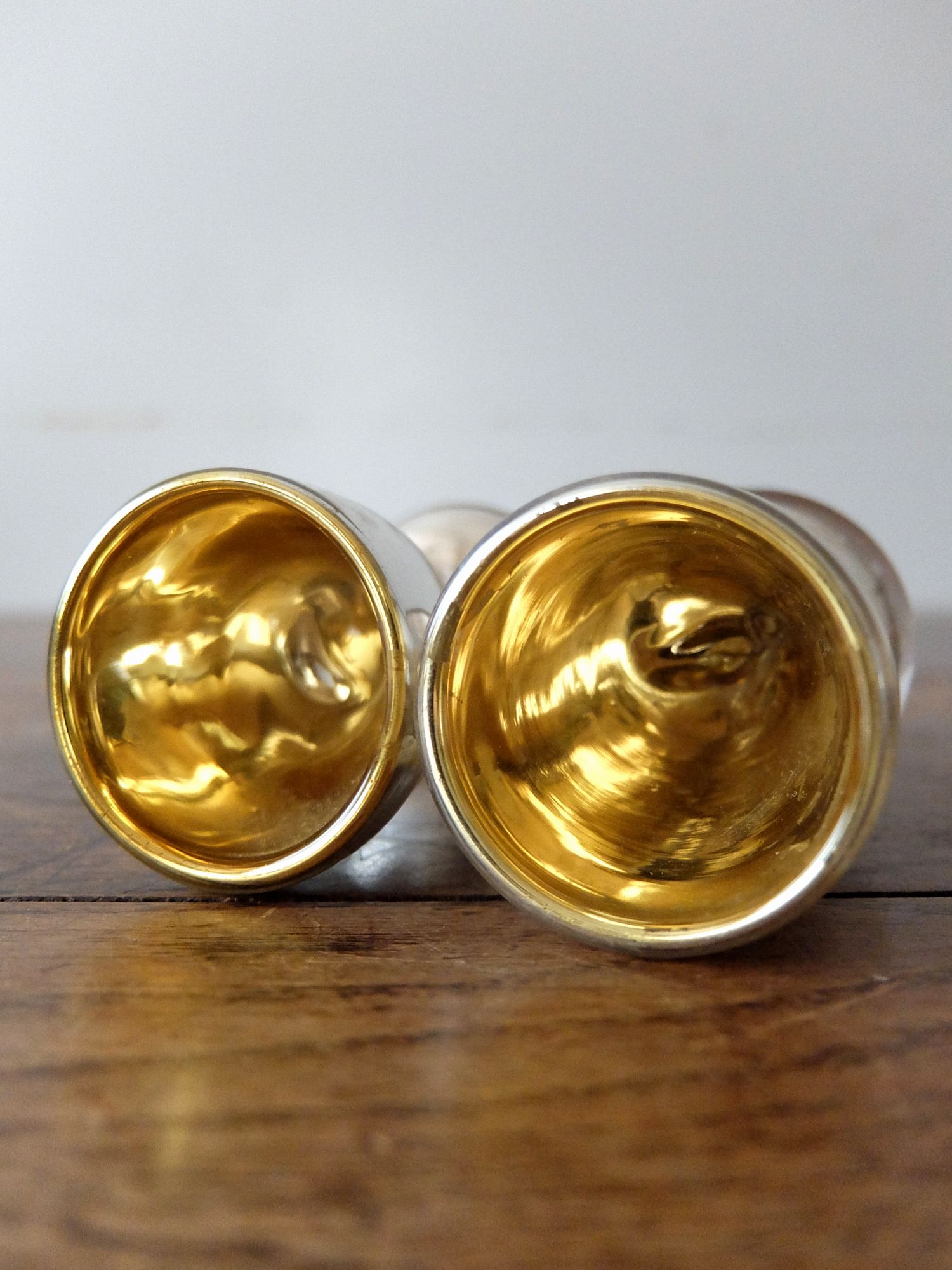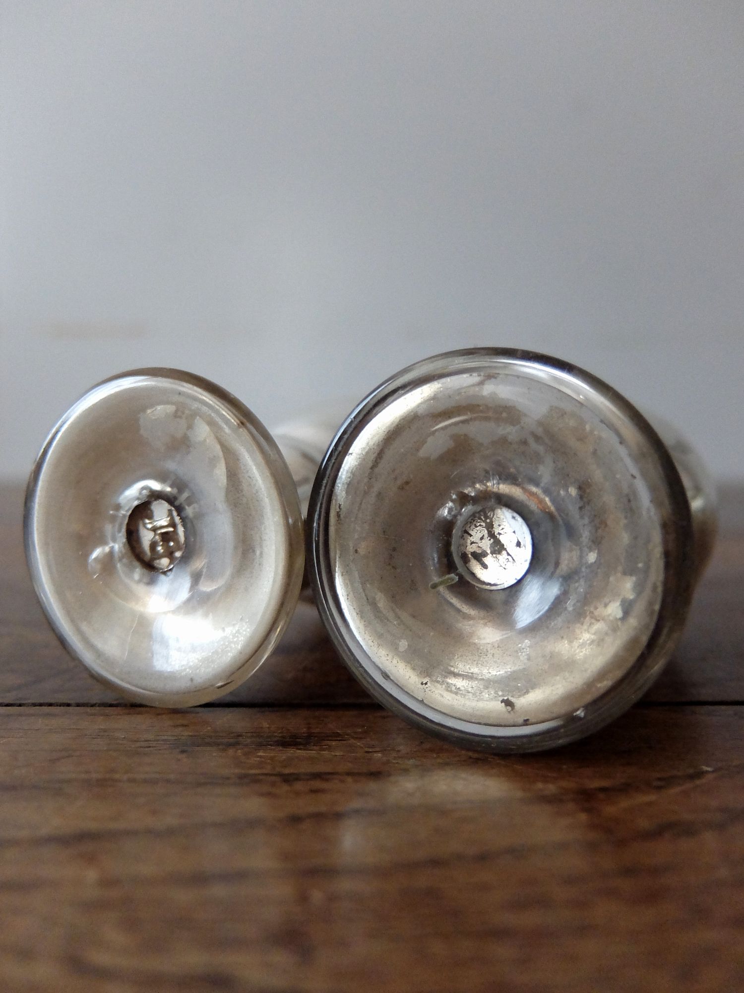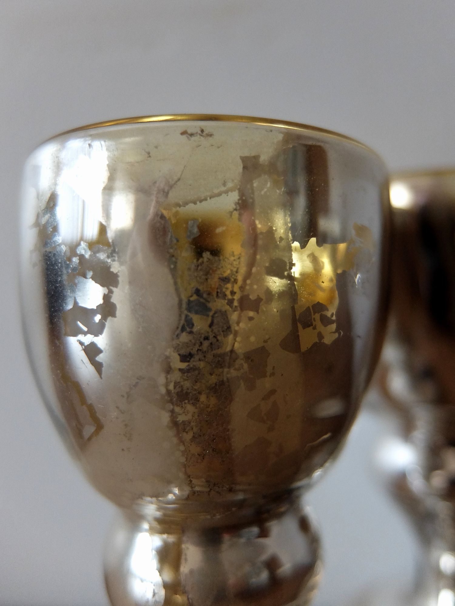 ガラスの内側に水銀を施した中空のゴブレット/エッグスタンド