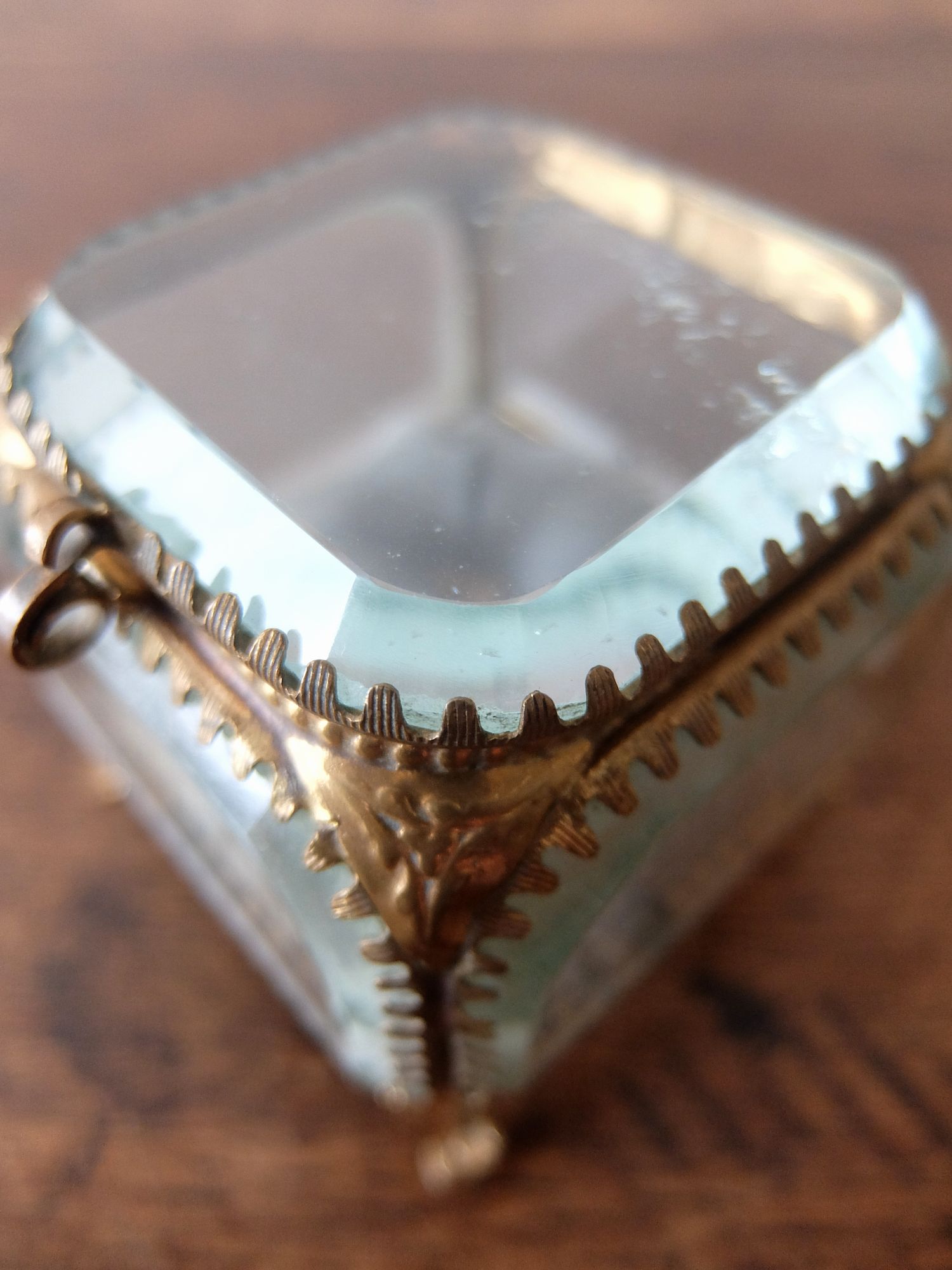 厚手のカットガラスと繊細な真鍮で作られた宝石箱