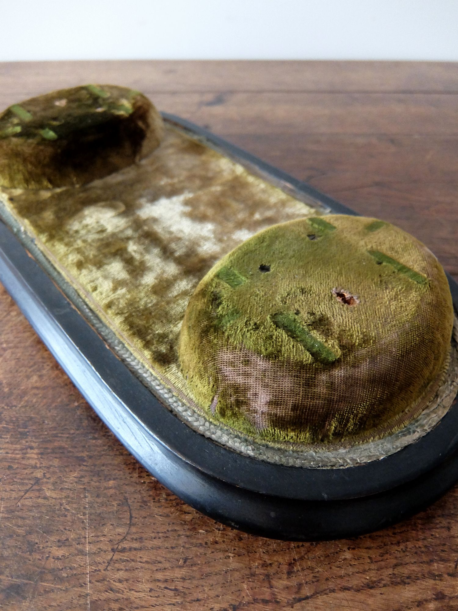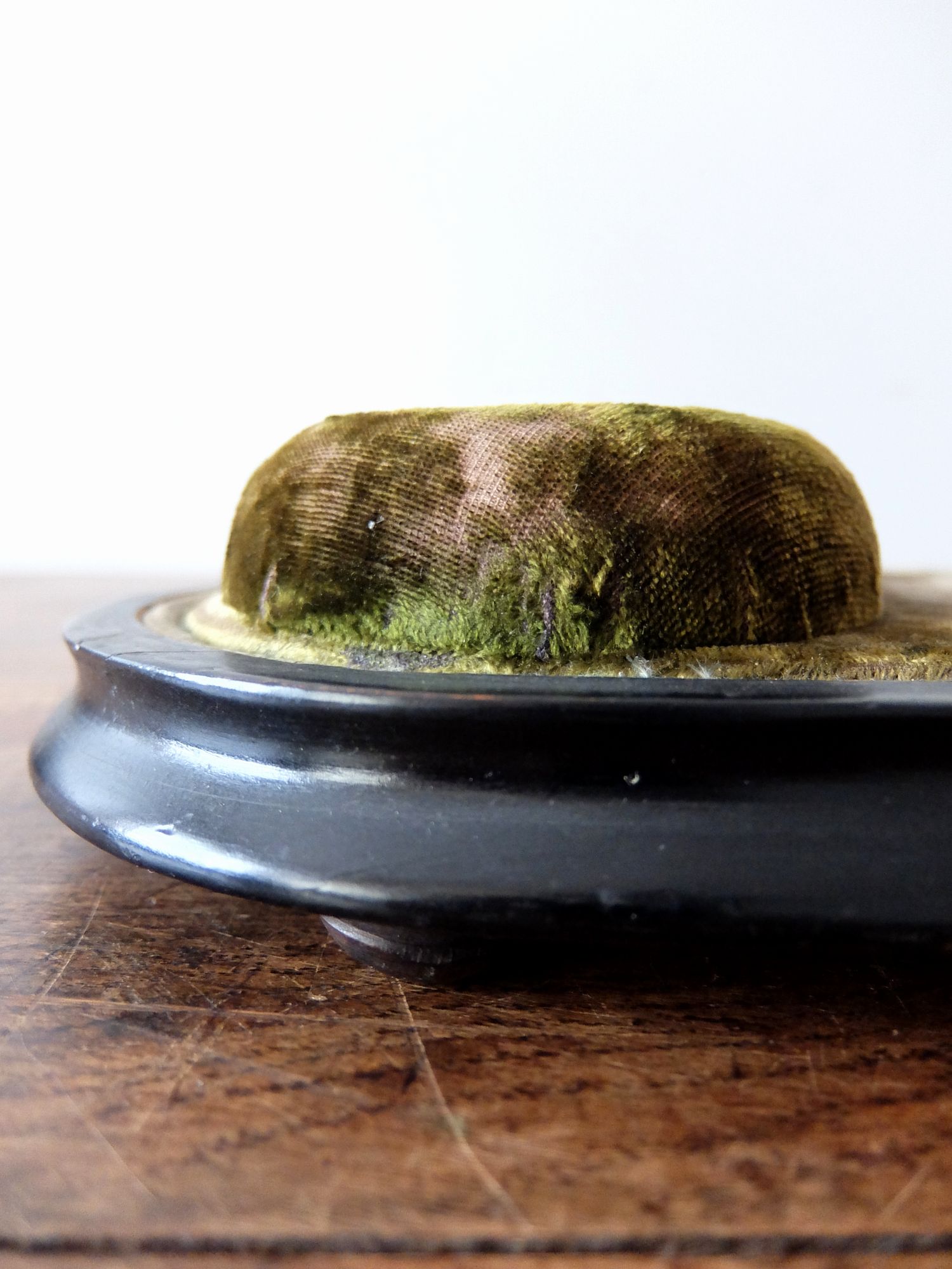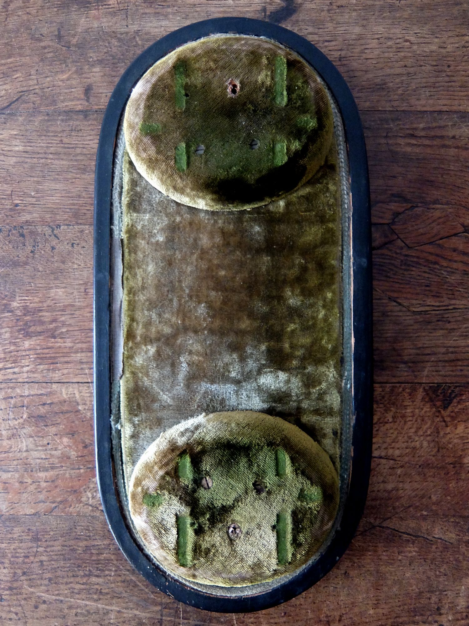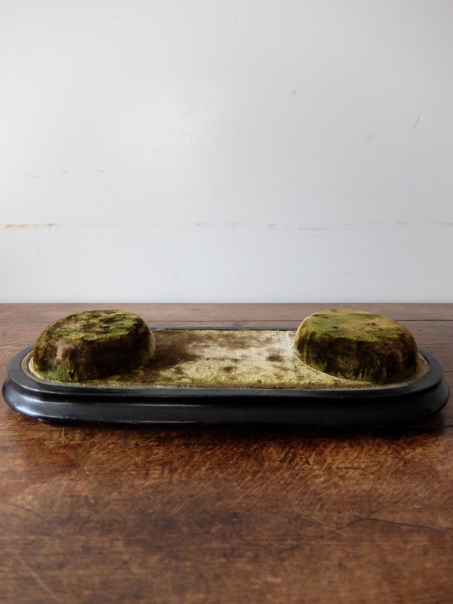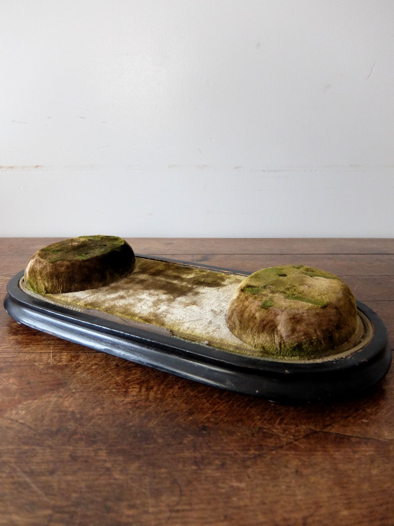 色褪せた生地が魅力的な置時計が設置されていたガラスドームの土台