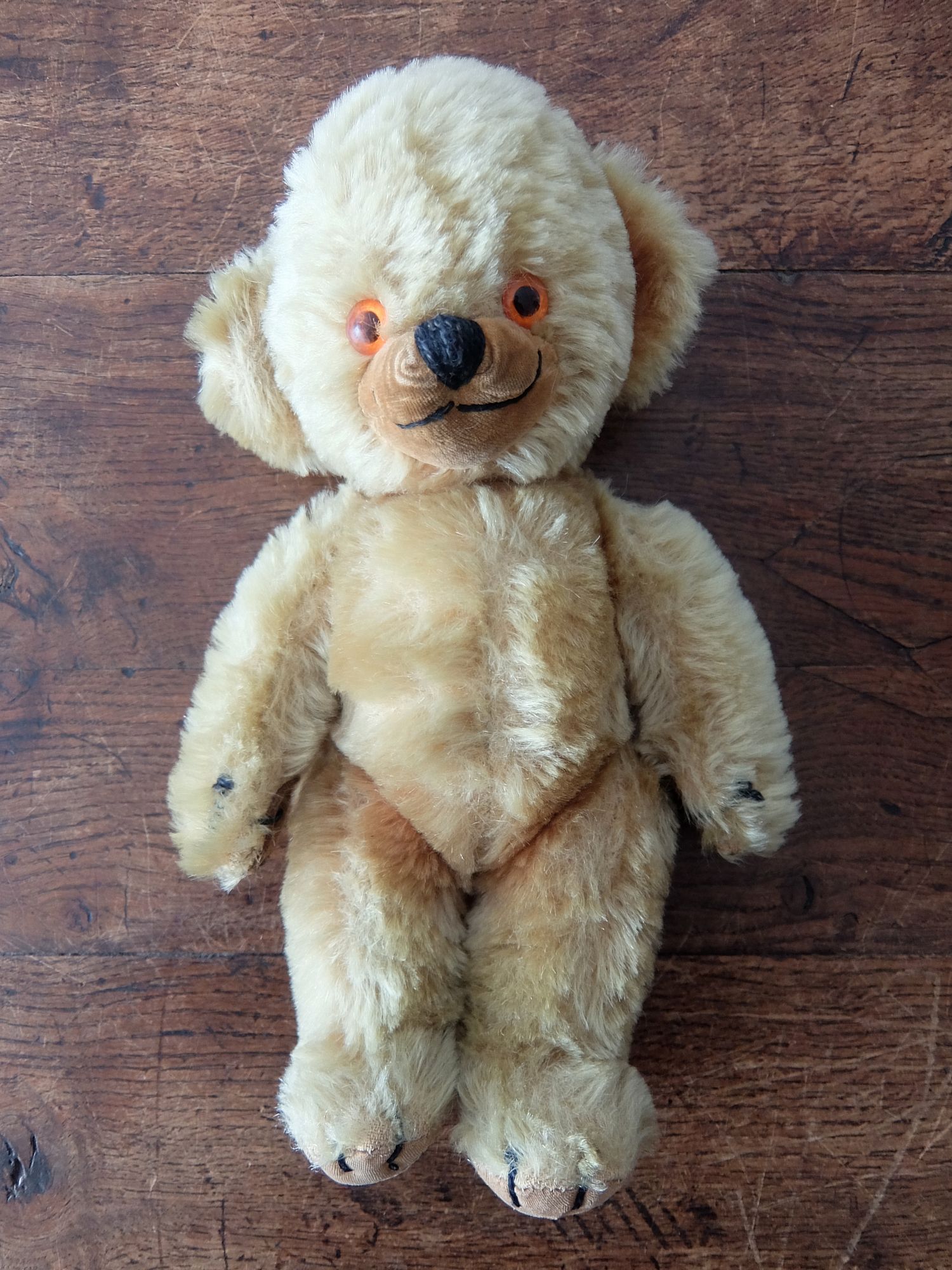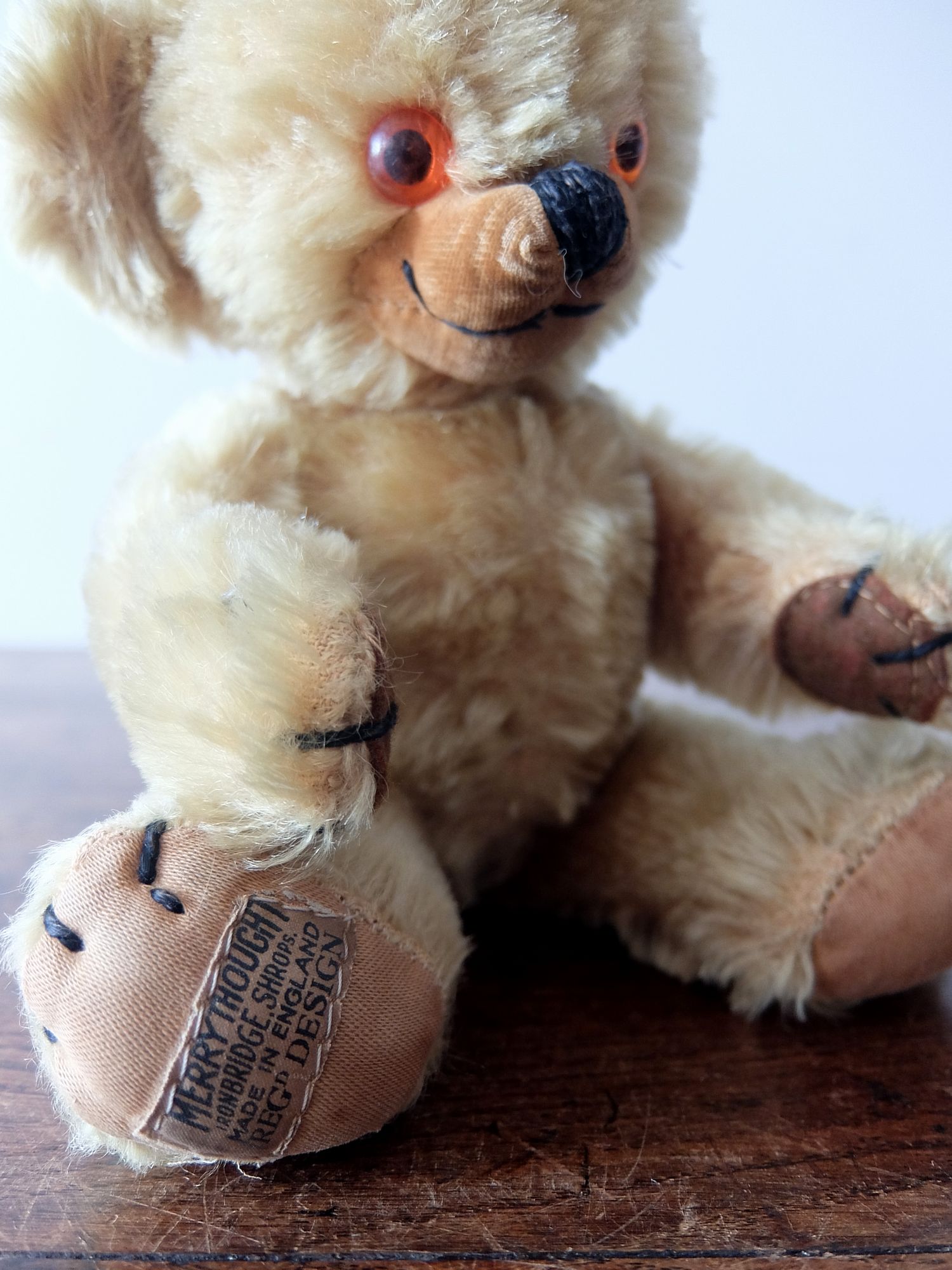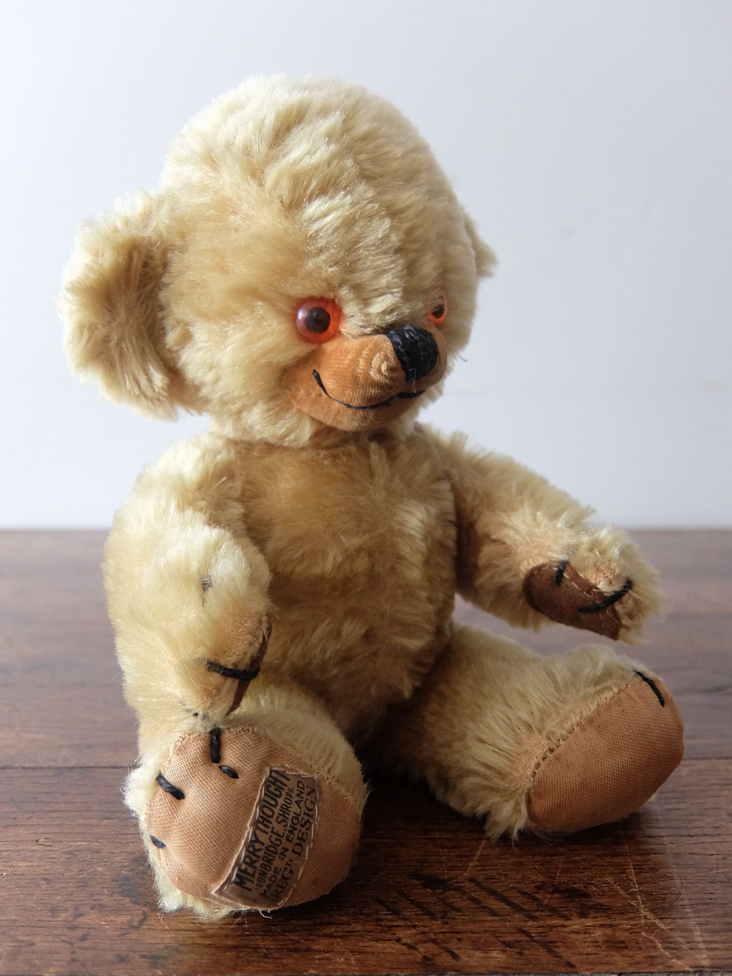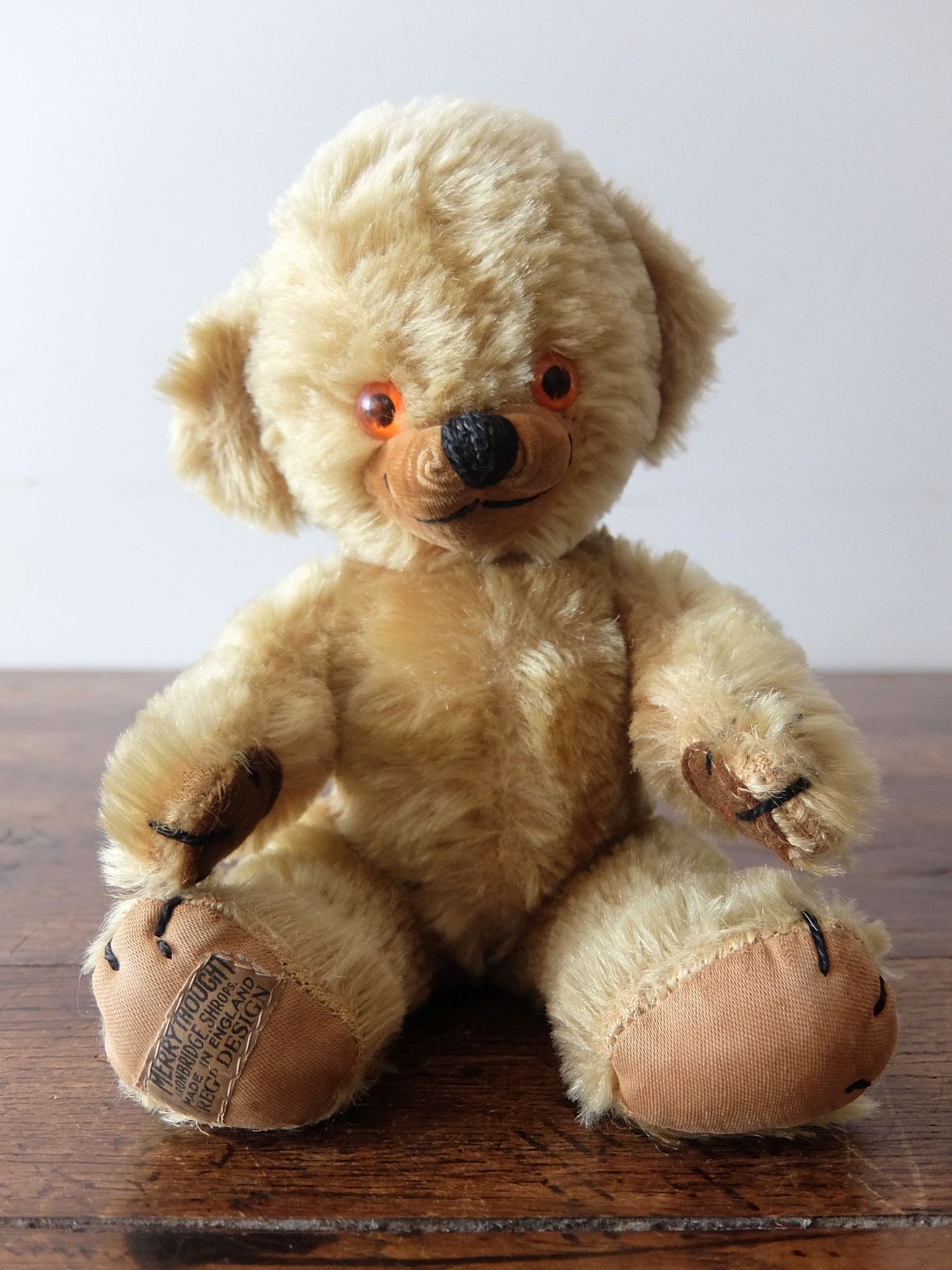耳に入った鈴が可愛らしいパンヤの詰まった【MERRYTHOUGHT】社製の【Cheeky】チーキーベア