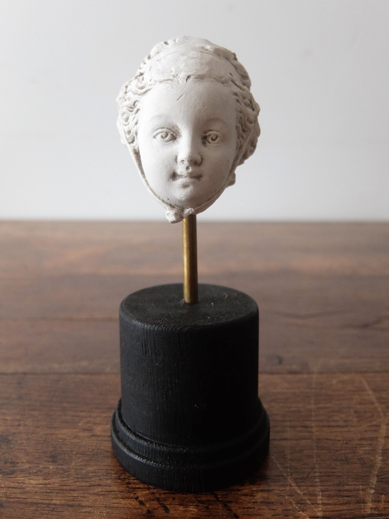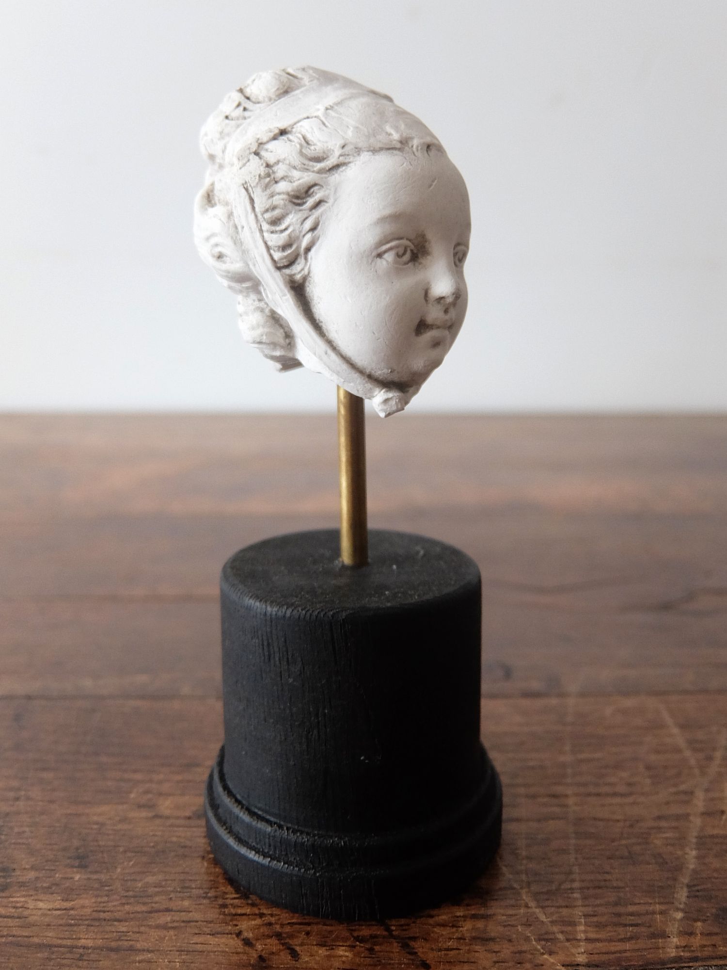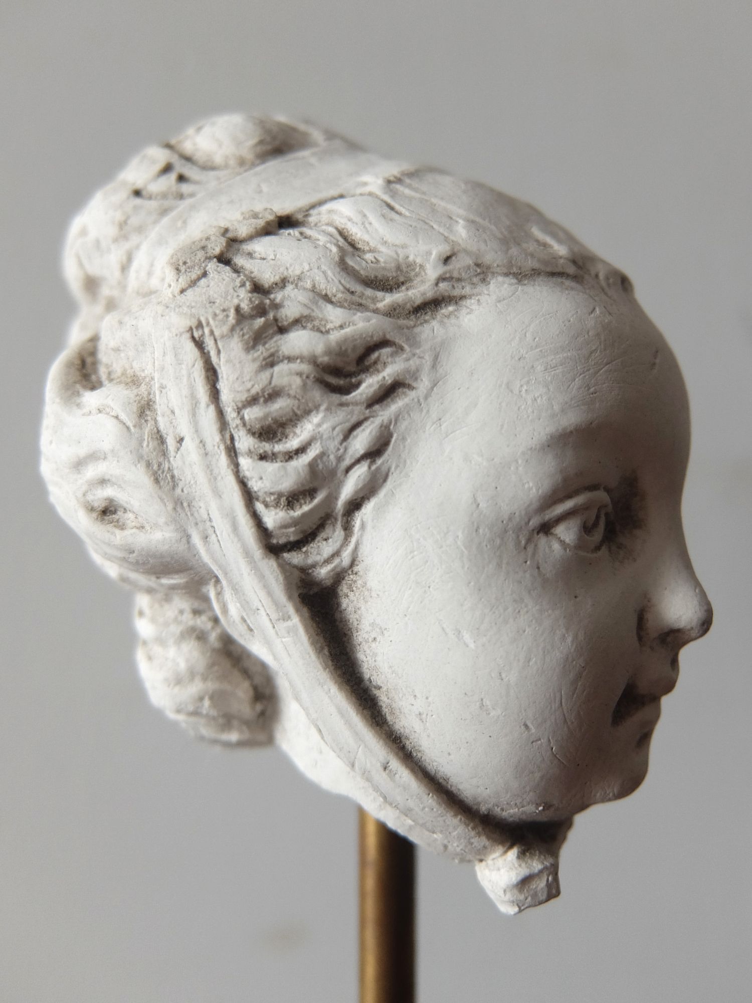 19世紀に石膏で製作された巻紙を結い上げた貴婦人の頭部 (スタンド付)