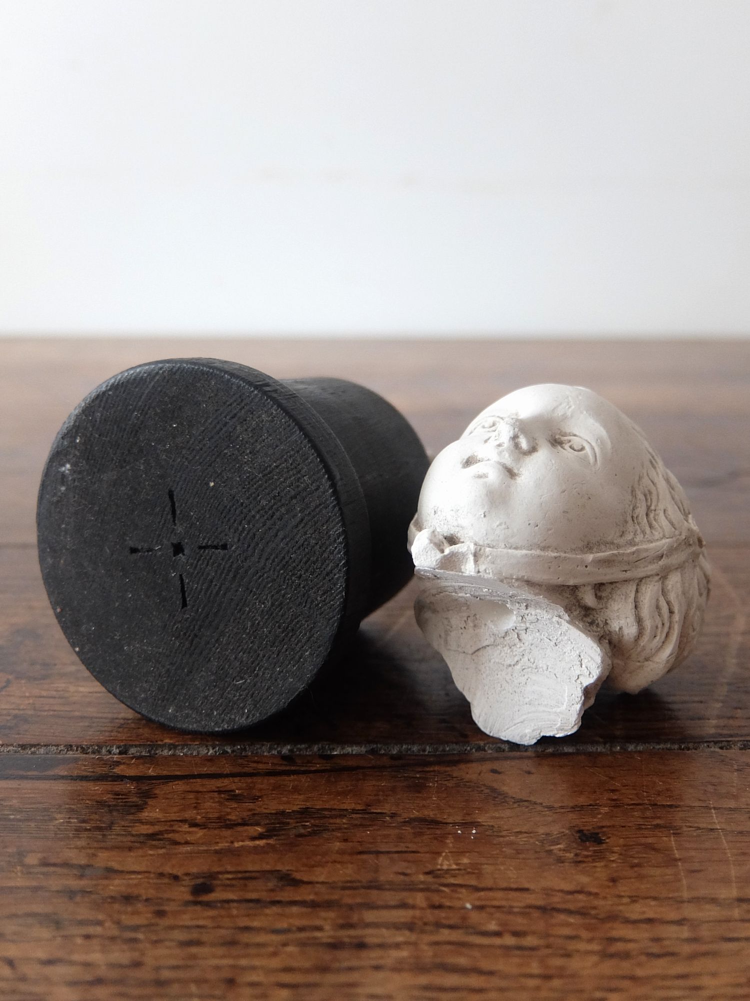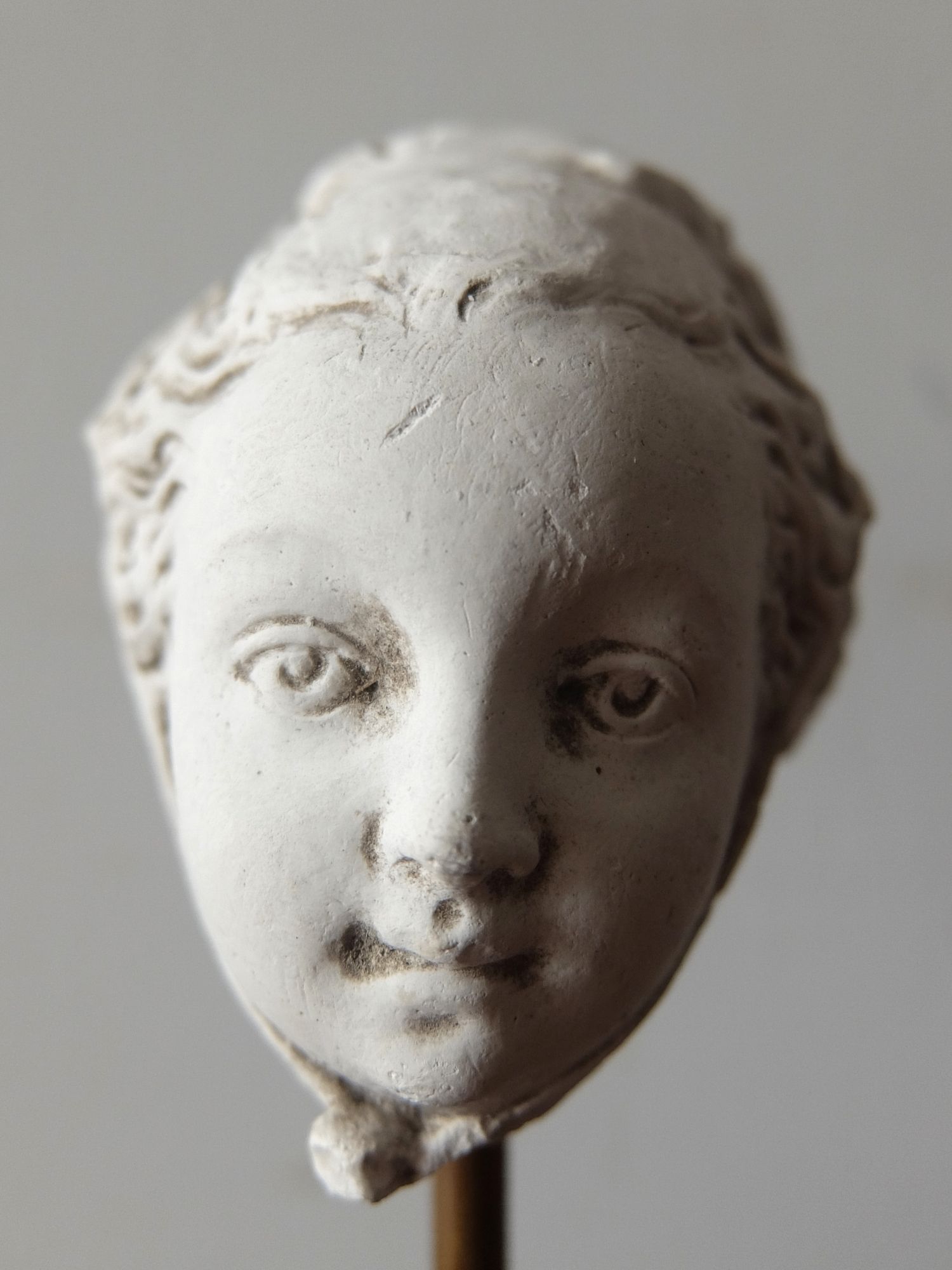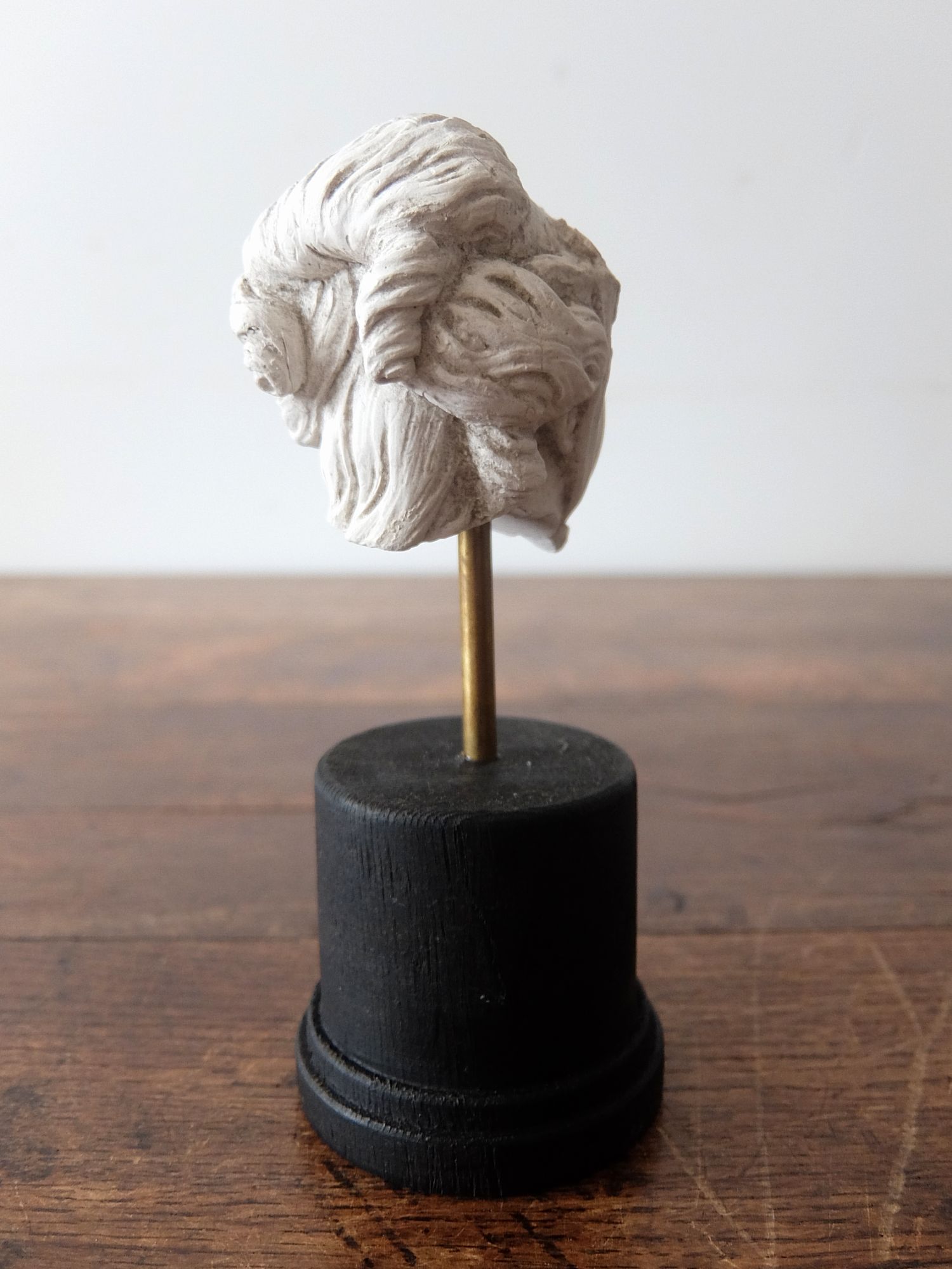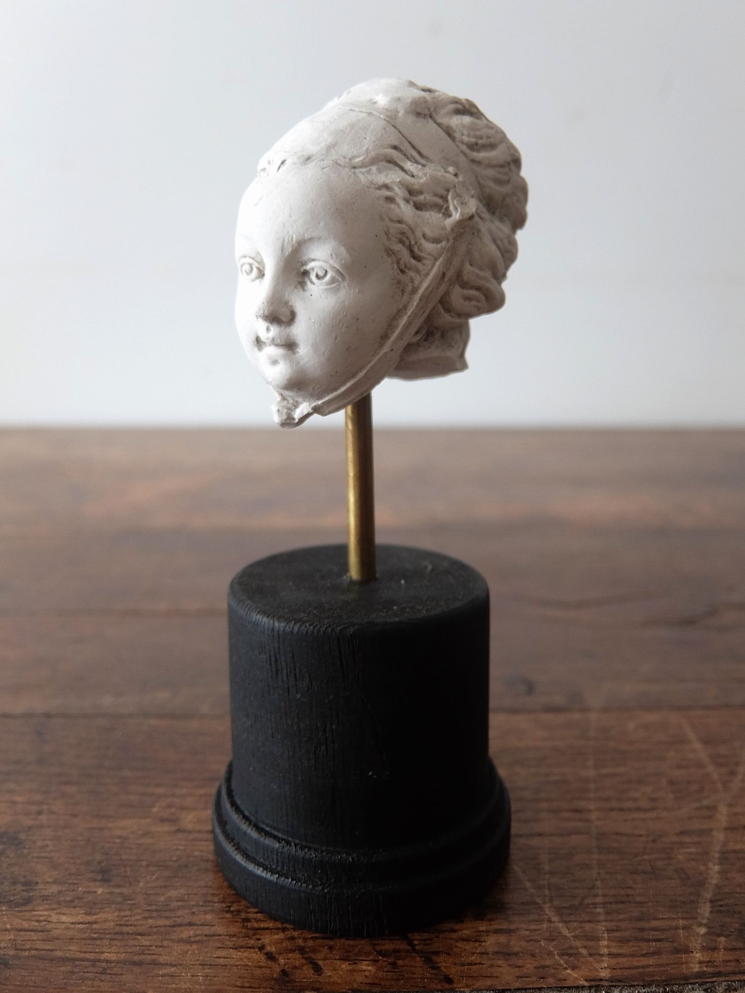 19世紀に石膏で製作された巻紙を結い上げた貴婦人の頭部 (スタンド付)