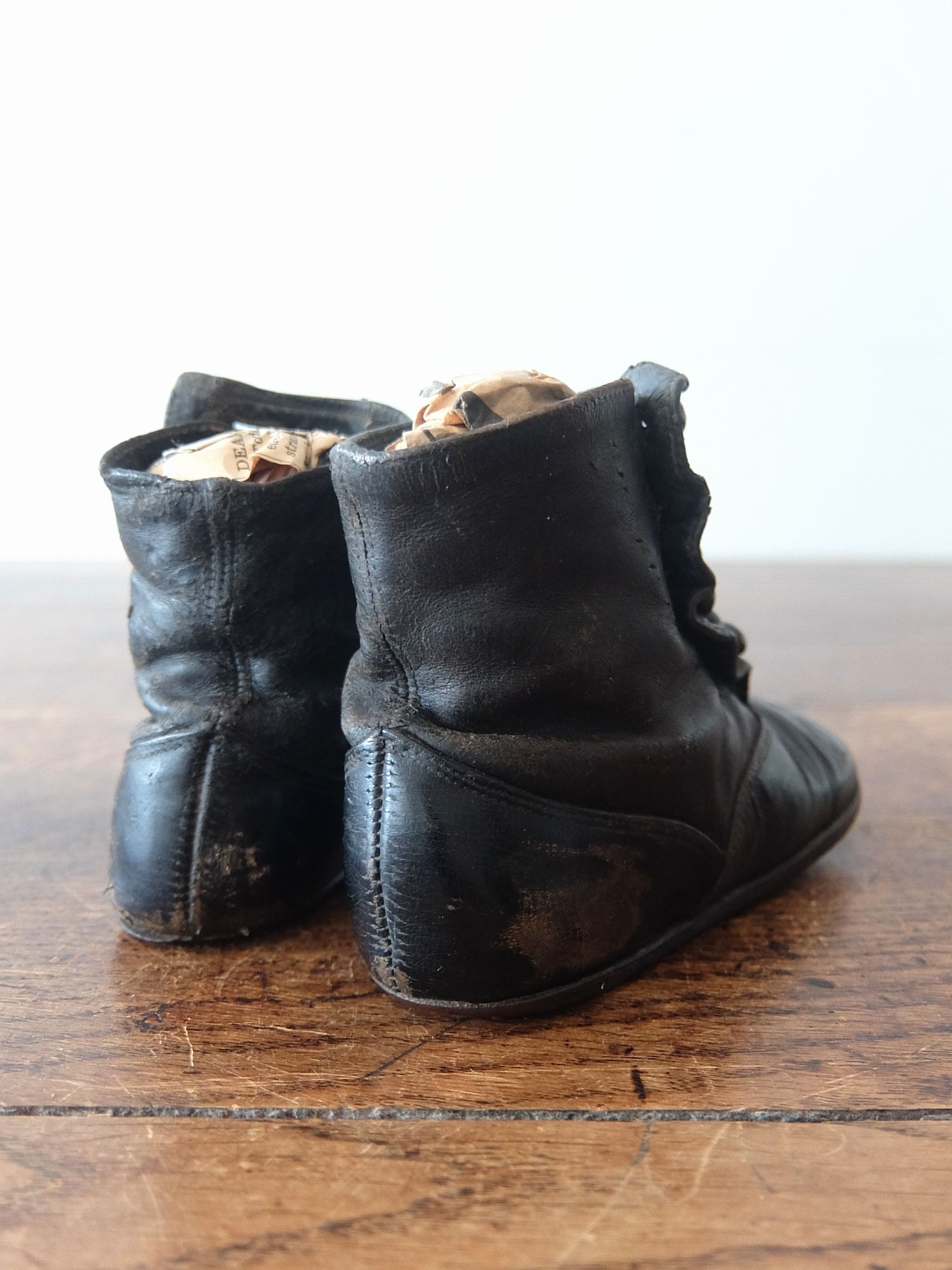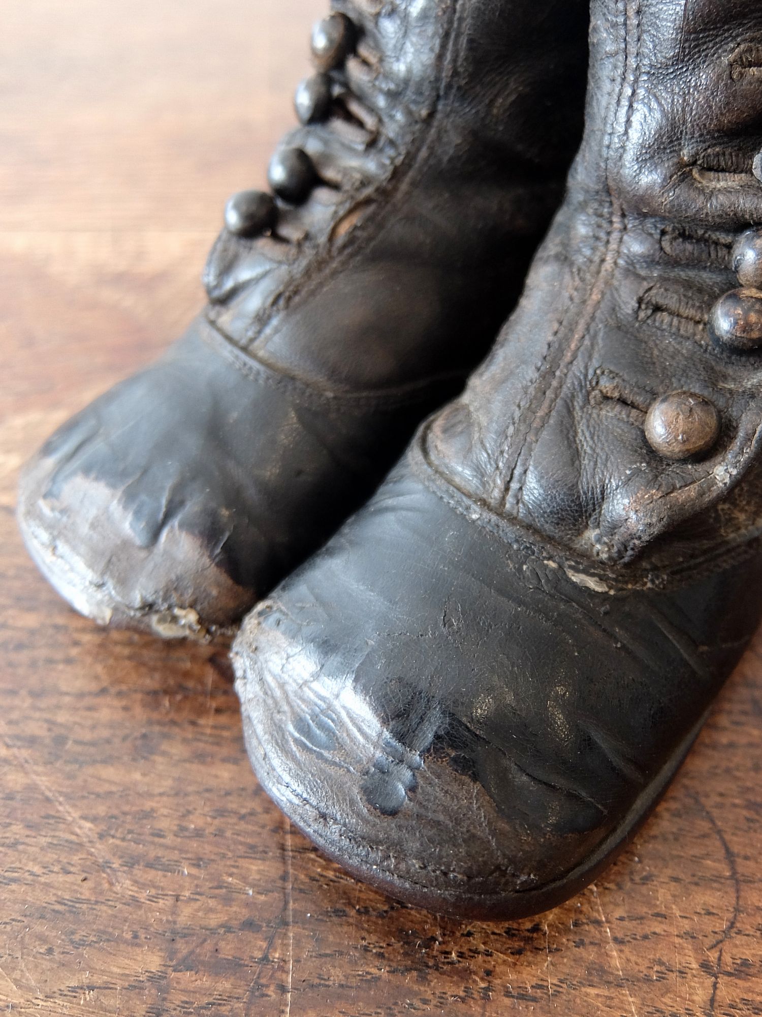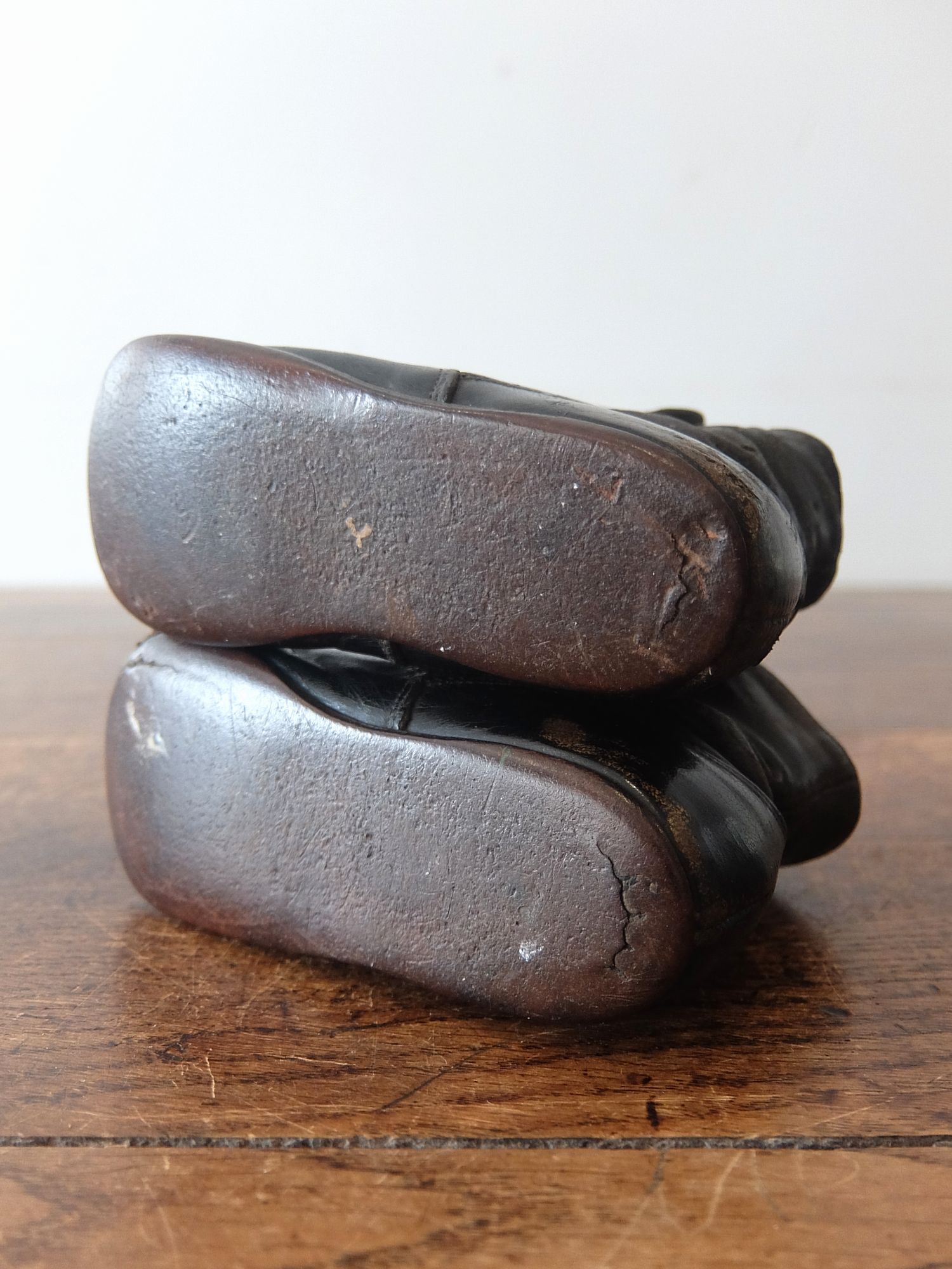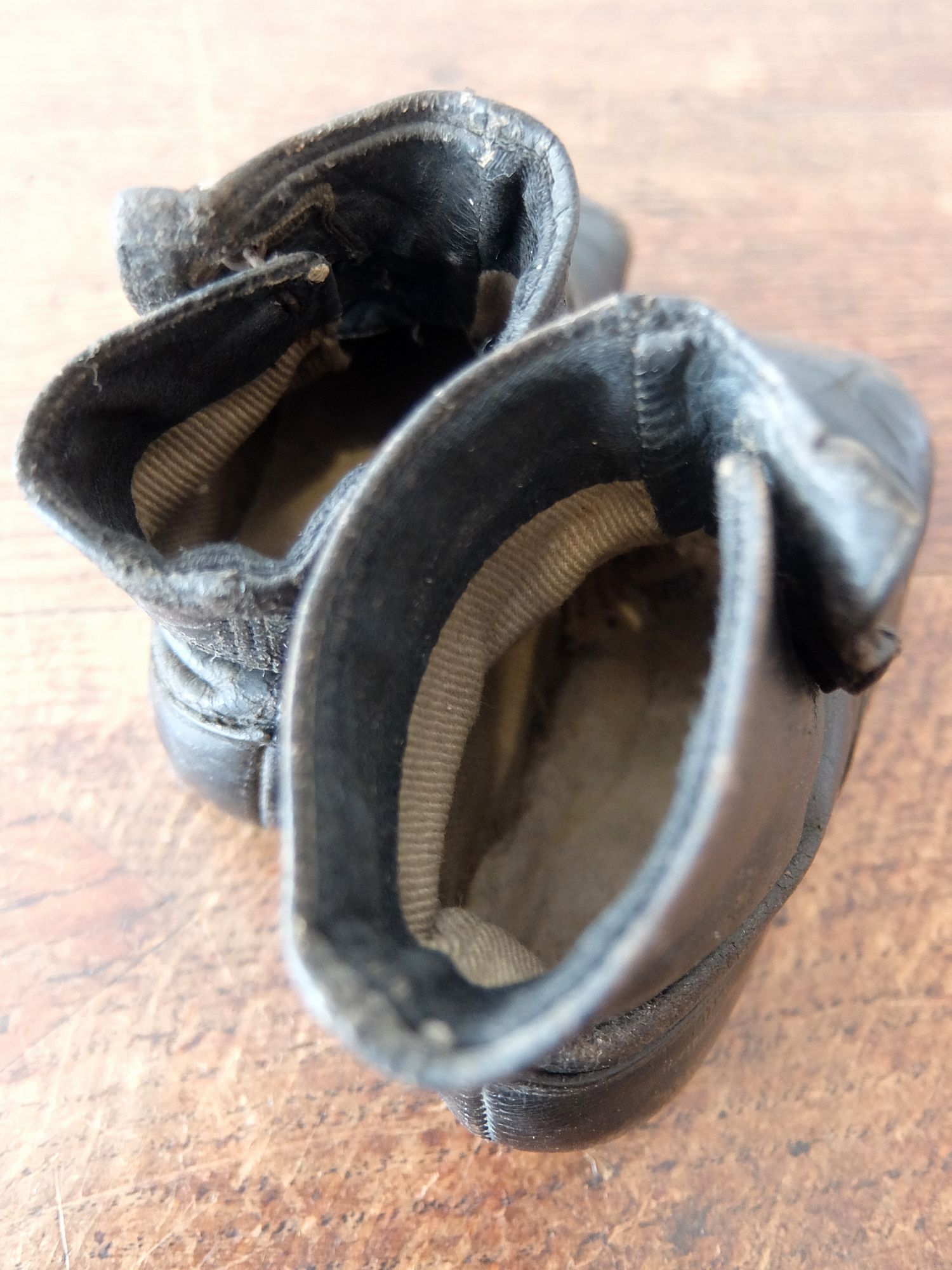 使い込まれた革の雰囲気が魅力的な子供用/人形用のヴィクトリアンベビーシューズ