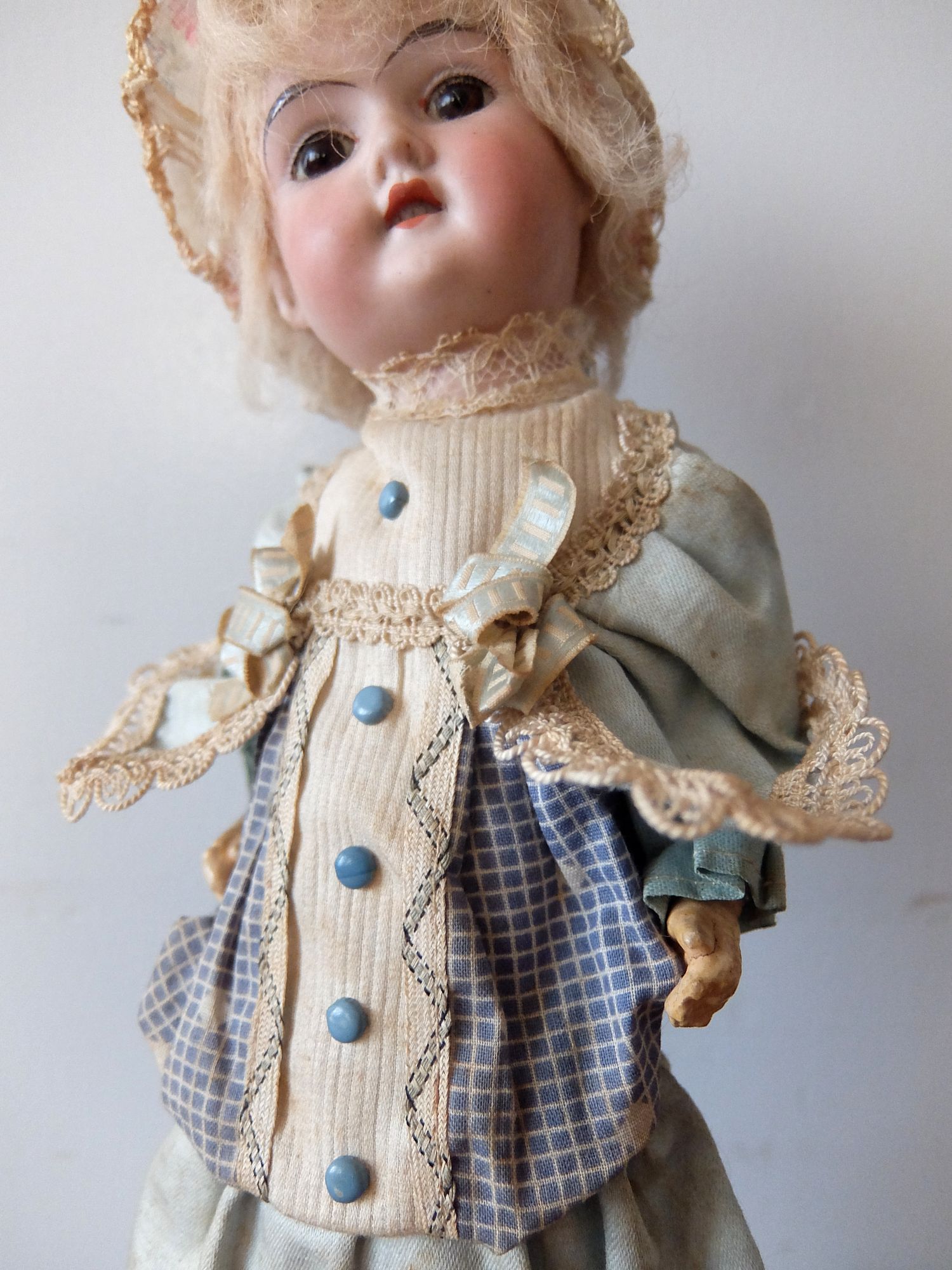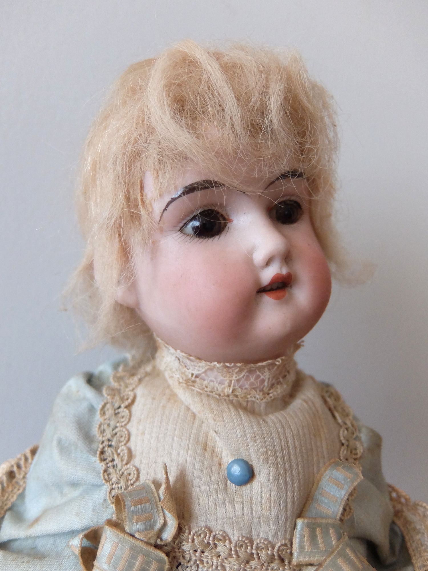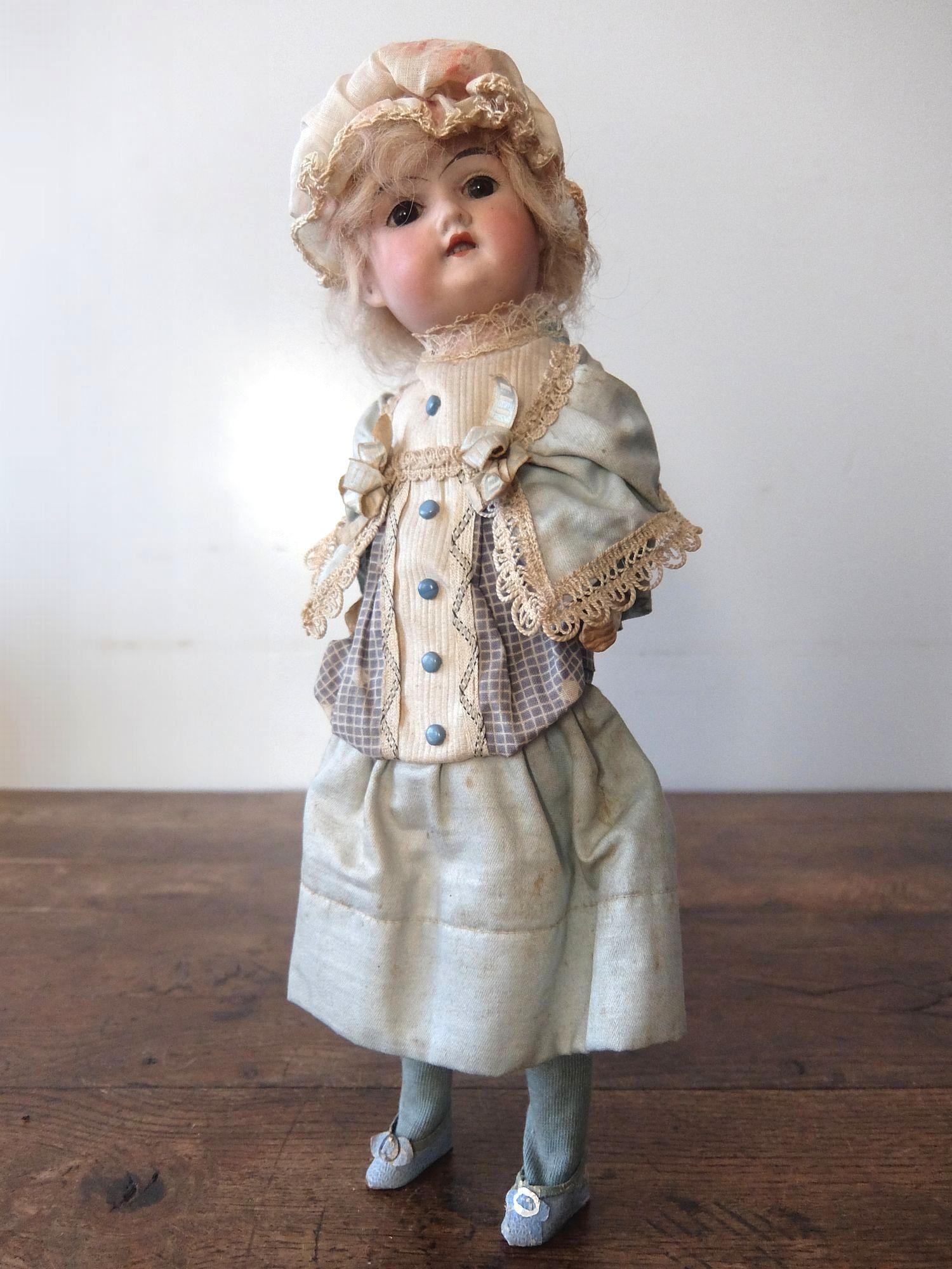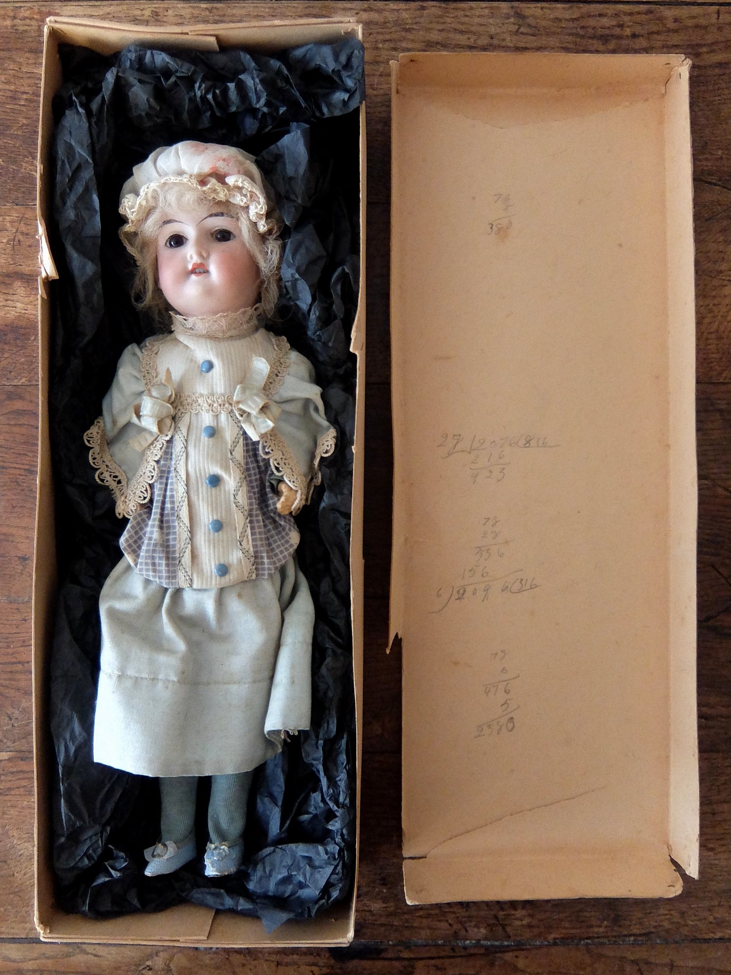 ブラウンの瞳が美しい可愛らしい衣装のビスクドール ※箱付 (【Armand Marseille】社製 Floradora 頭部:磁器製、肢体:パテ製)