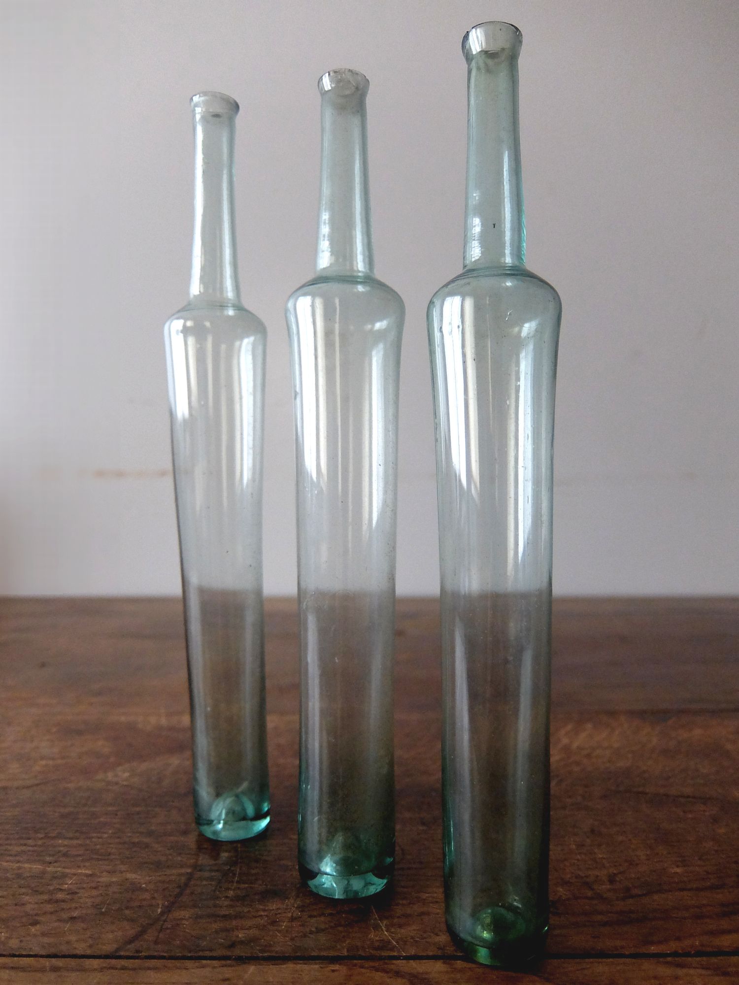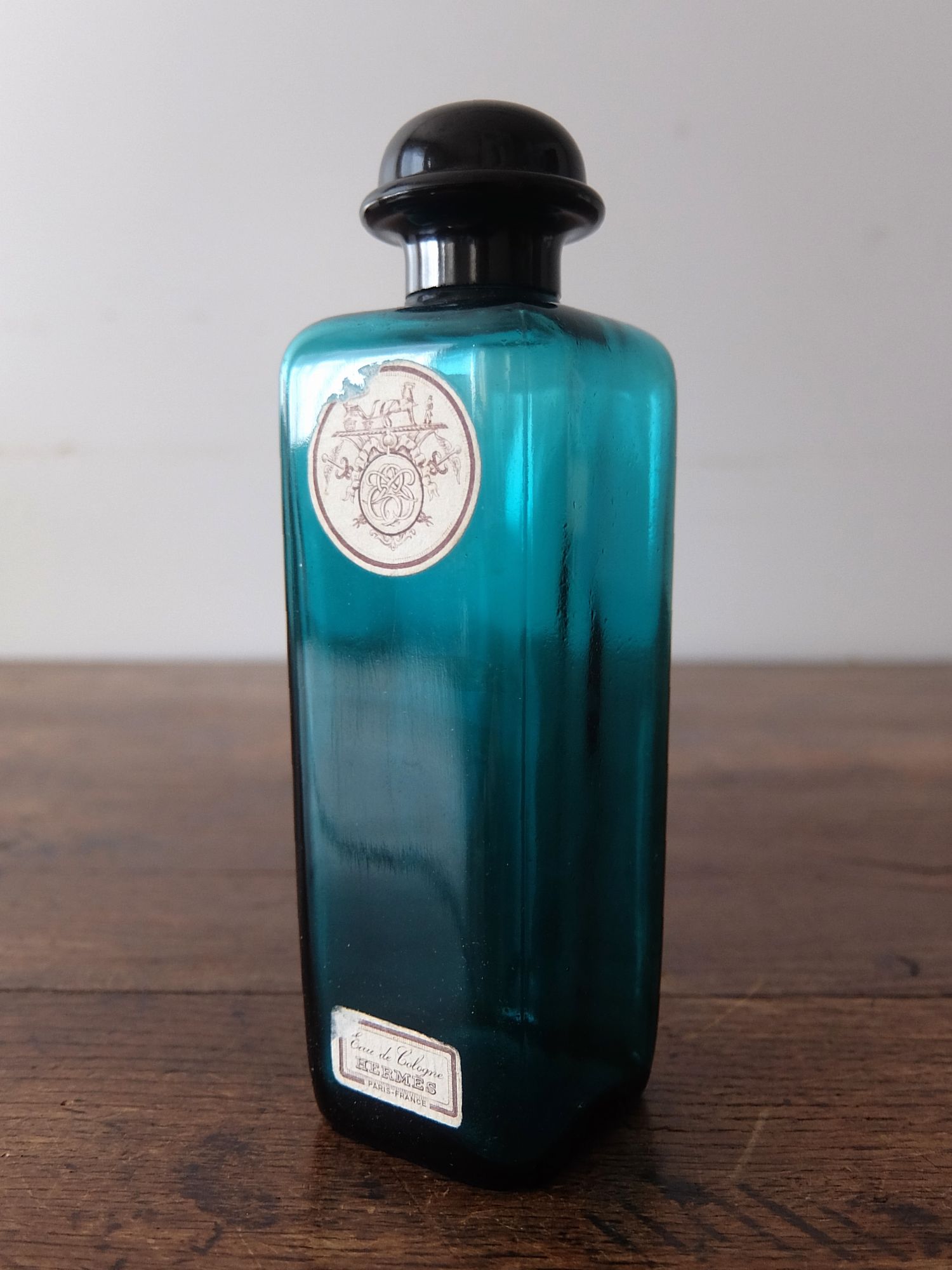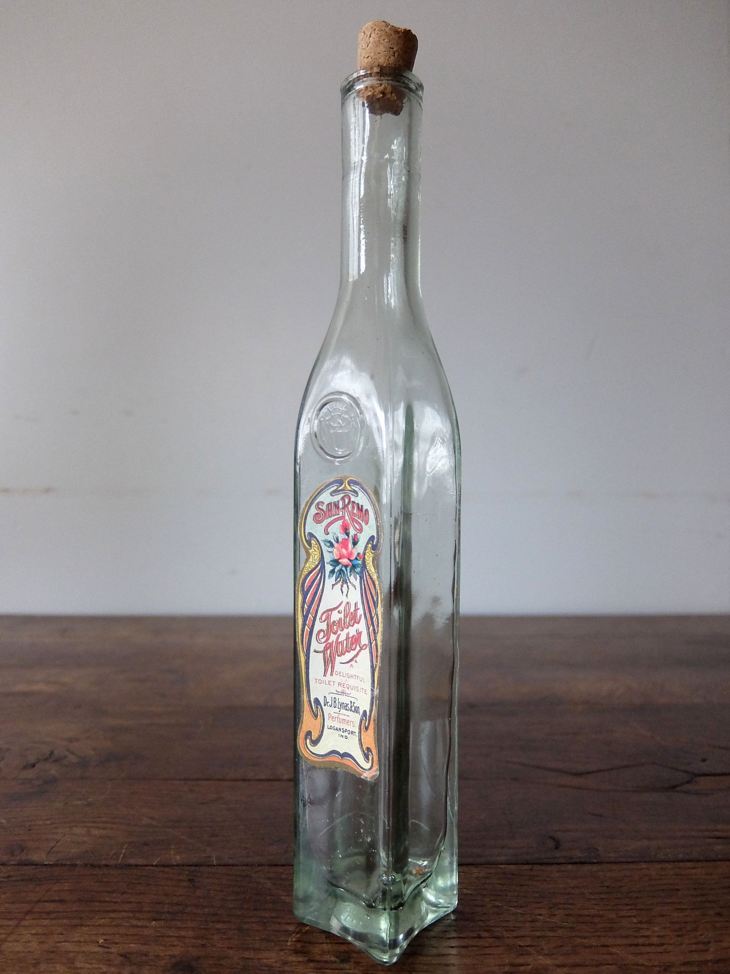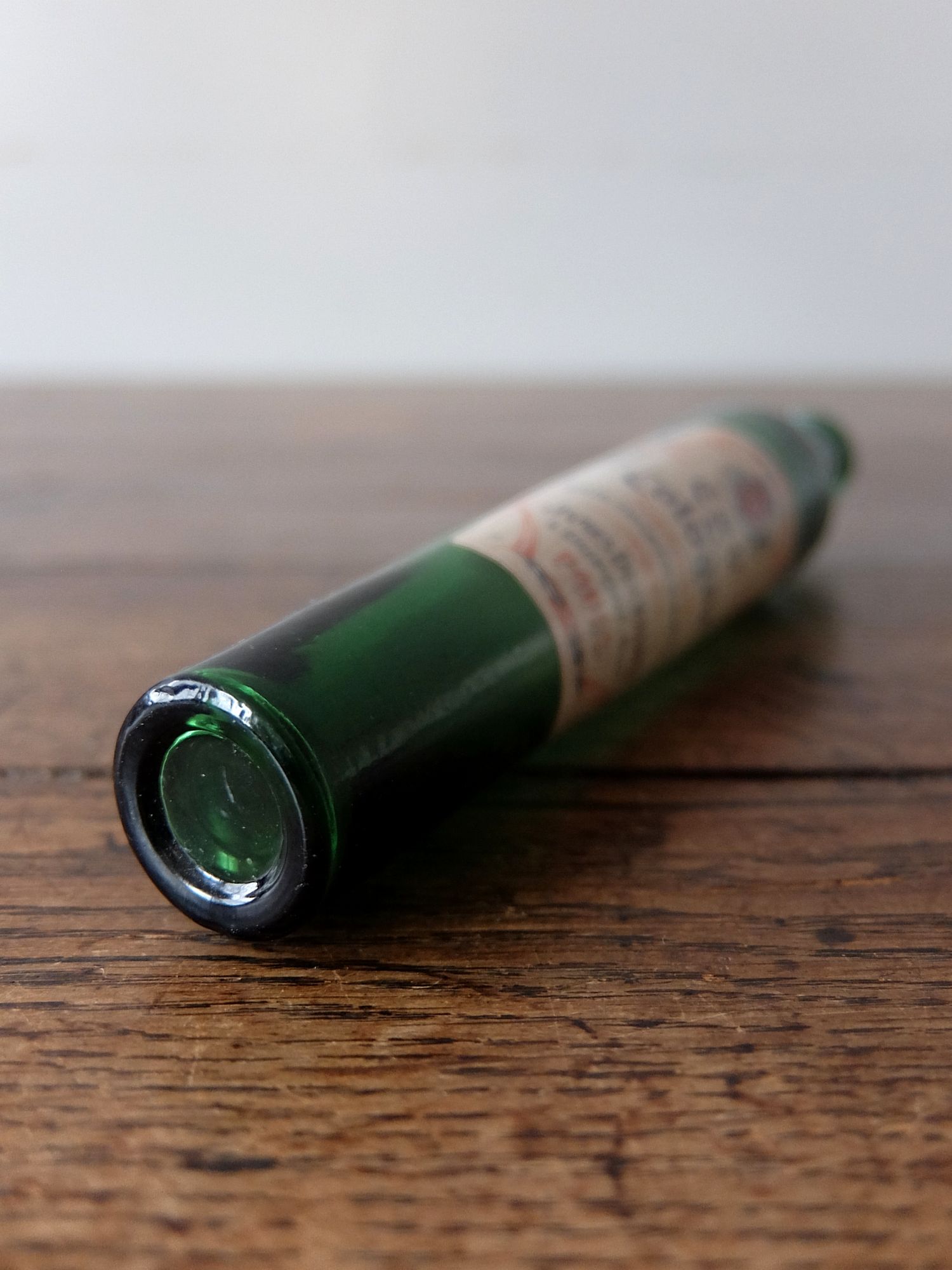 雰囲気のあるラベルが魅力的な細長い香水瓶