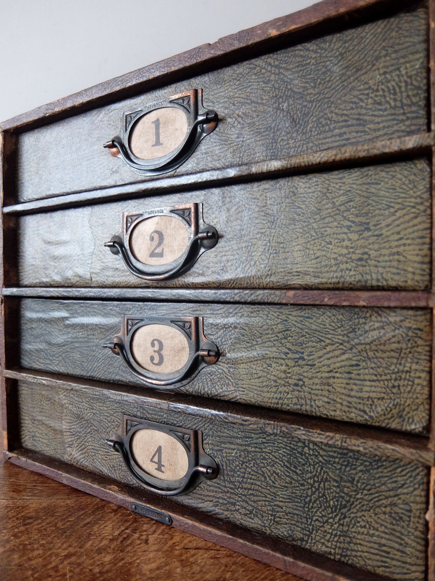 木製の土台に雰囲気のある紙を巻いて作られたファイルケース