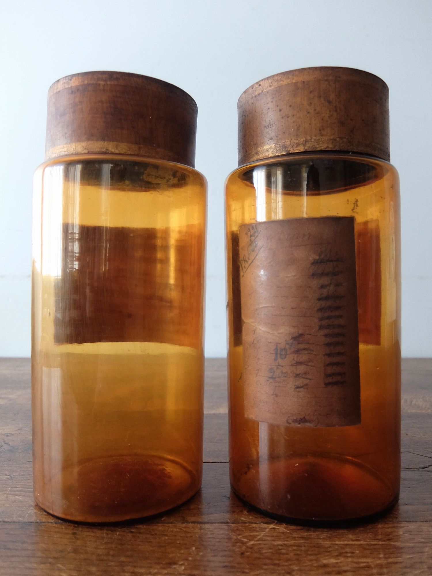 経年を感じさせる蓋とラベルがついた薬瓶