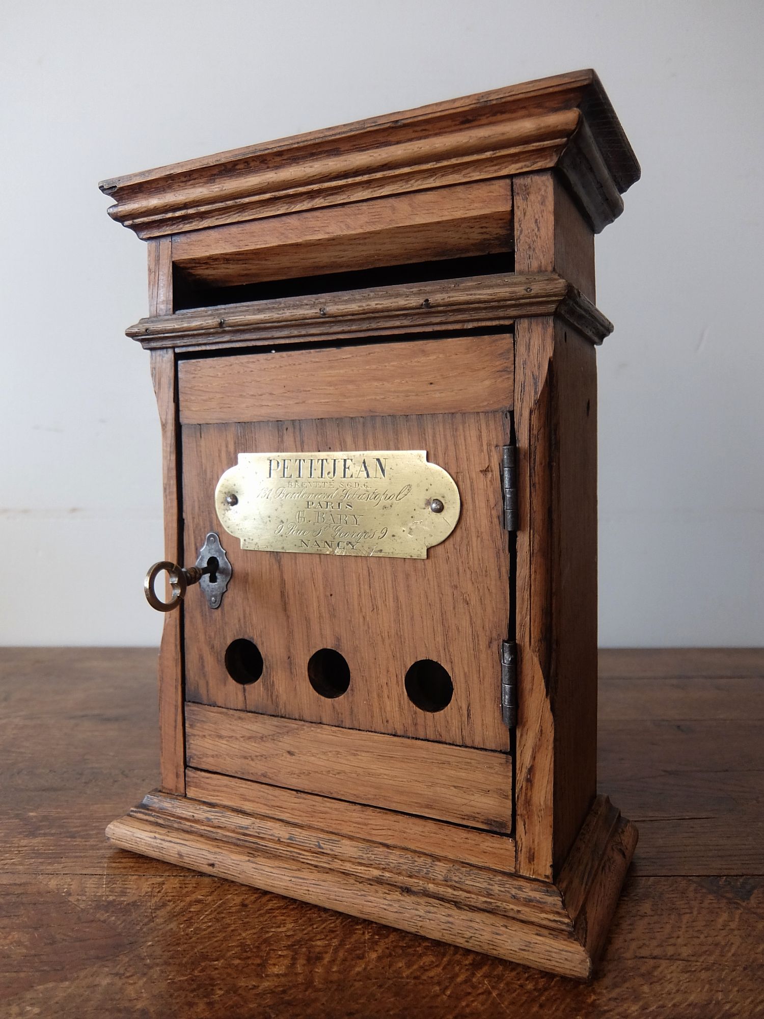 ピッチパイン材で作られた教会の壁付け募金箱(カギ付)