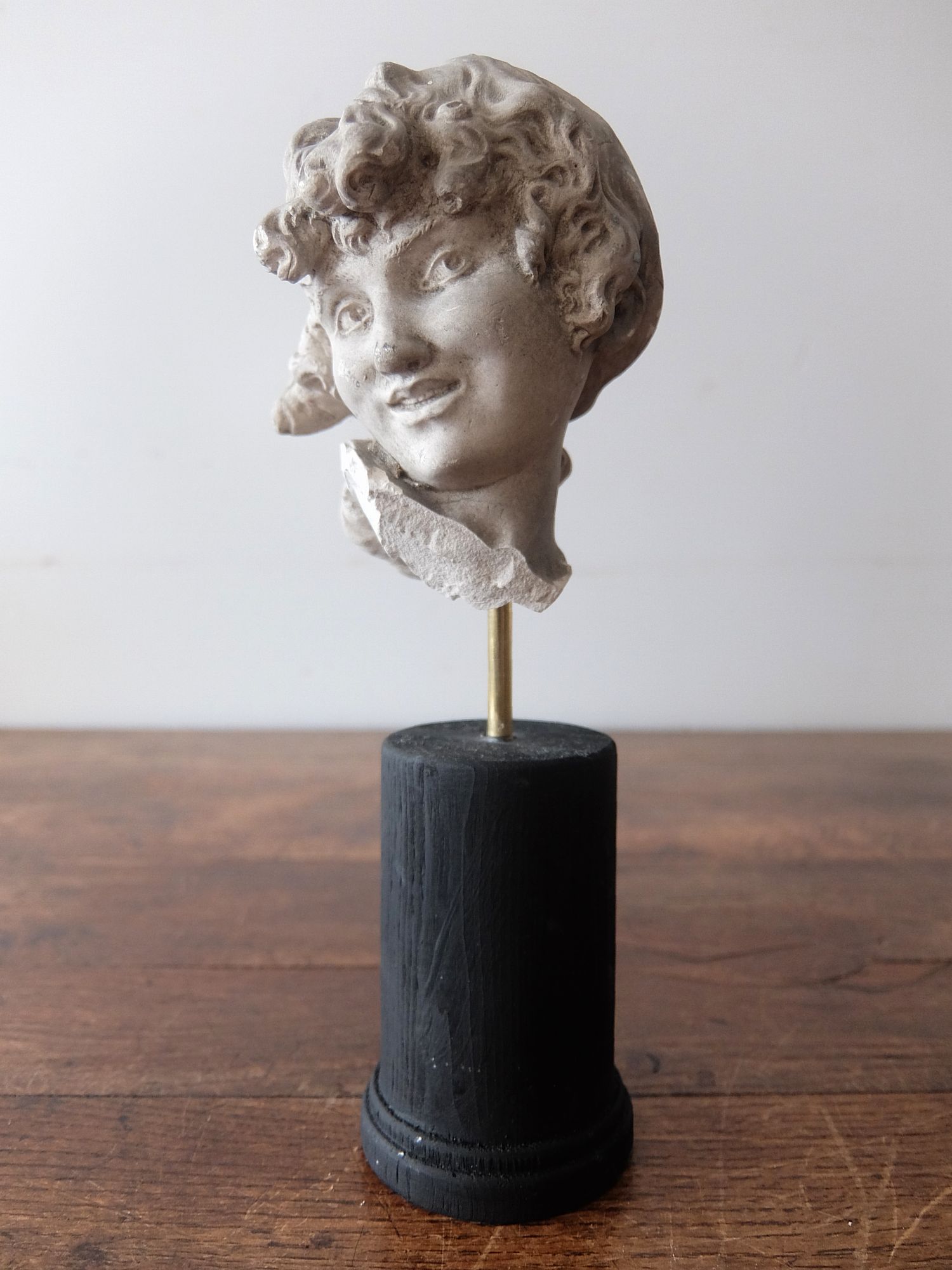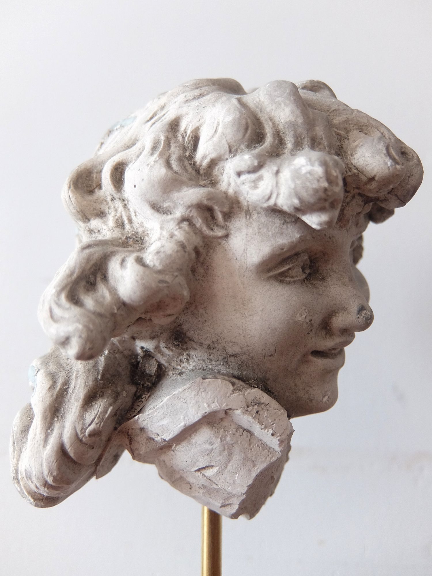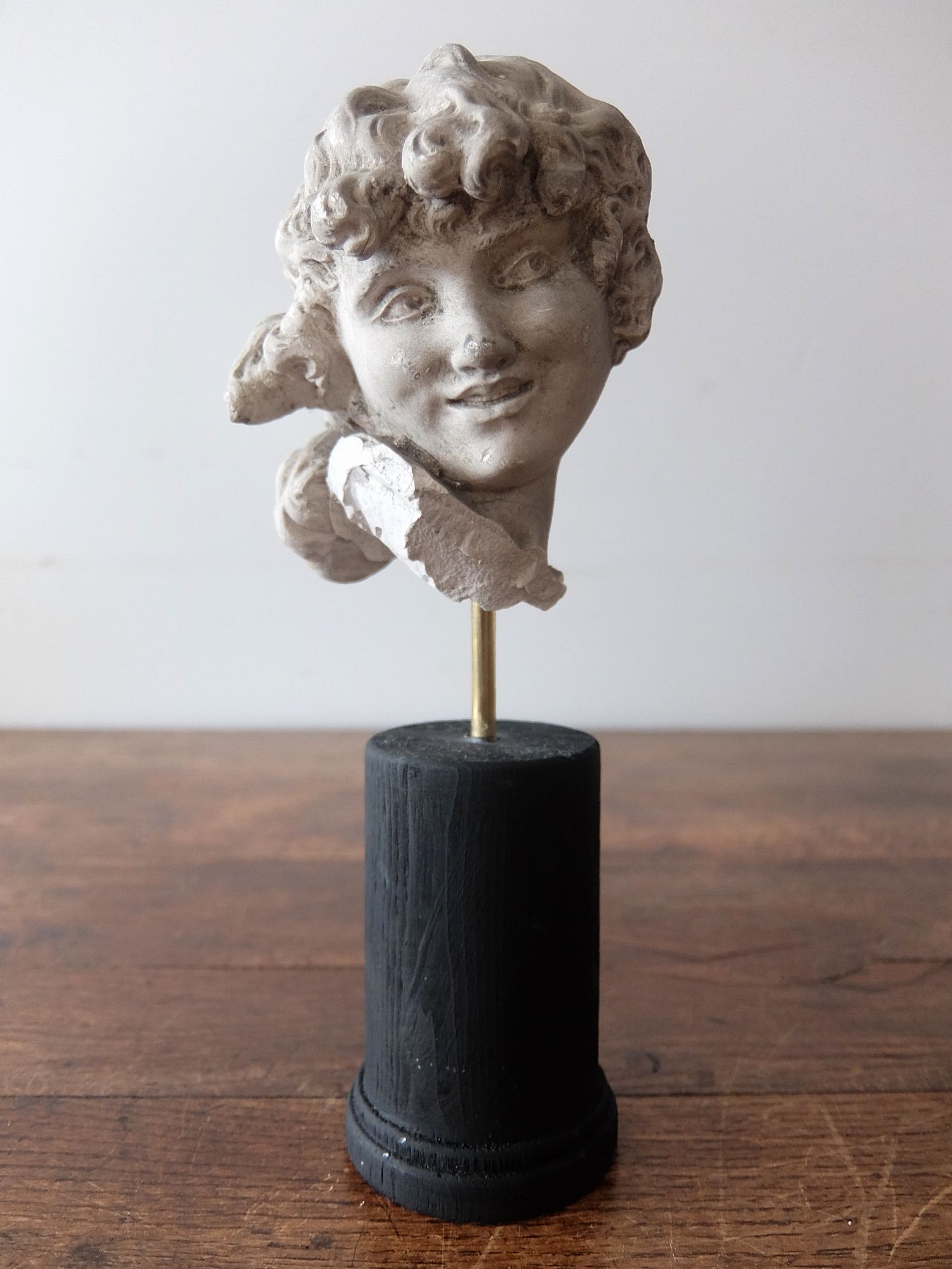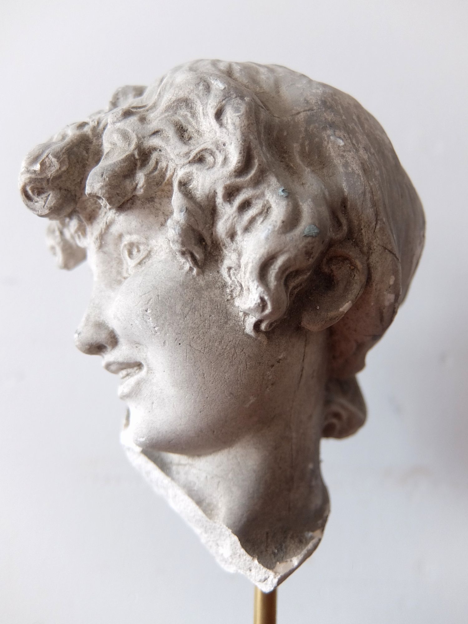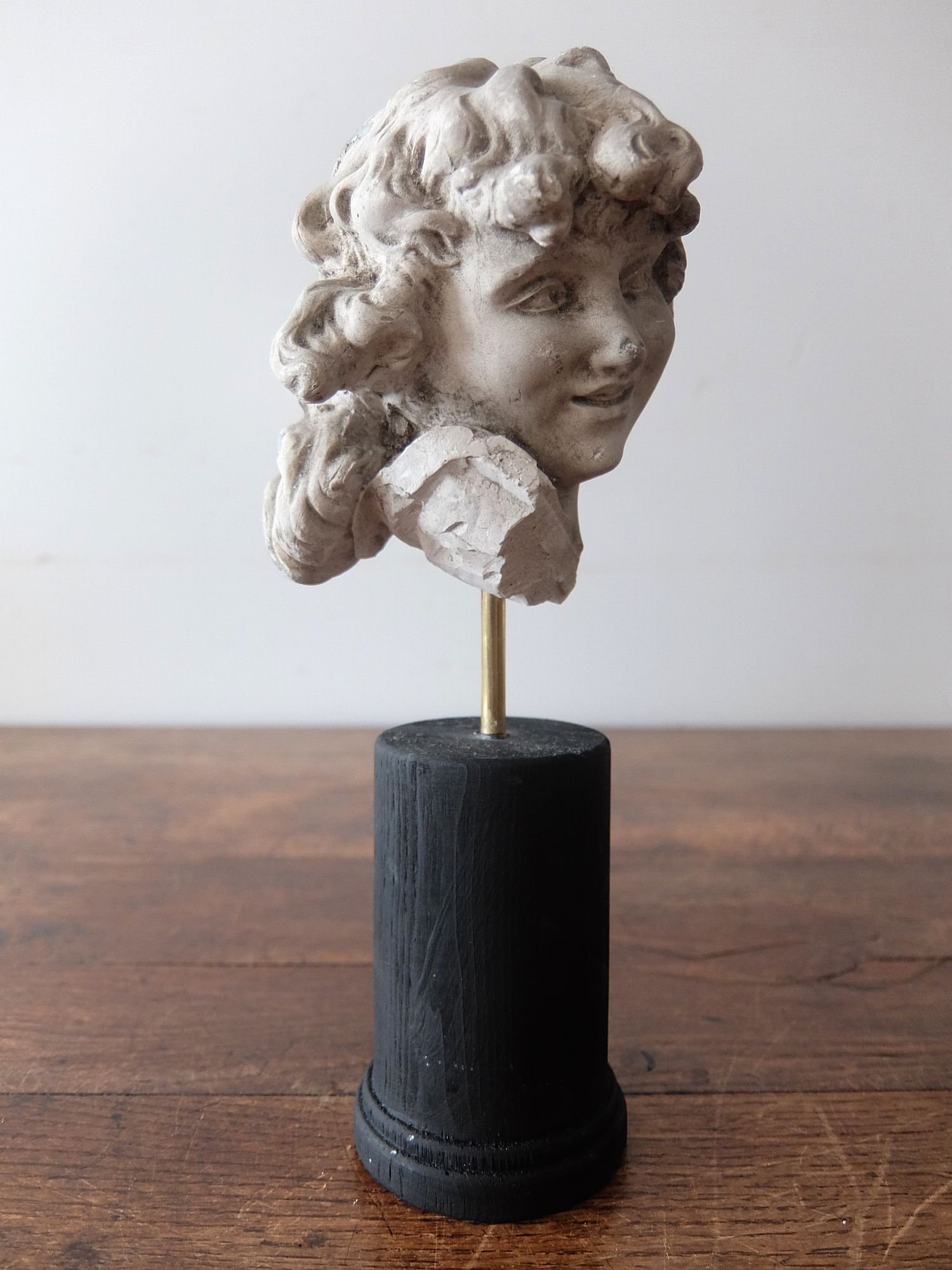 19世紀に石膏で製作された髪をなびかせた少女の頭部 (スタンド付)