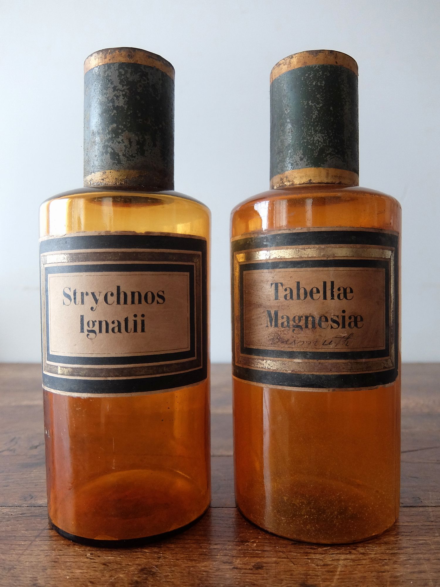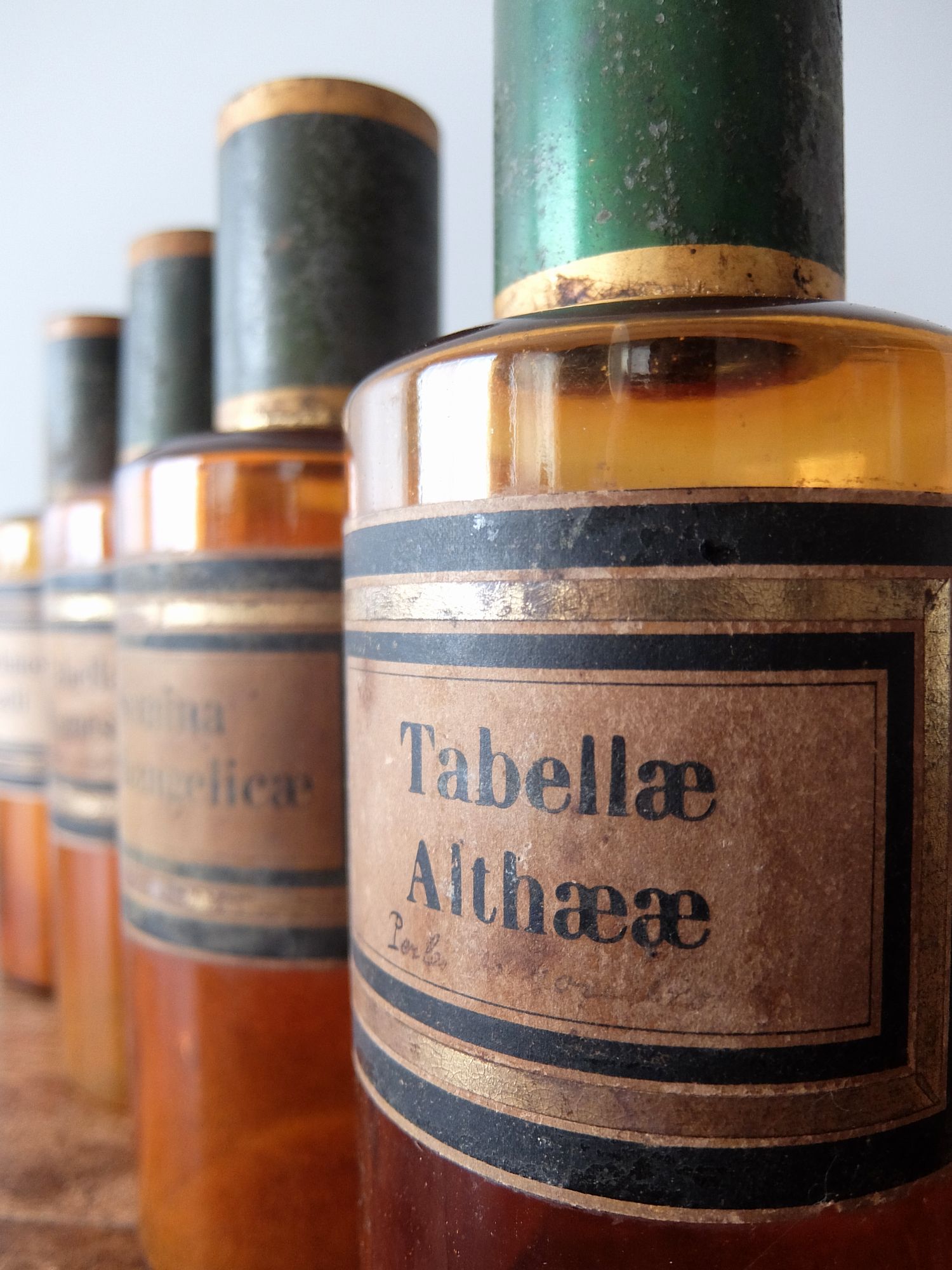 経年を感じさせる蓋とラベルがついた薬瓶