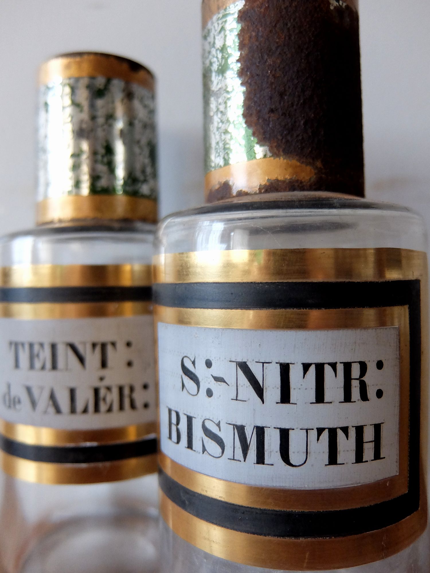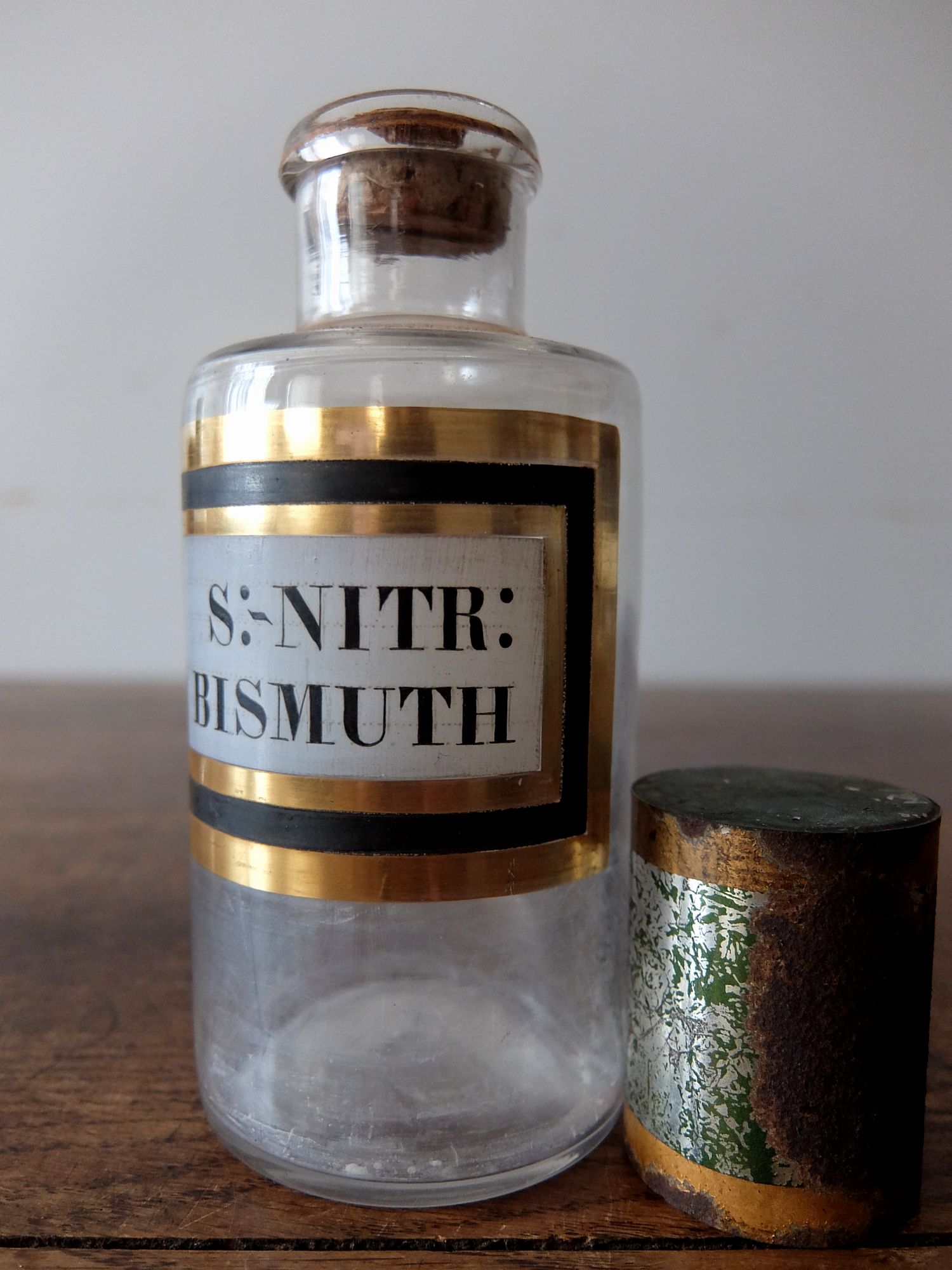 経年を感じさせる蓋とラベルがついた薬瓶