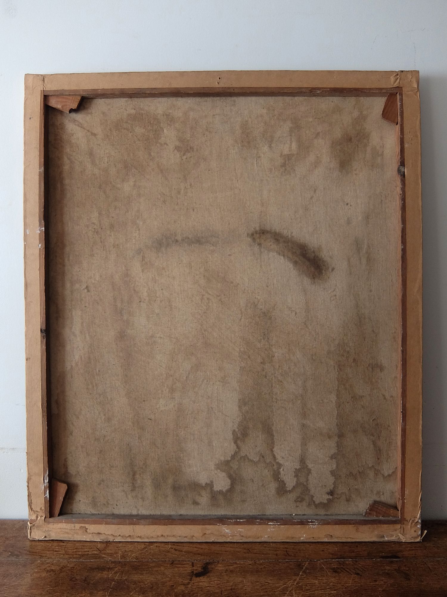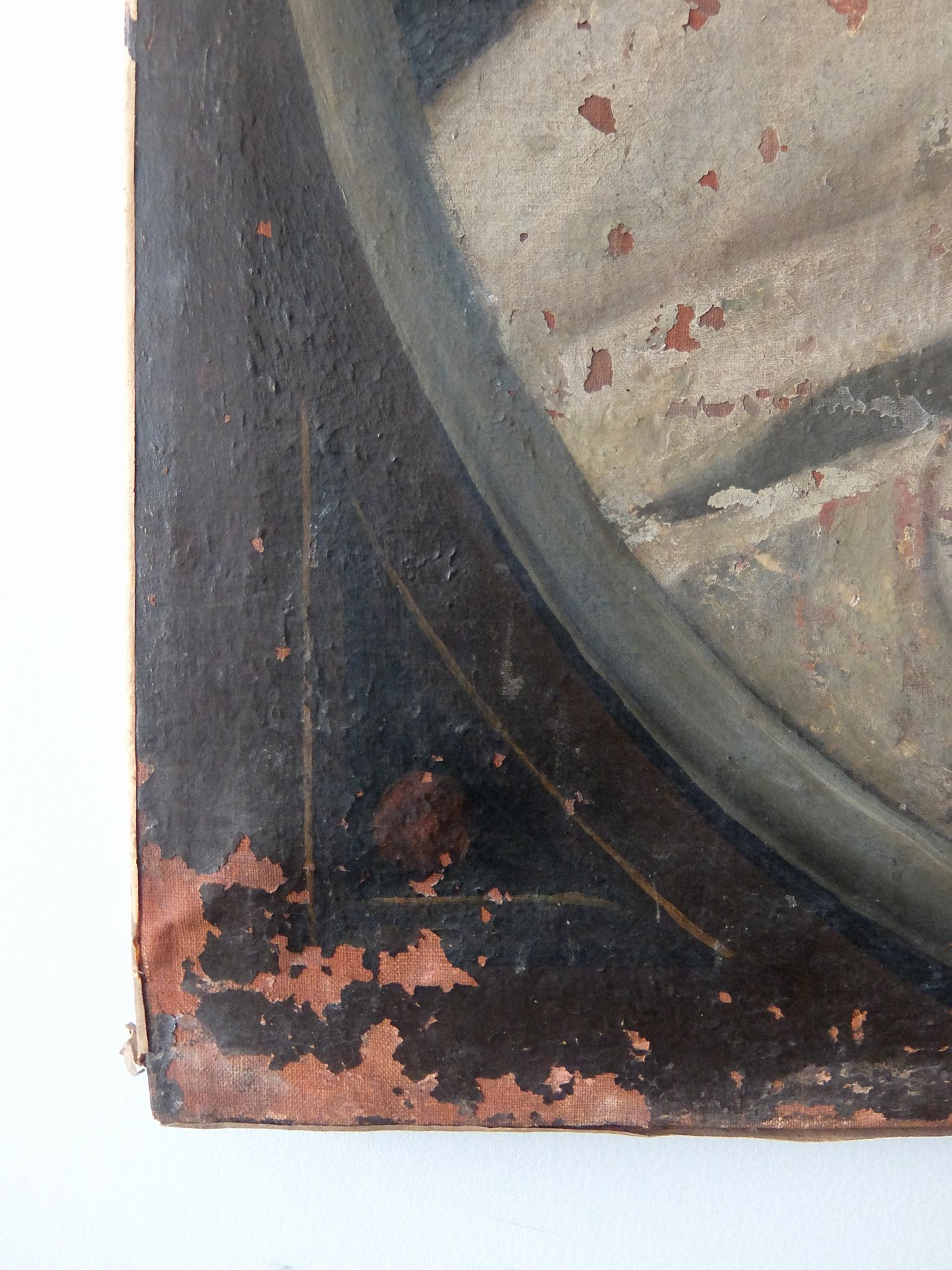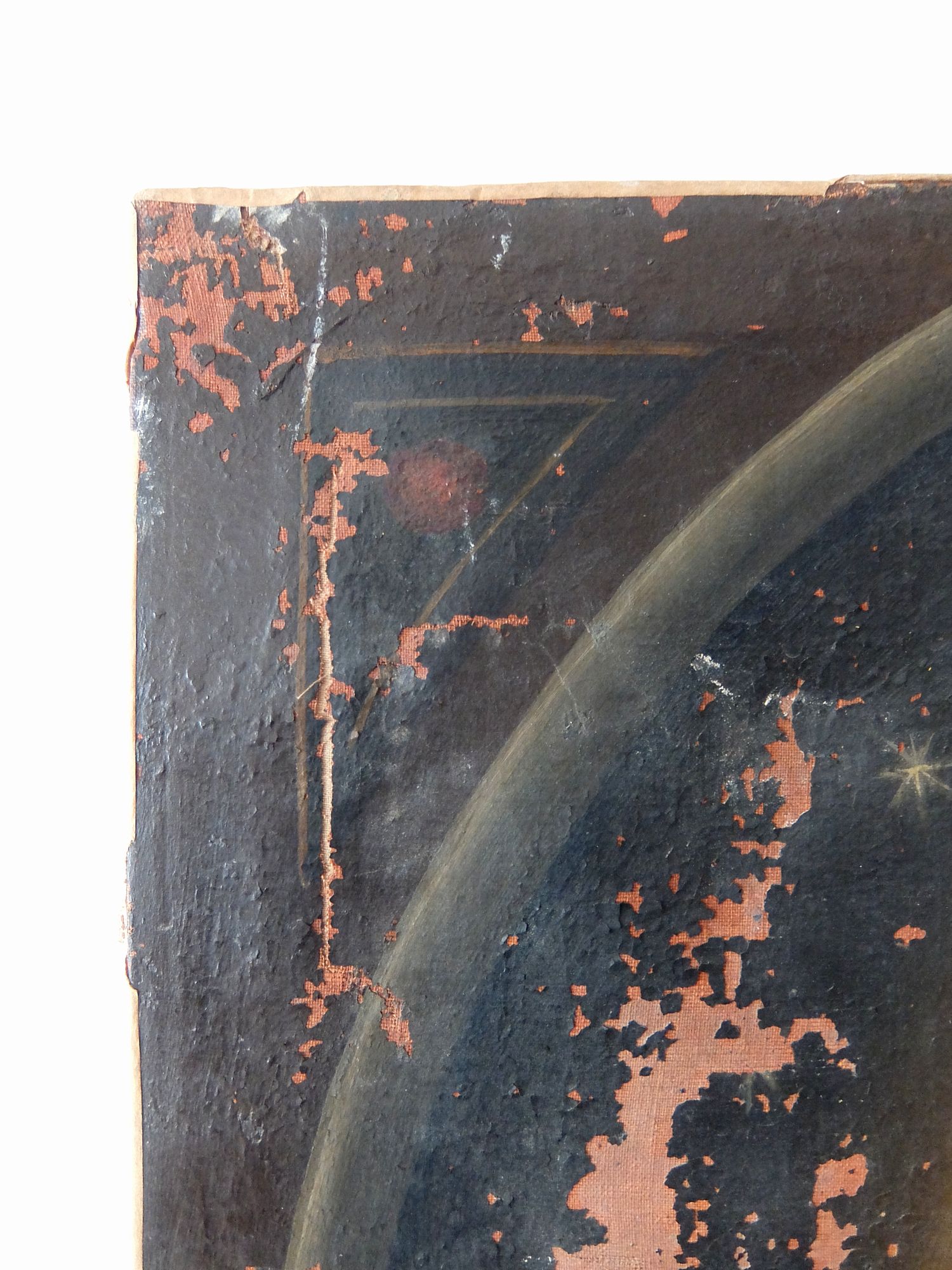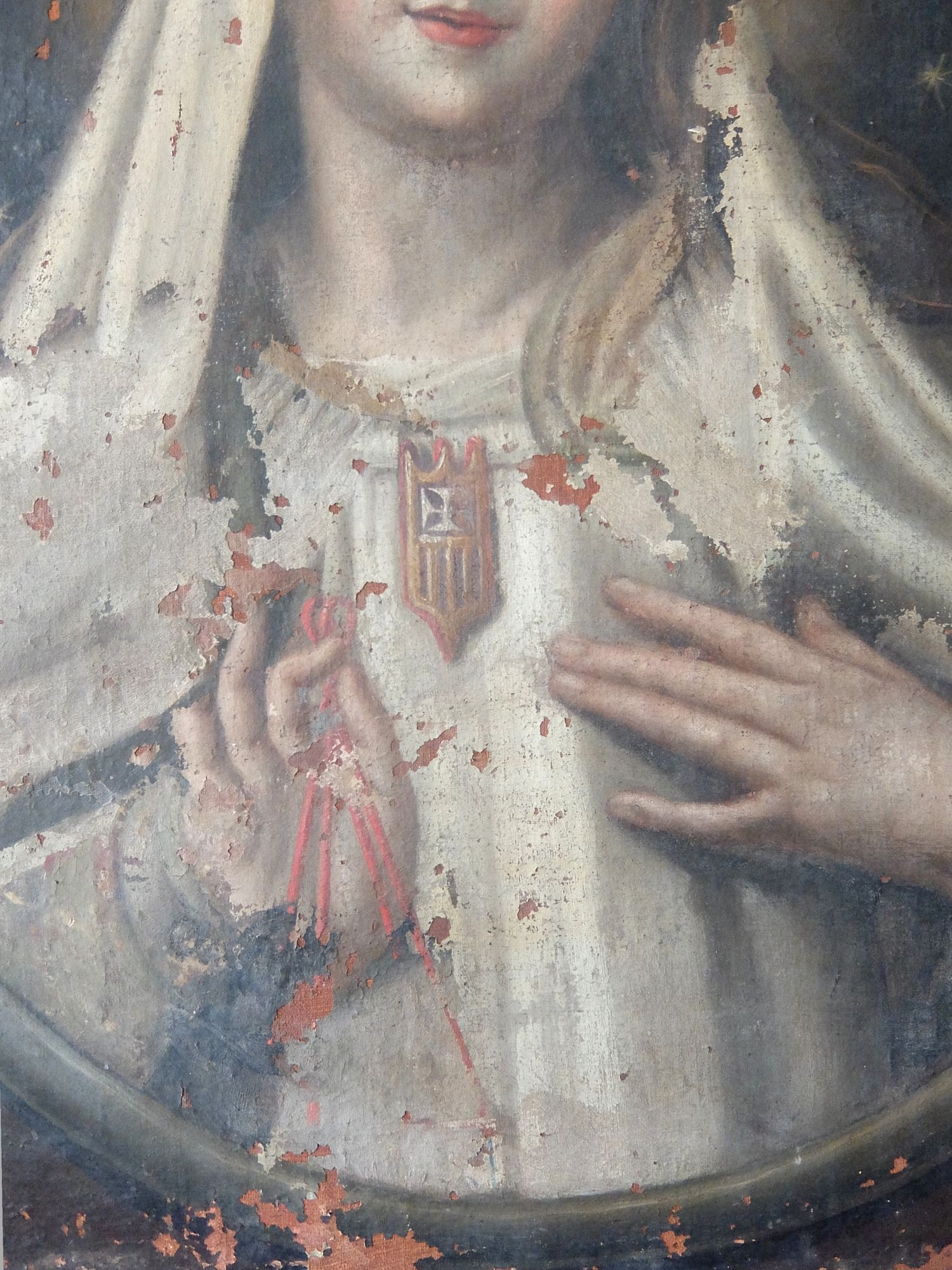 朽ちた雰囲気が美しい微笑みを浮かべた聖母マリアの油絵